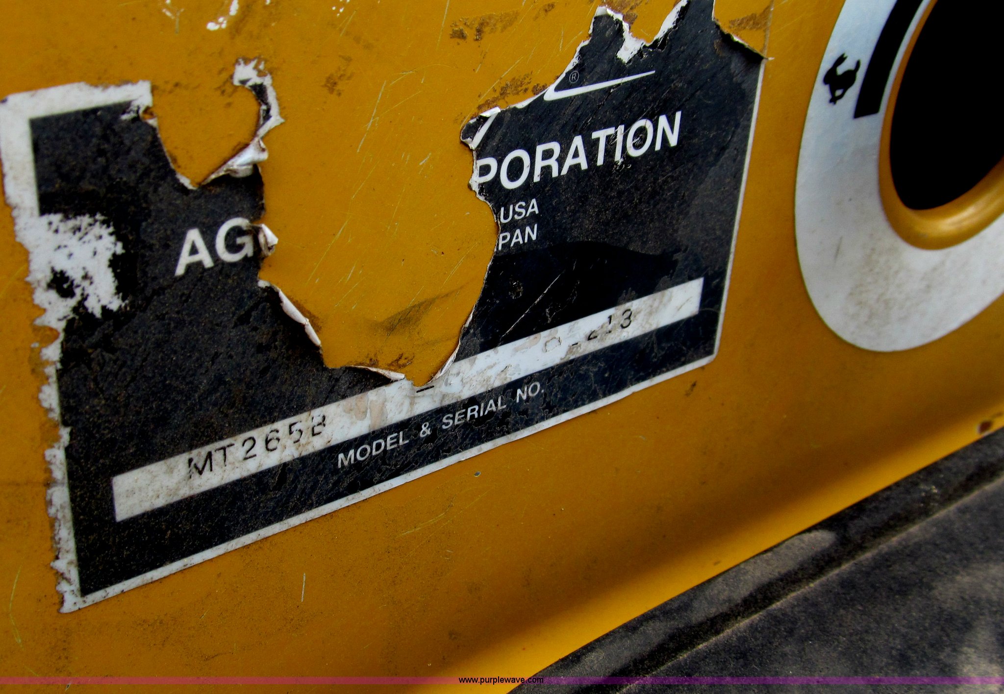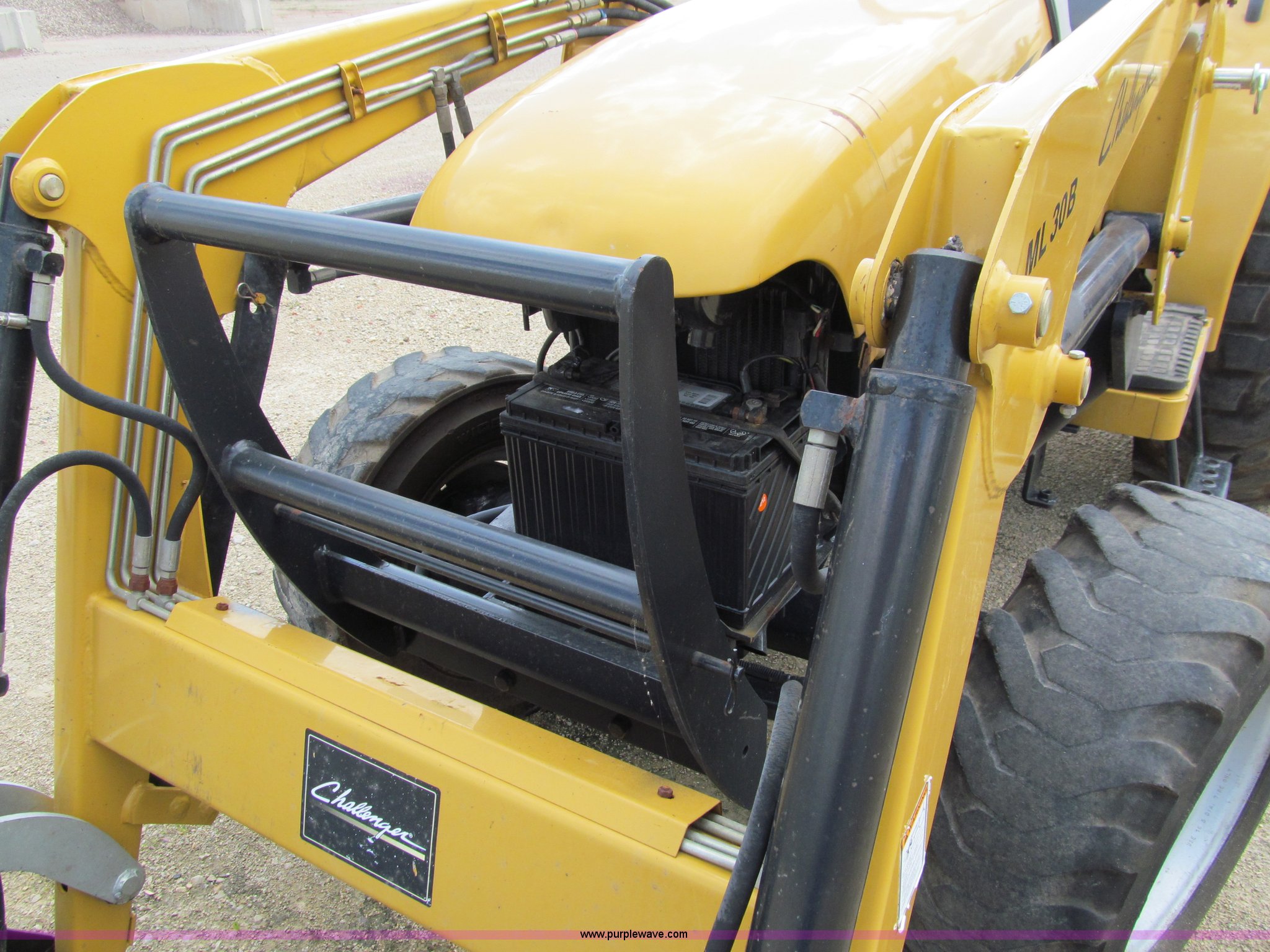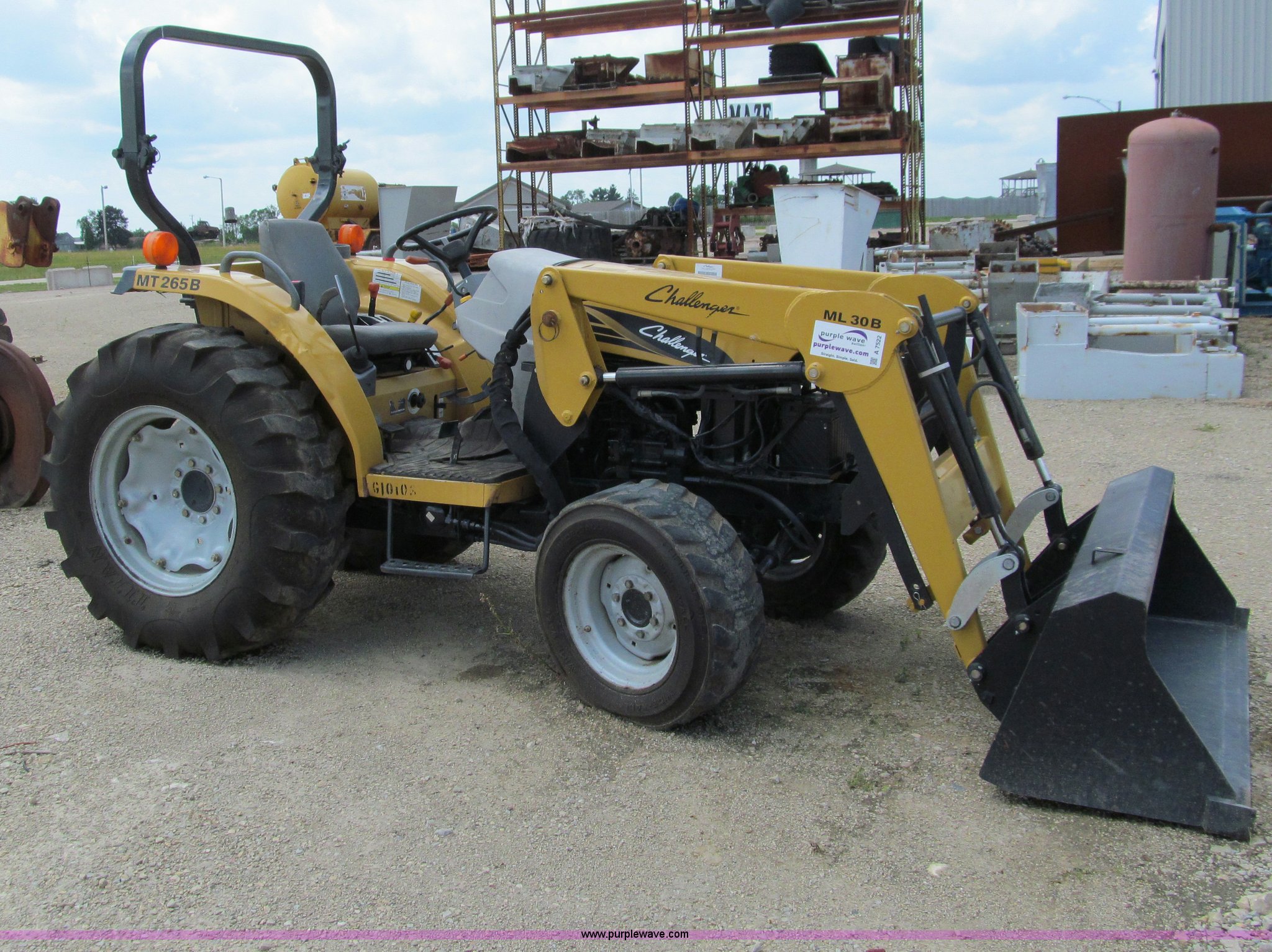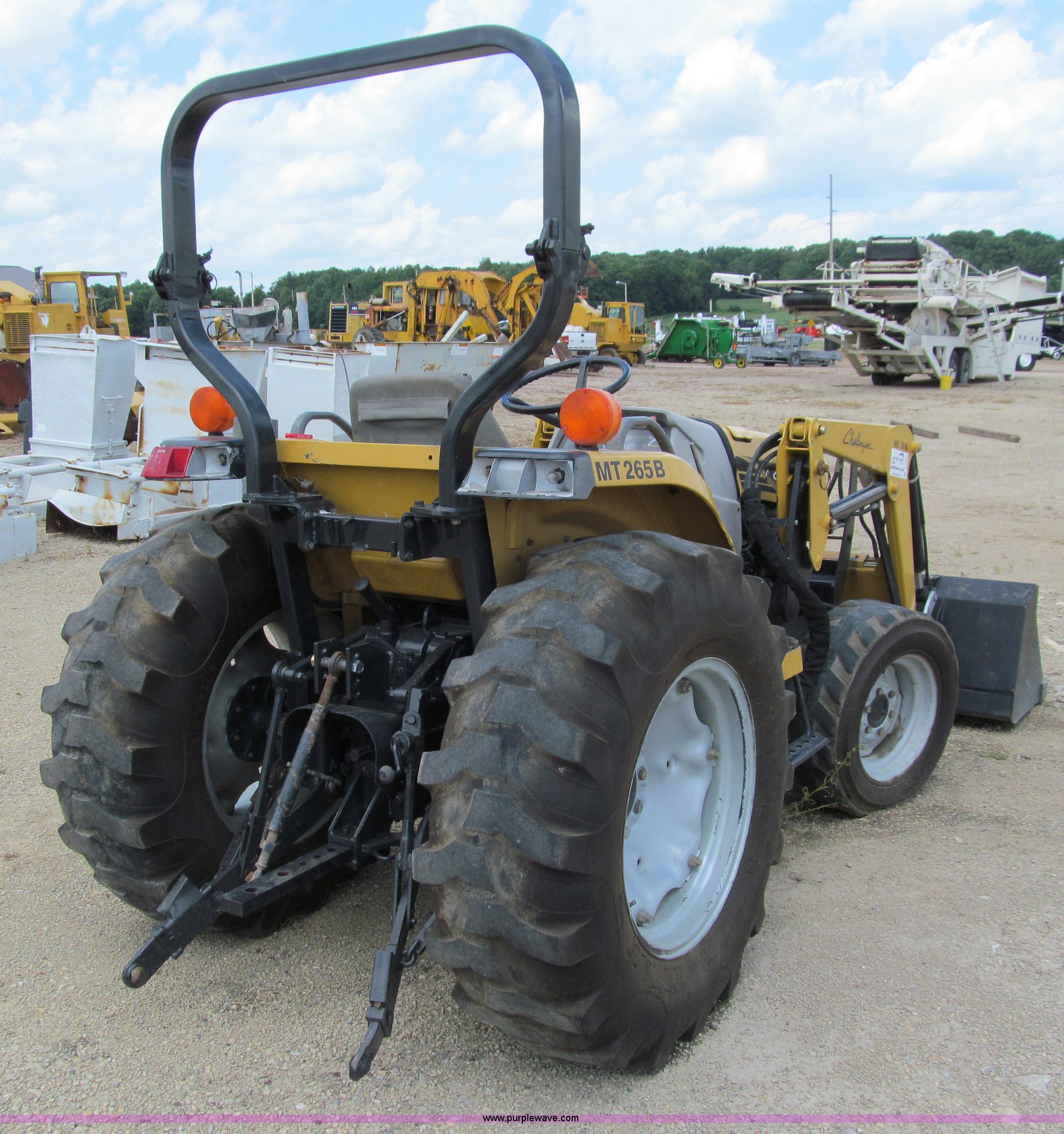 Purple Wave is selling a used Tractor in Wisconsin. This item is a AGCO Challenger MT265B utility tractor with the following: 3,780 hours on meter, Three cylinder diesel engine, Hydrostatic transmission, Non-functional, ROPS, Three point hitch, 540 PTO, ML30B loader, Serial VP725516037, 67.5" bucket, Wobble stick loader control, 10-16.5 front tires, 14.9-24 rear tires, Front grill missing, Serial 265B000297
