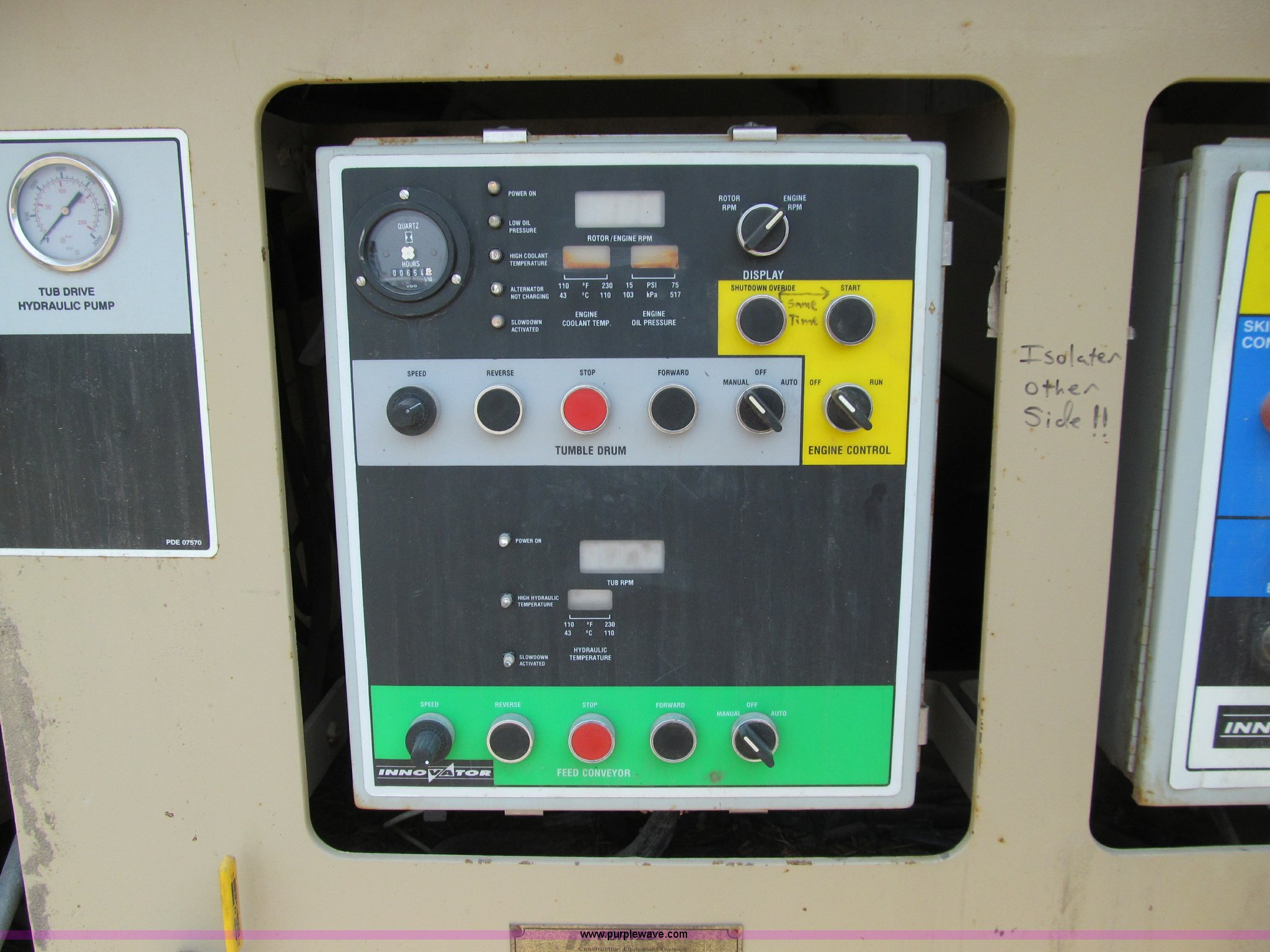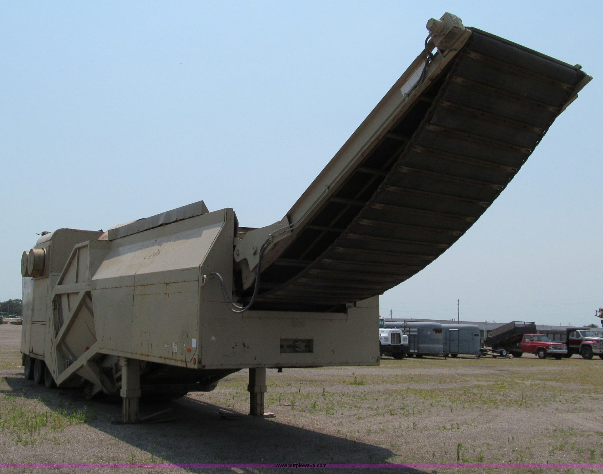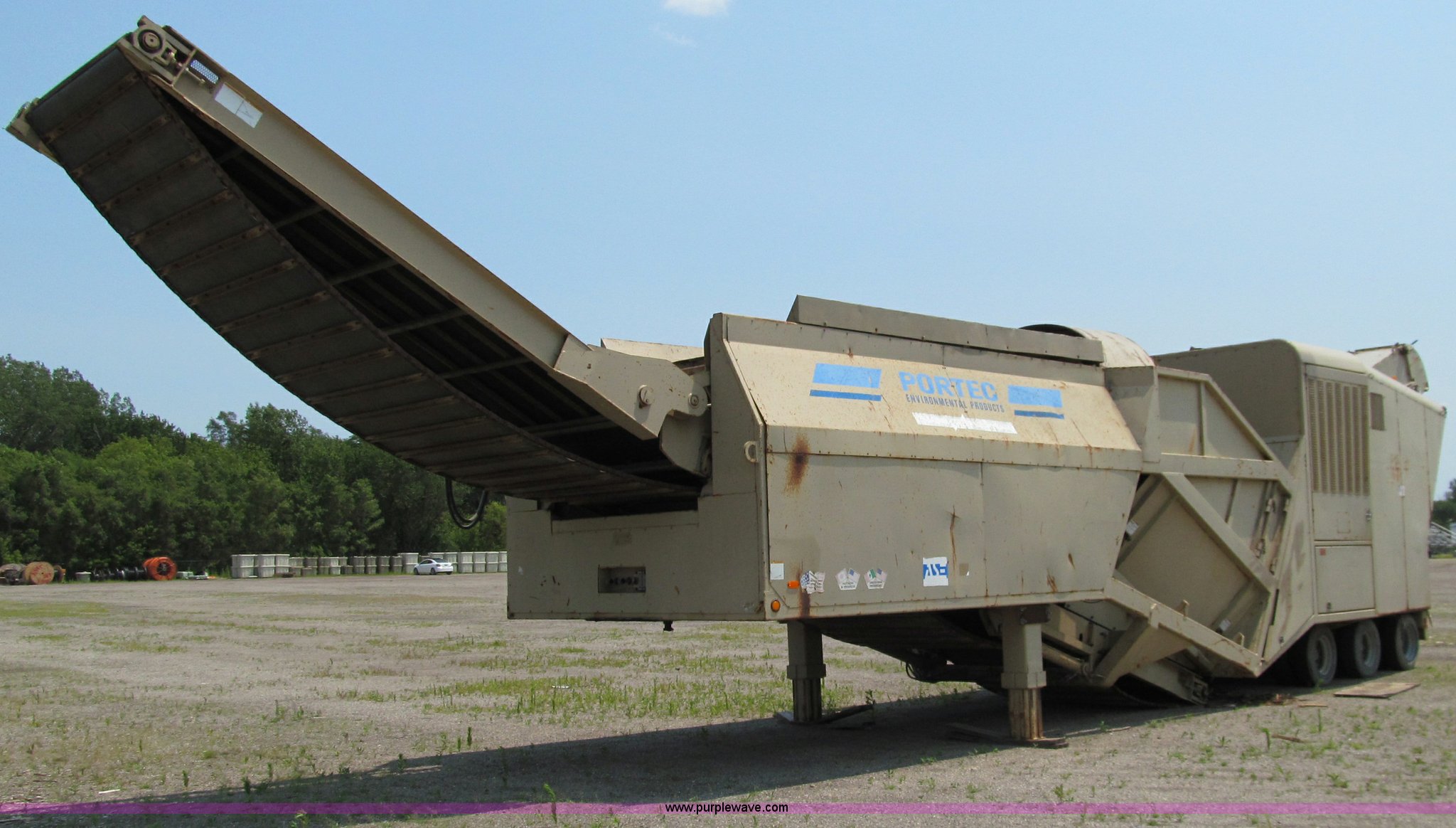 Purple Wave is selling a used Trommel Screen, Wood in Iowa. This item is a Portec 1042 portable tumble grinder with the following: 654 hours on meter, Caterpillar 3408 diesel engine, Hydraulic front and rear landing gear, Water injector inlet, 53" inlet conveyor, 66" and 24" discharge conveyors, Triple axle carrier, 10.5'W x 13'H, Air brakes, Spring suspension, 215/75R17.5 tires, GVWR 76,000 lbs, Serial 95041080