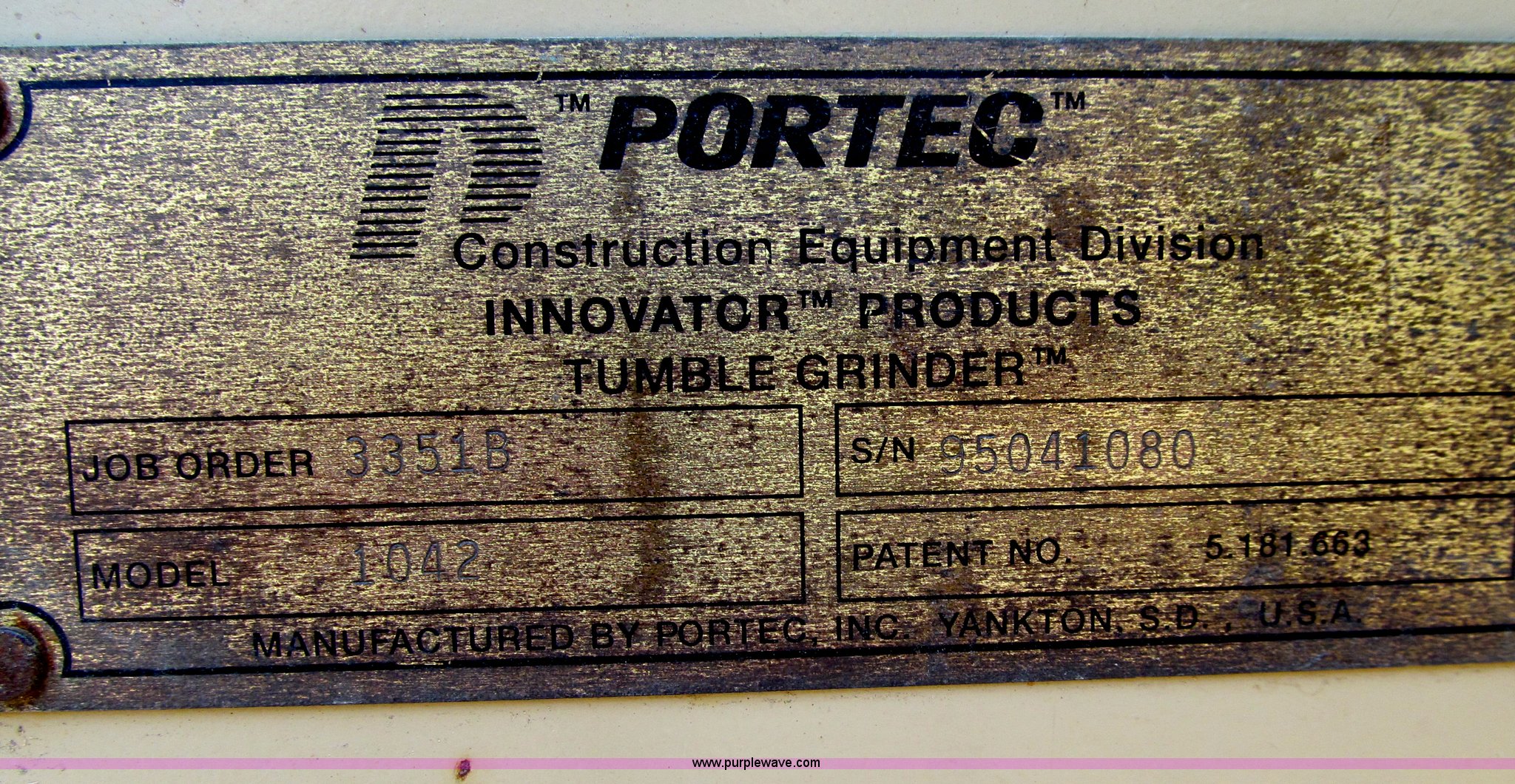 Portec 1042 portable tumble grinder has sold in Waterloo, Iowa for $35750. Item A8361 sold on July 26th, 2012.