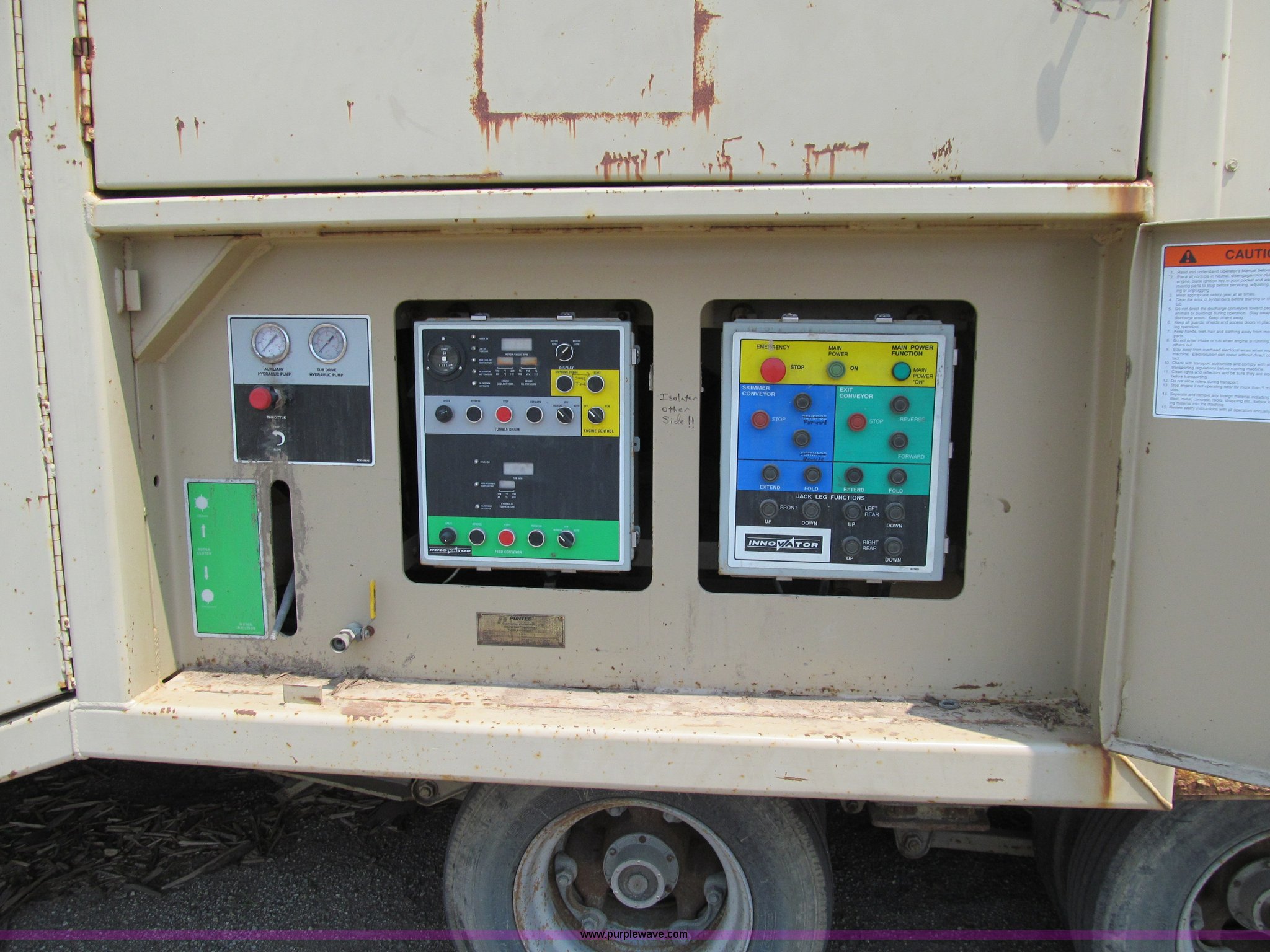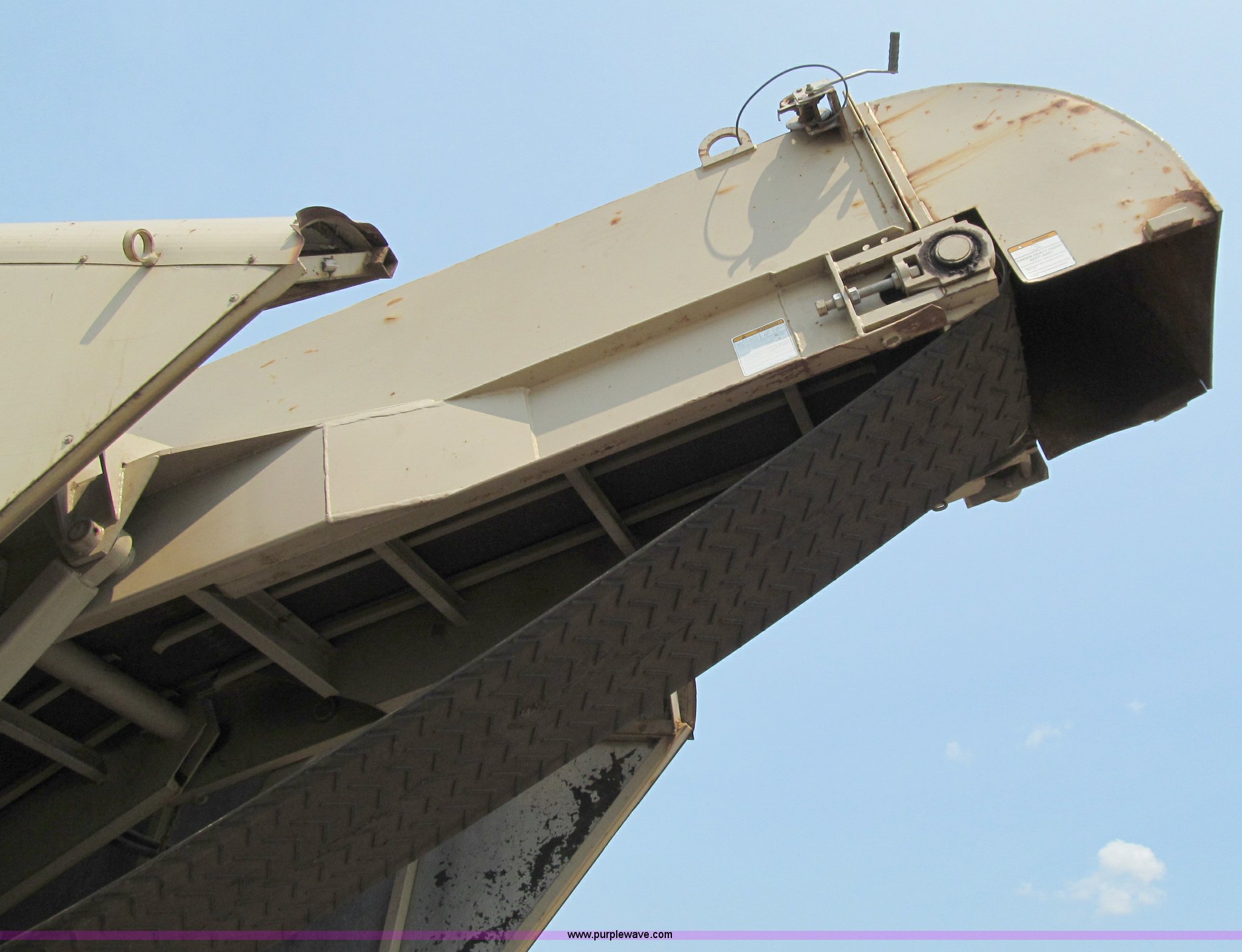 Portec 1042 portable tumble grinder. 654 hours on meter, Caterpillar 3408 diesel engine, Hydraulic front and rear landing gear, Water injector inlet , 53" inlet conveyor , 66" and 24" discharge conveyors, Triple axle carrier 10.5'W x 13'H, Air brakes, Spring suspension, 215/75R17.5 tires, GVWR 76,000 lbs, Serial 95041080. Shipping quotes available. 2862 Wagner Rd. Waterloo, IA 50703