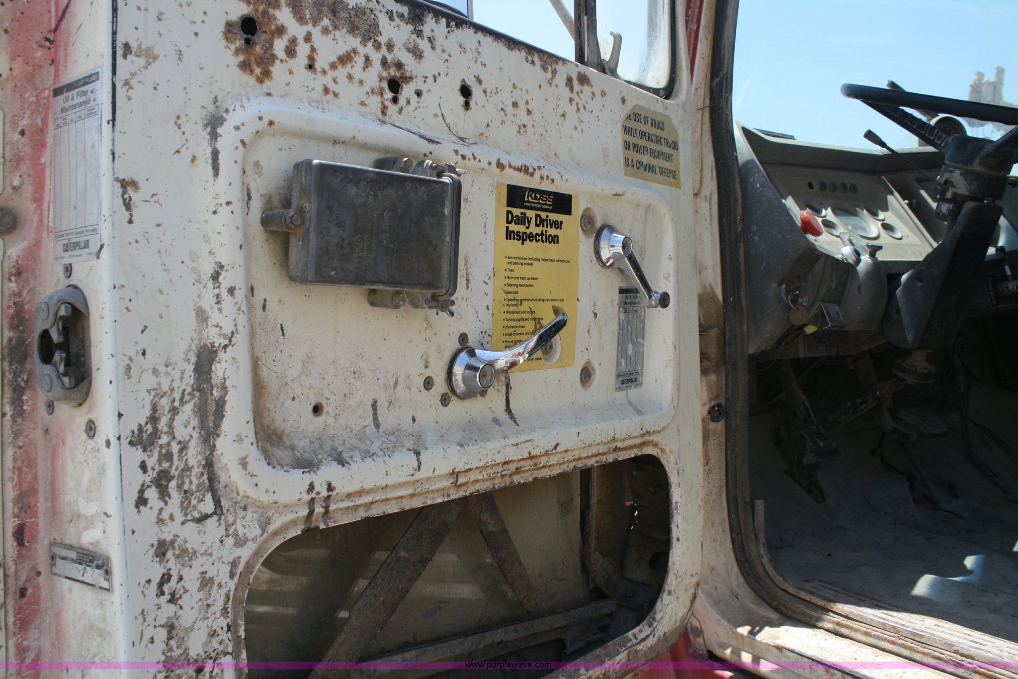 1974 Ford F700 truck cab and chassis. 21,713 miles on odometer, V-8 gas engine, Five speed manual transmission, Heater, Manual windows and locks, Vinyl bench seat, Chelsea PTO, Spring suspension, Front tow hooks, 9.00R20 tires, GVWR 23,000 lbs, Interior/exterior cosmetic damage, Dents and scratches, No taillights, Paint peeling, Fuel leak around fuel filter, Driver side window inoperable, Unit# 497. N70EVT67930. Shipping quotes available. Koss Construction Company. 5831 SW Topeka Blvd. Topeka, KS 66609