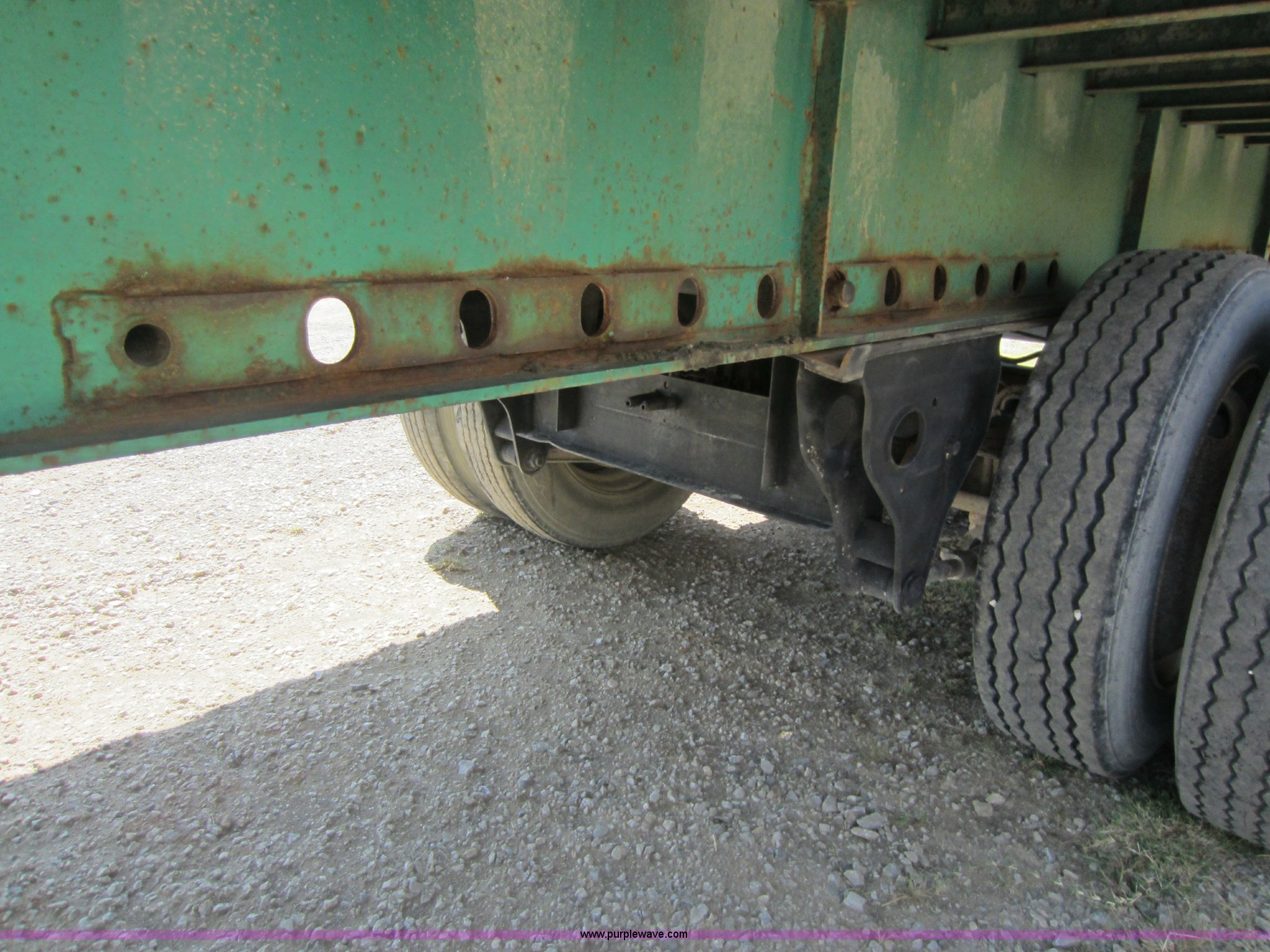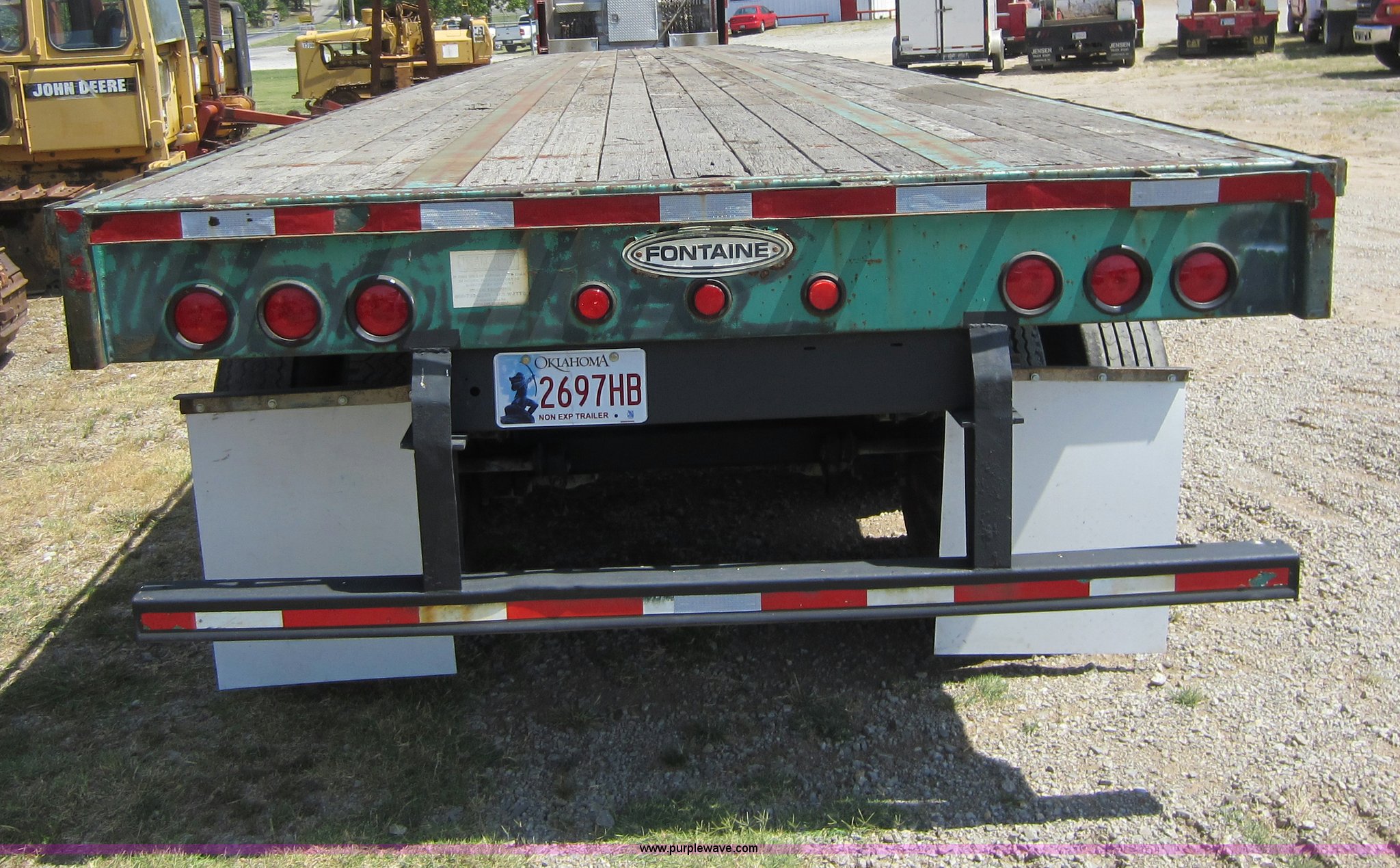 Purple Wave is selling a used Flat or Drop Deck Trailer in Oklahoma. This item is a 2001 Fontaine 48' flatbed trailer with the following: 102"W, Wood floor, (10) strap winches, Spring suspension, Air brakes, Holland landing gear, Sliding tandems, Dual 20,000 lb axles, 11R22.5 tires, GVWR 75,310 lbs, Model FTW-5-8048SLAUK