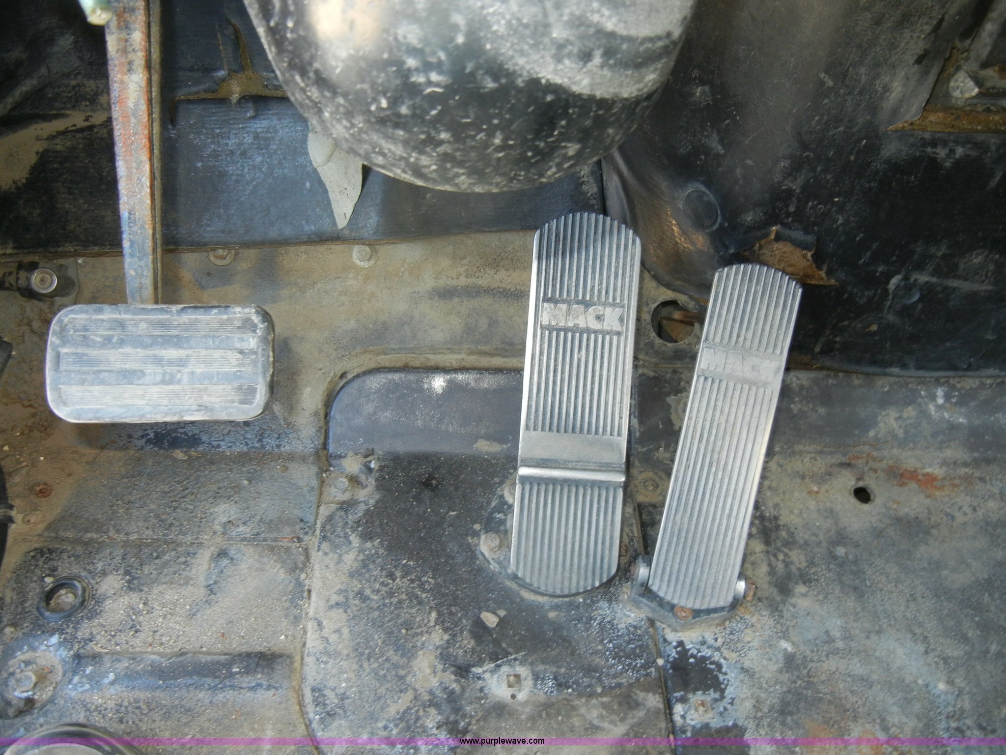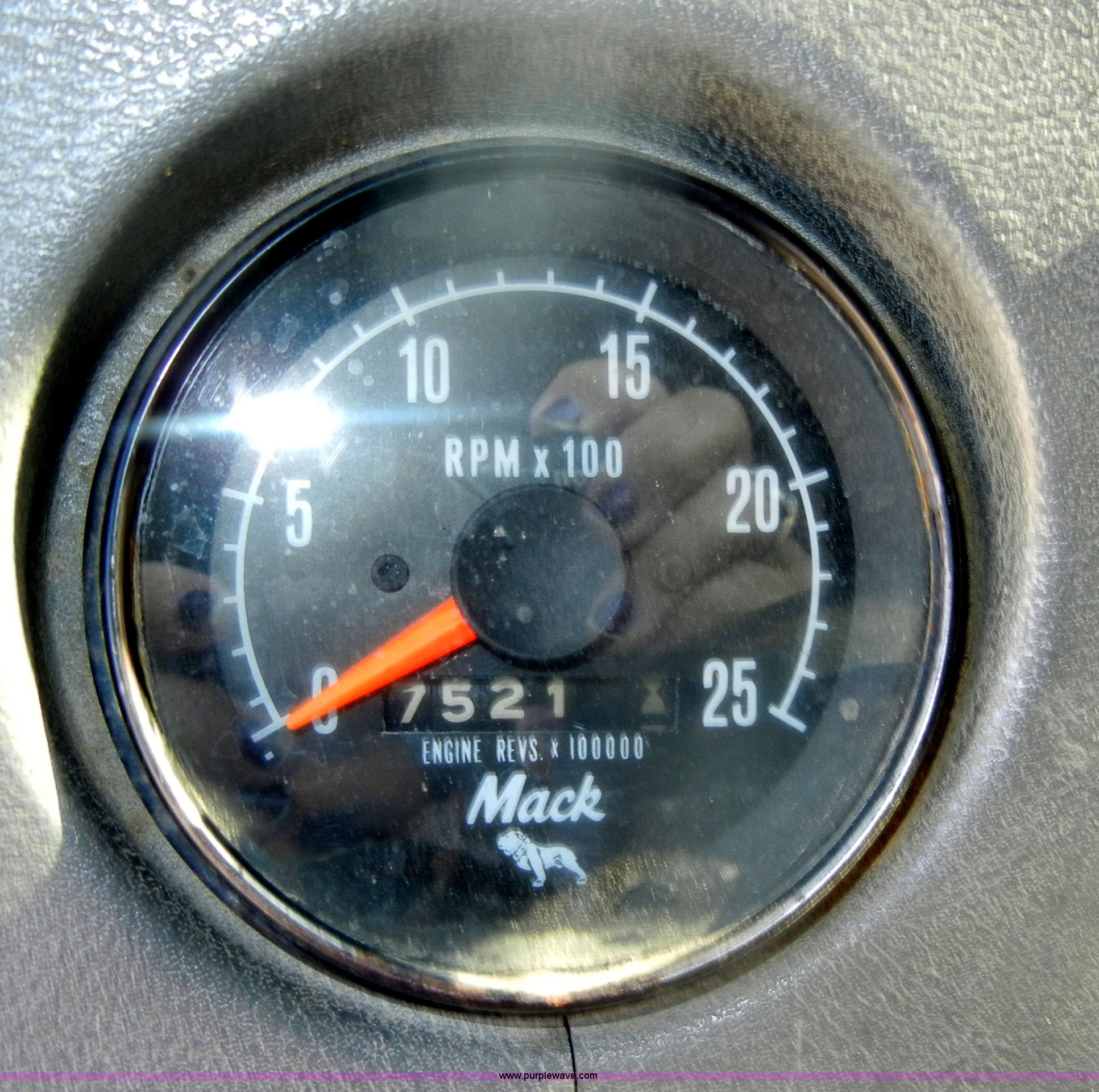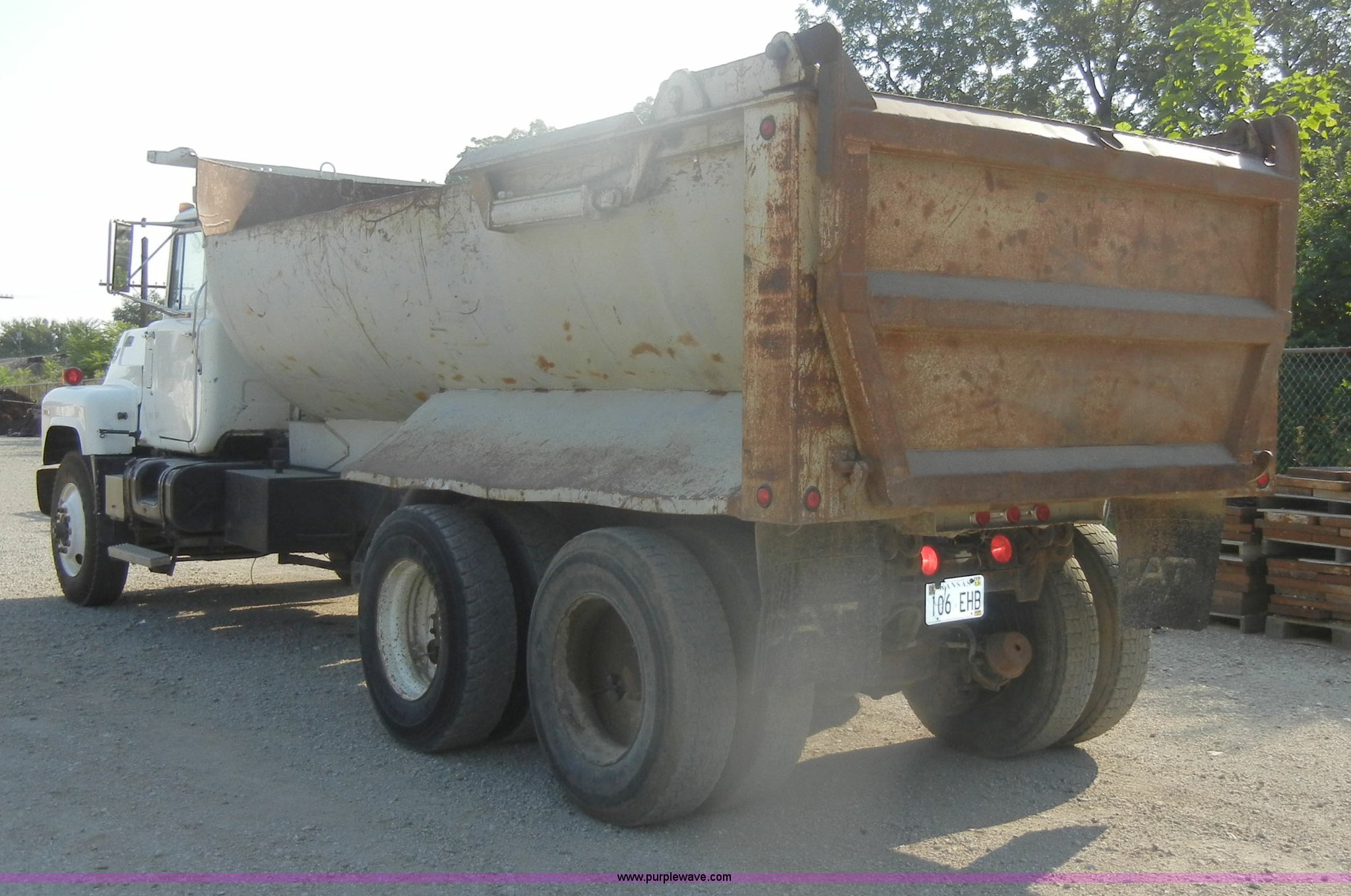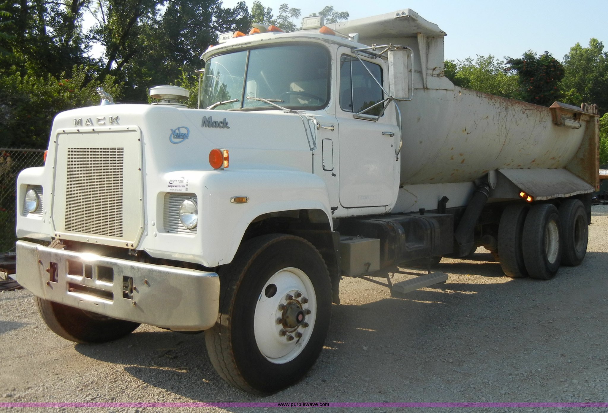 Purple Wave is selling a used Construction Dump Truck in Kansas. This item is a 1986 Mack RS686LS barrel dump truck with the following: 486,865 miles on odometer, 7,521 hours on meter, Mack E6 11.0L L6 diesel engine, 300 HP, Maxi Torque Xtend Range five speed manual transmission, Two speed Hi/Lo, Power divider lock, Heater, AM/FM/CD, Heated mirrors, Cloth air seats, 19' x 8' bed, Hydraulic end dump, Dual three stage rams, Chrome bumper, Dual 50 gallon fuel tanks, Camel back spring suspension, Front tow hooks, Air brakes, 11R24.5 tires, Service records available