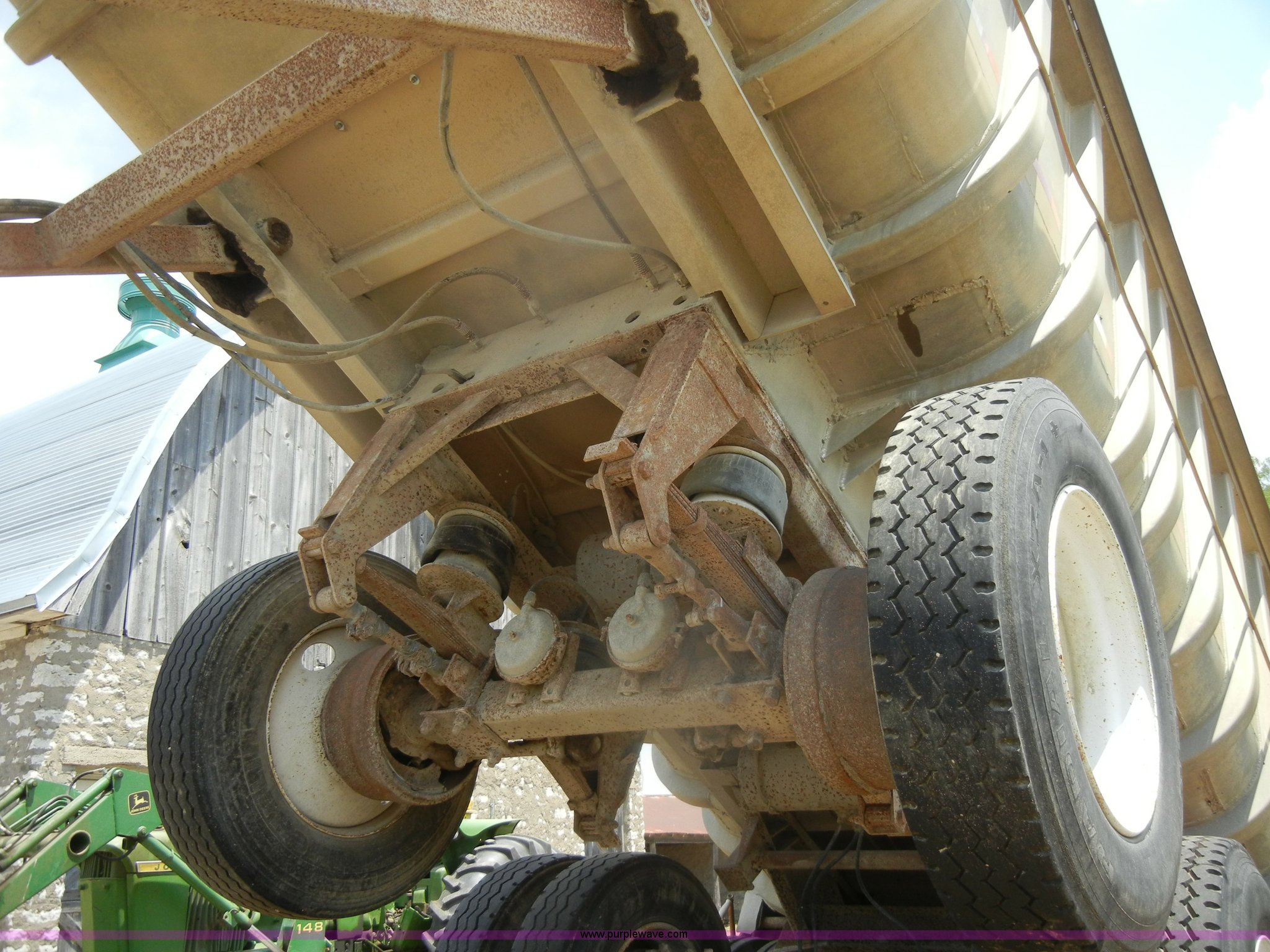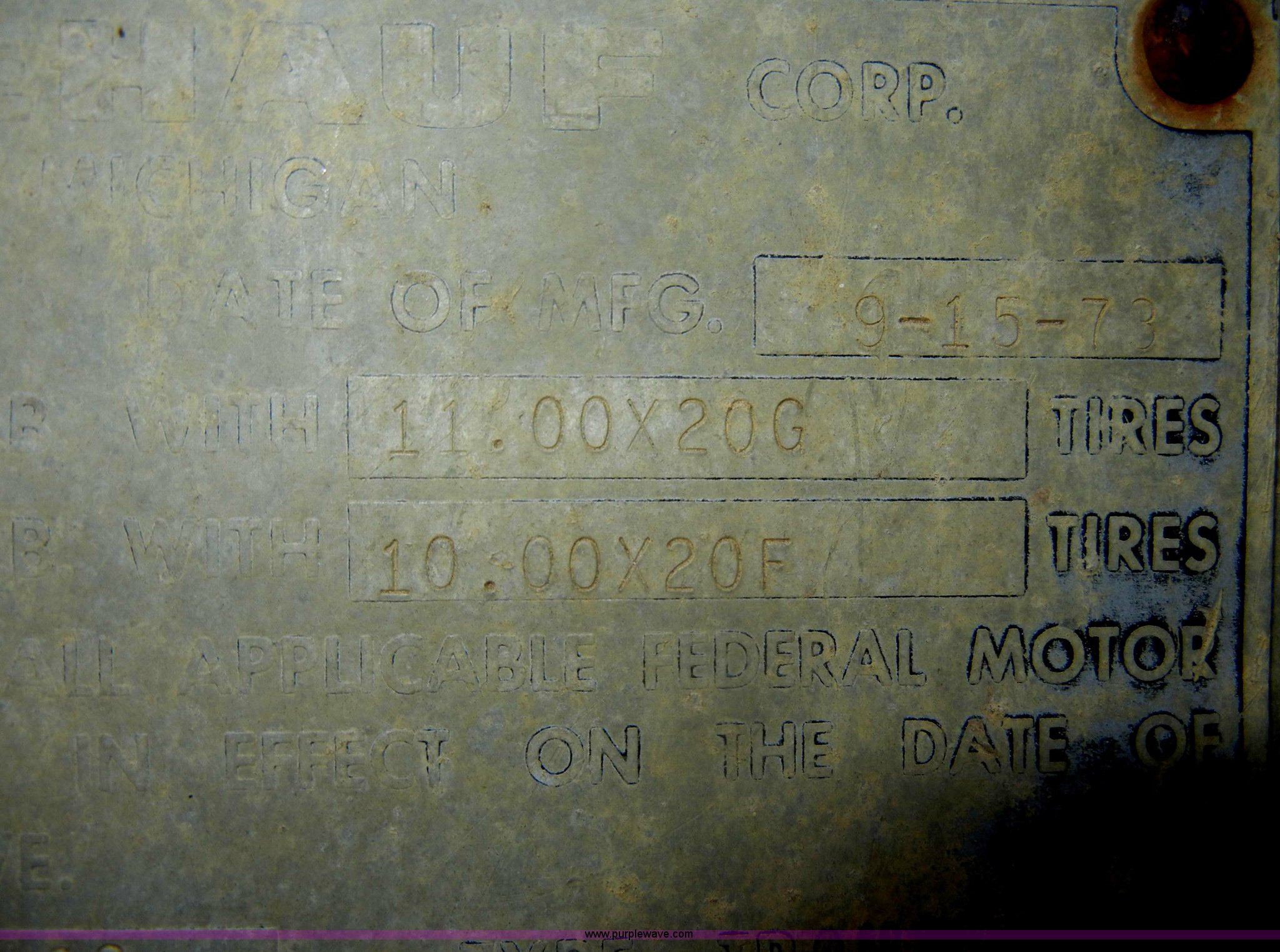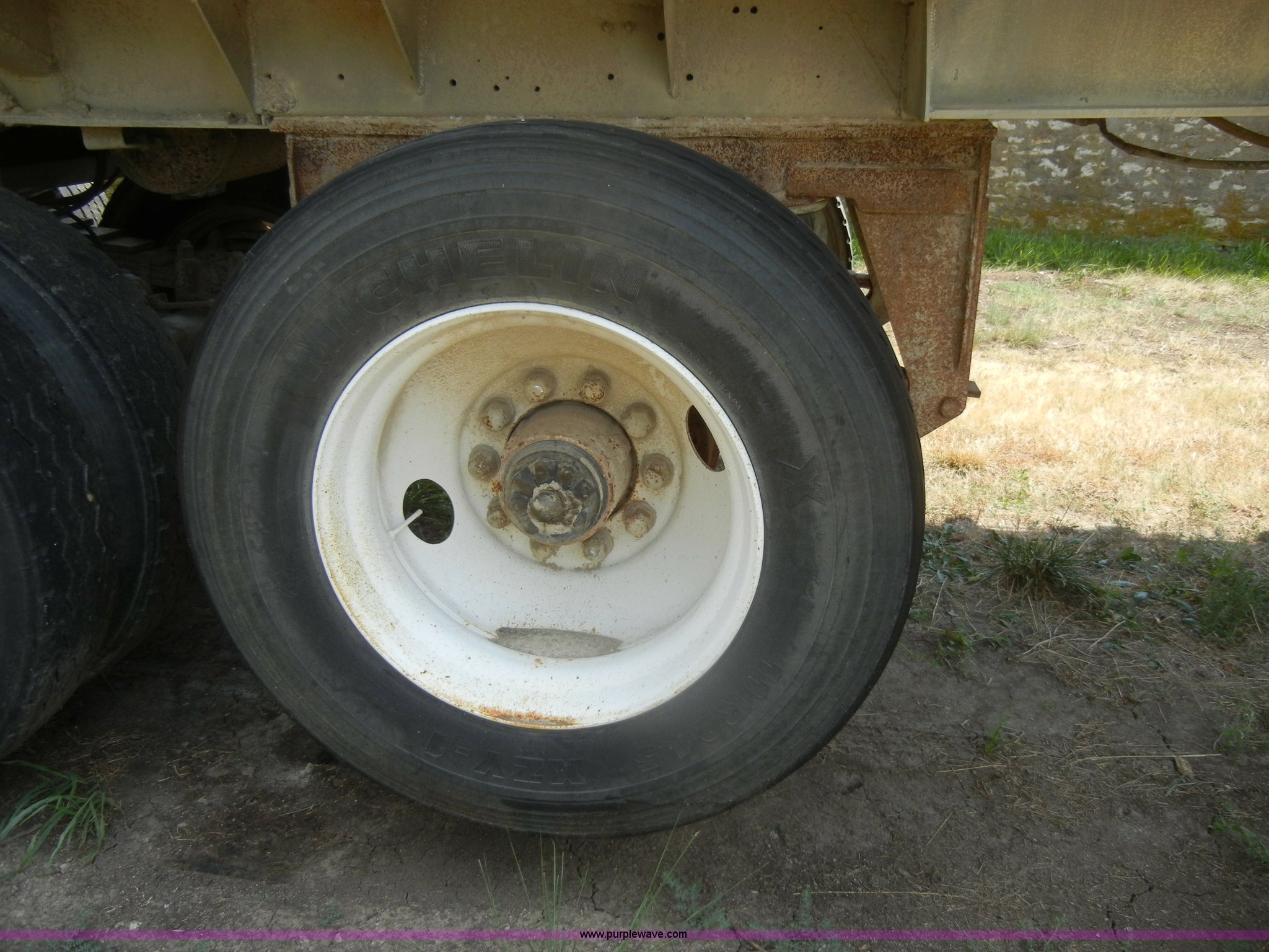 Purple Wave is selling a used End Dump Rock Trailer in Kansas. This item is a 1974 Hobb/Fruehauf end dump trailer with the following: 28' L, Air-up/air-down pusher axle, Spring suspension, Air brakes, Roll over tarp, 11R24.5 tires, GVWR 70,000 lbs, GAWR 23,000 lbs 2nd and 3rd axles, No jack stands, Model GA28THM5325