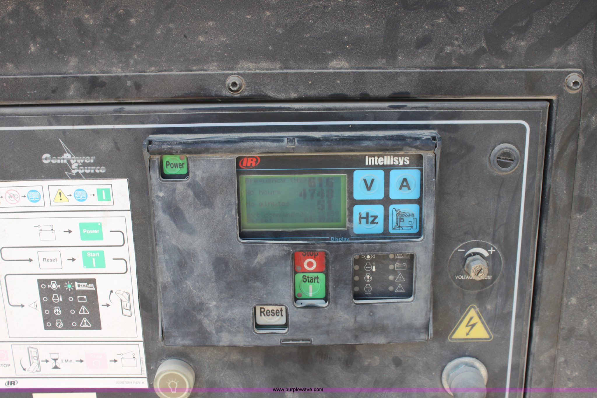 Purple Wave is selling a used Generator Set in Kansas. This item is a Ingersoll Rand G190 generator with the following: 4,748 hours on meter, John Deere 6.8L six cylinder diesel engine, Intellisys digital display, (2) 115V outlets, 125V outlet, 250V outlet, (5) 480V outlets, Tandem axle trailer, Adjustable pintle hitch, Dual braking axles, Additional front mounted fuel tank, Battery disconnect, 235/80R16 tires