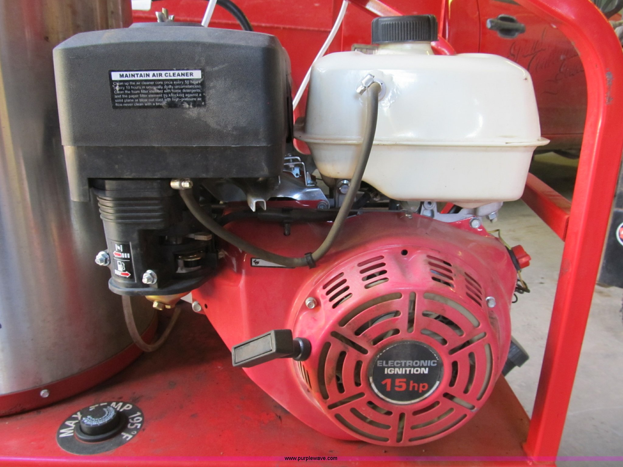 Purple Wave is selling a used Tools in Missouri. This item is a Easy Kleen Magnum 4000 hot water pressure washer with the following: 15 HP gas engine, Electronic ignition, 3.5 gpm with 4,000 PSI adjustable pressure, Diesel fired 120V burner, 190 degree Fahrenheit maximum temperature, Adjustable temperature, Hi-pressure hose, gun, wand, and soap assembly, (3) fittings included, Requires 110V electric to power diesel burner