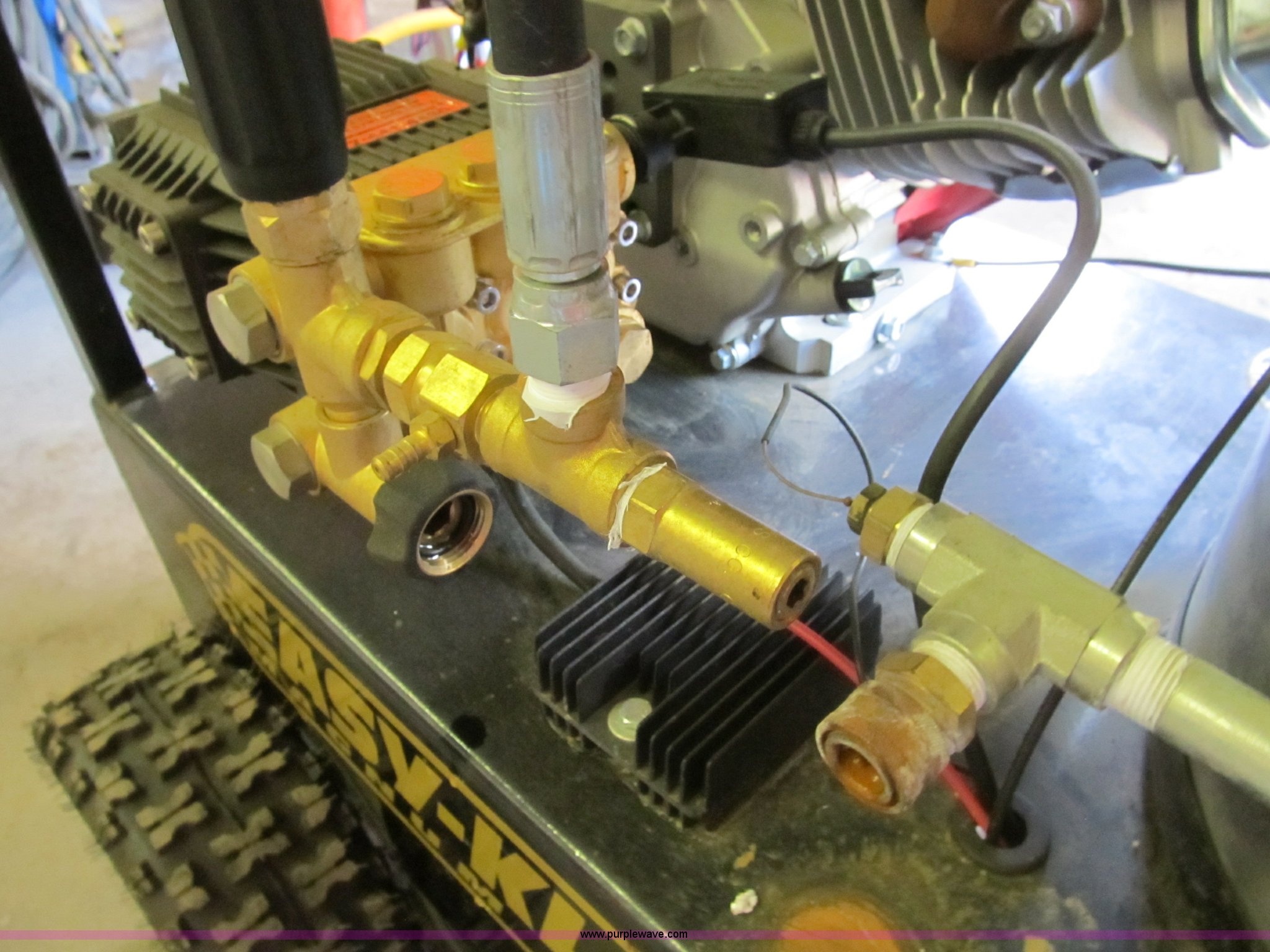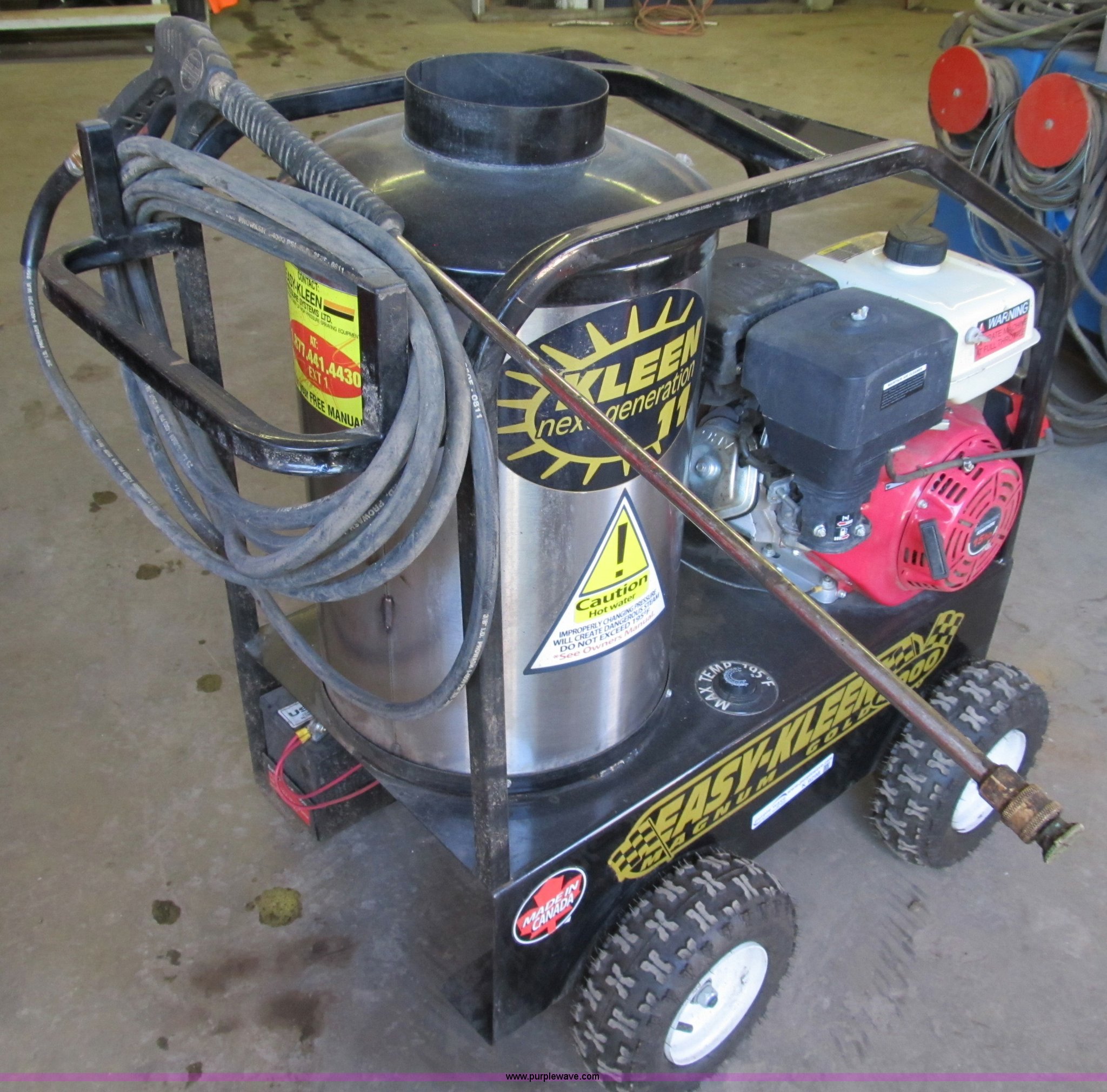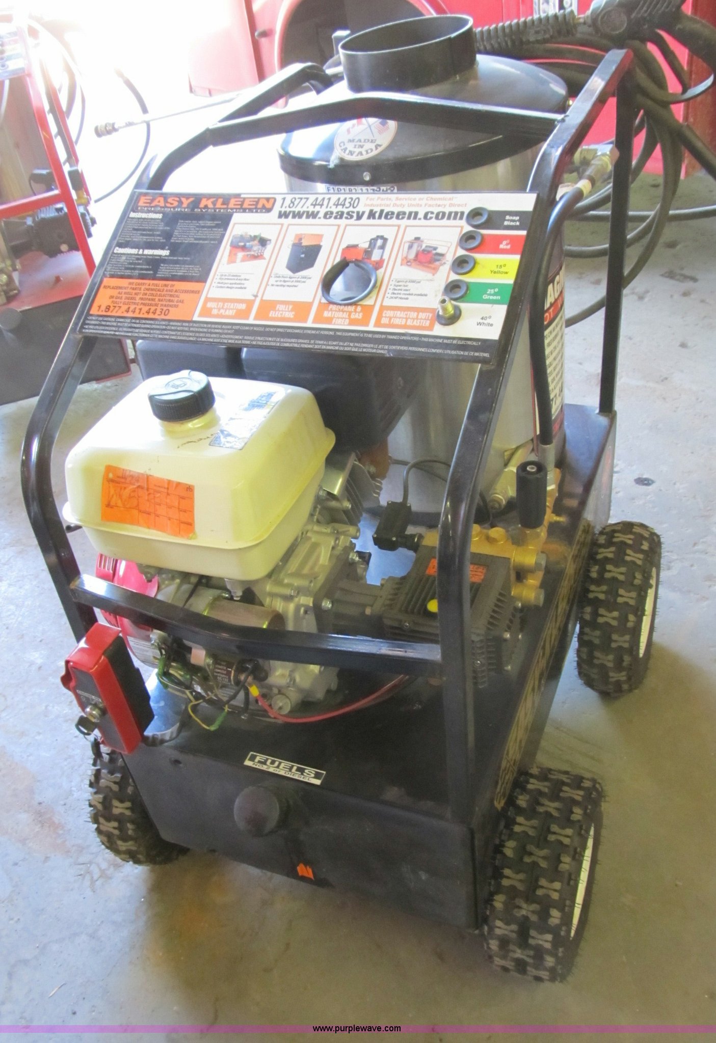 Purple Wave is selling a used Tools in Missouri. This item is a Easy Kleen Magnum Gold 4000 hot water pressure washer with the following: 15 HP gas engine, Electronic ignition, 3.5 gpm with 4,000 PSI adjustable pressure, Diesel fired burner, 190 degrees Fahrenheit maximum temperature, Adjustable temperature, Hi-pressure hose, gun, wand, and soap assembly, (2) fittings included, Self contained 12V battery to power diesel burner