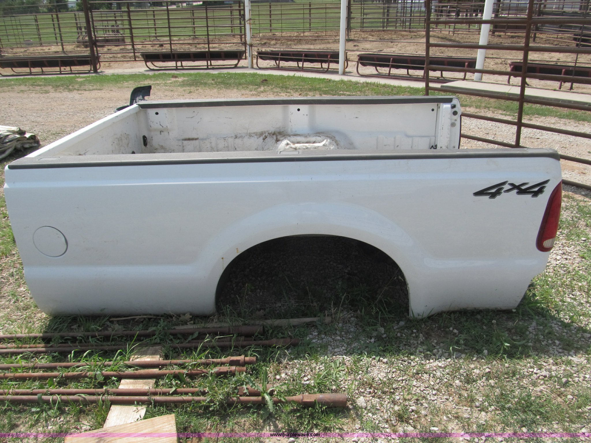 Purple Wave is selling a used Automotive Parts or Acces. in Nebraska. This item is a 8' pickup truck bed with the following: 19.75"H rail, 70.75" maximum inside bed width, 50.5"W inside wheel wells, 98.5"L inside bed, Plastic bed rail covers, Openings for stake pockets with covers, Lights intact, Operation unknown, (4) bed bolt-on bracket tie downs, Removed from Ford Super Duty pickup truck, Will fit 1999 to 2007 Ford Super Duty pickups, No tailgate included, Cosmetic damage and rust