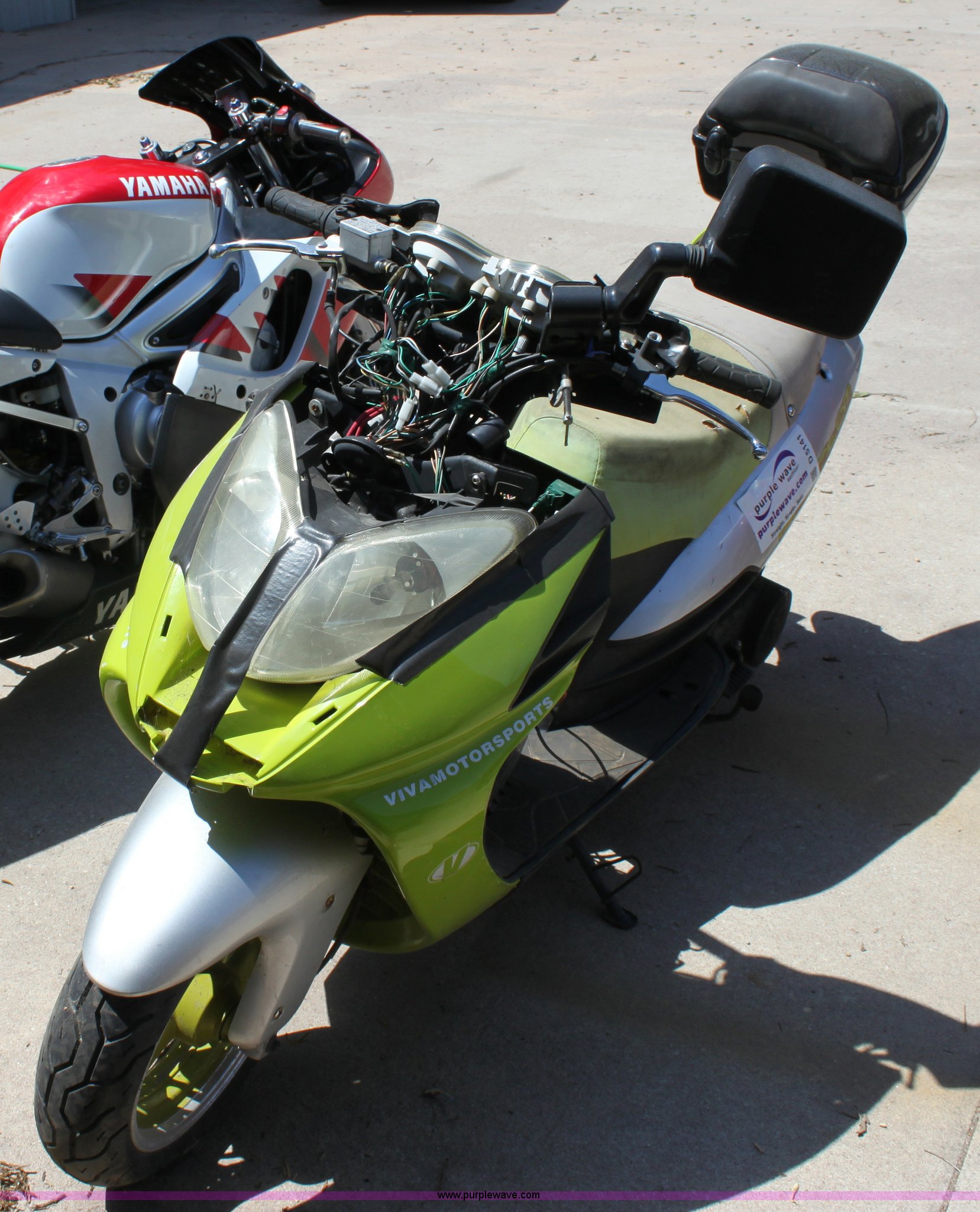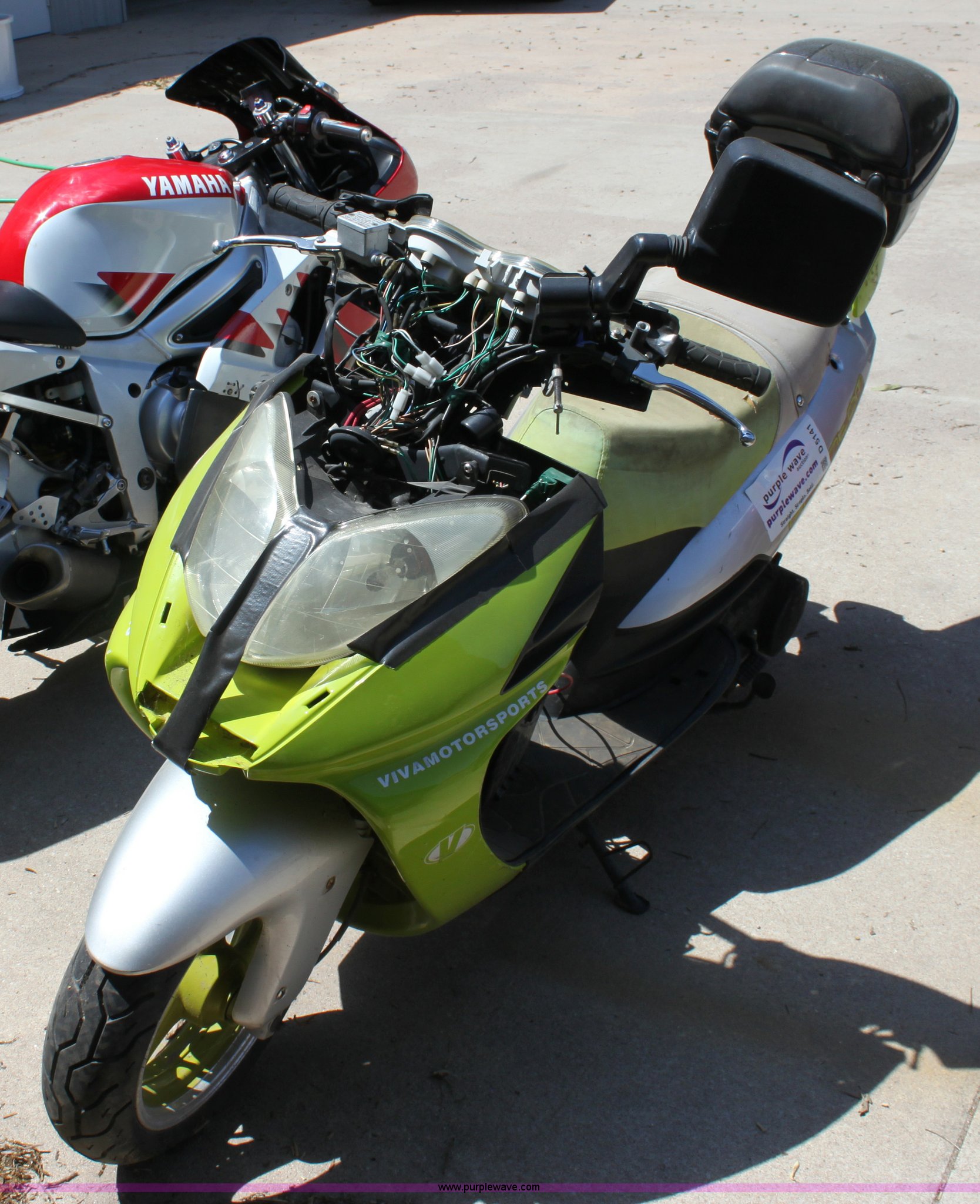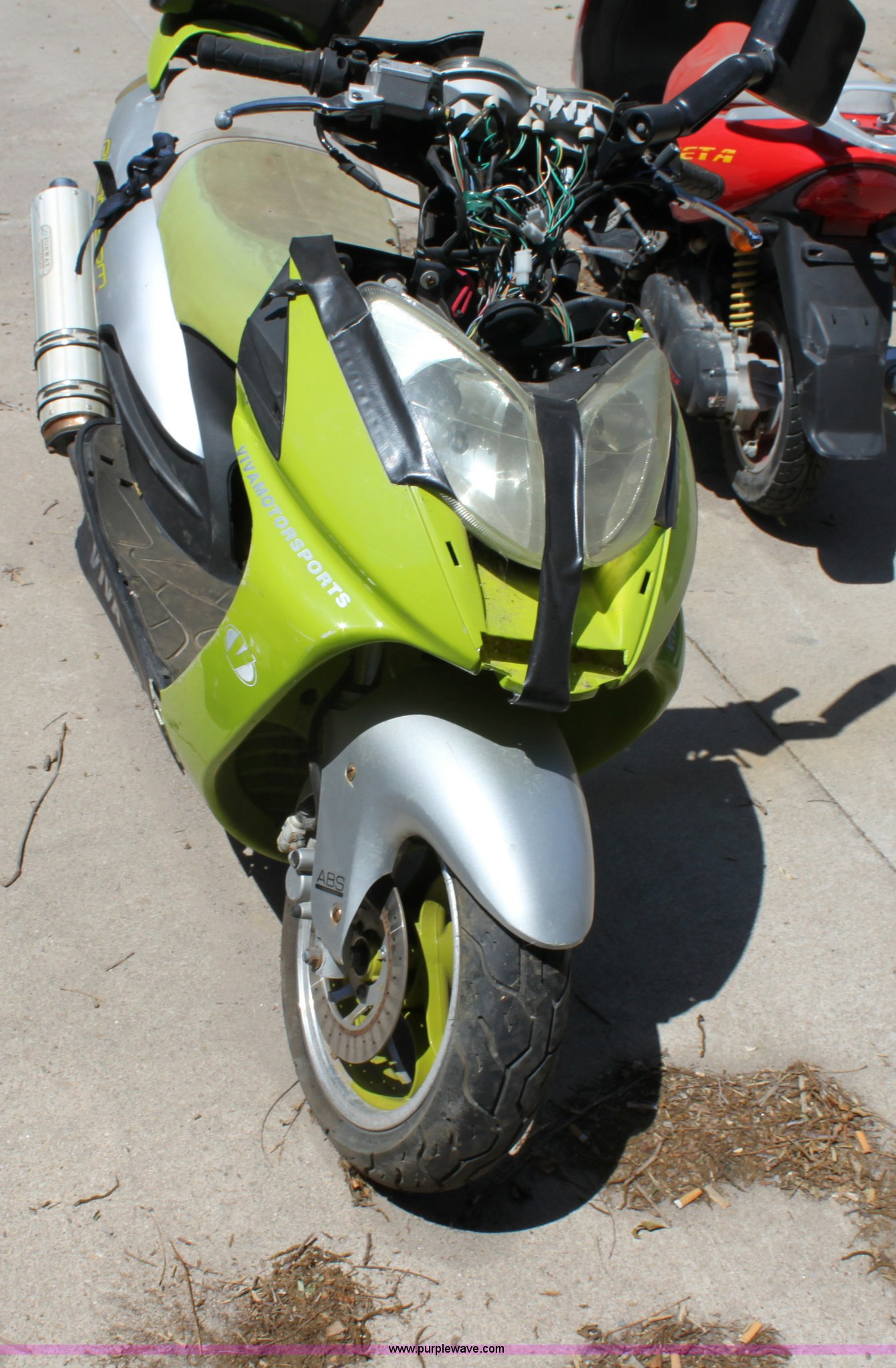 Purple Wave is selling a used Wrecked and Abandoned in Kansas. This item is a 2005 Viva moped with the following: 894 miles on odometer, Four stroke gas engine, 130/60R13 tires, Broken front plastic, Unknown operating condition, Item must be removed by 7 p.m. August 7th or additional charges will be incurred., Case# 120C019906