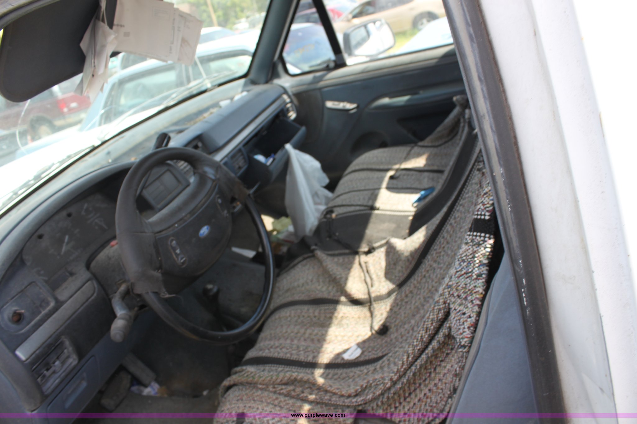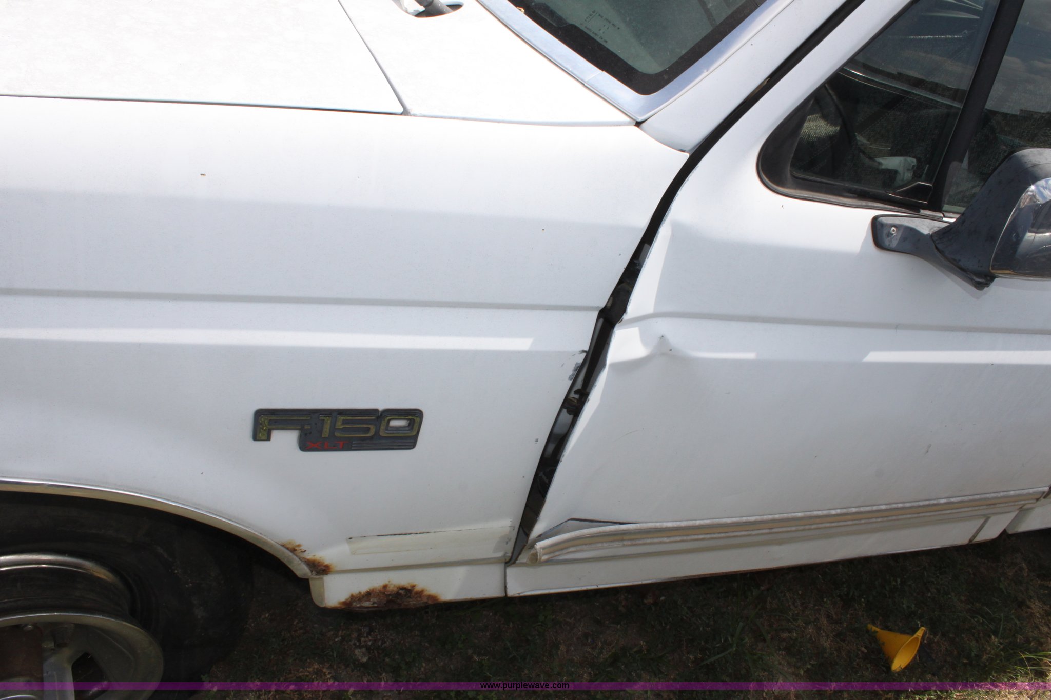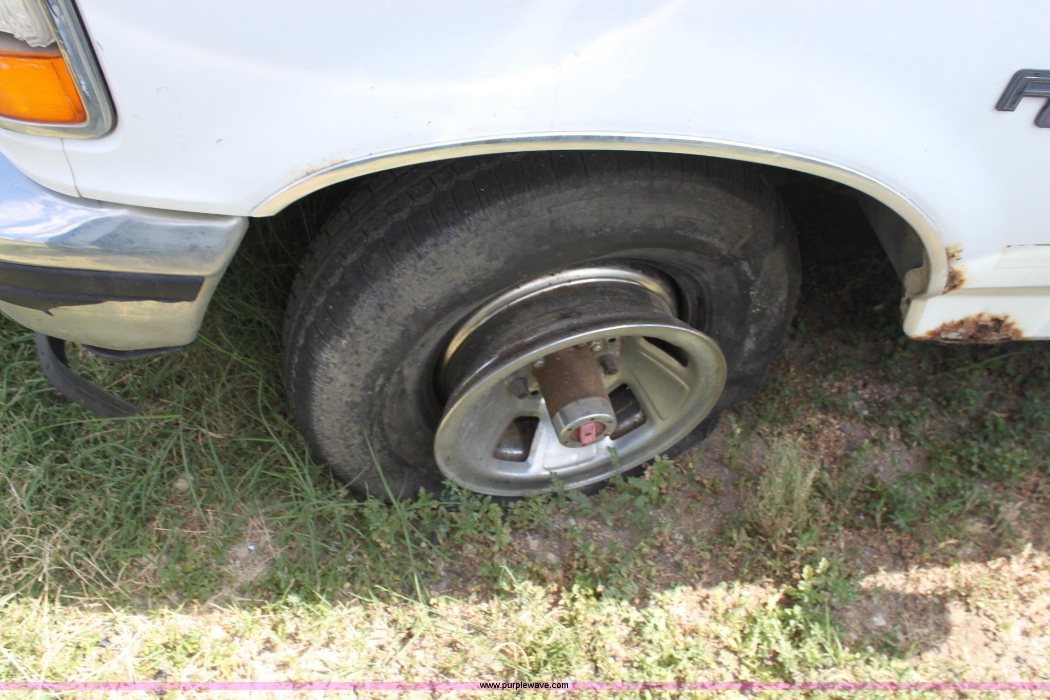 Purple Wave is selling a used Wrecked and Abandoned in Kansas. This item is a 1993 Ford F150 XLT pickup truck with the following: Mileage unknown, 5.8L V8 EFI gas engine, Automatic transmission, Four wheel drive, AC and heat, Tilt, Cruise, AM/FM/Cassette, Power windows and locks, Cloth interior, Trailer wiring, 235/75R15 tires, (3) flat, Interior/exterior cosmetic damage, Drivers door and front fender damage, Tailgate damage, Passenger side damage, Body rust around wheel well, Cracked windshield, Missing passenger side lockout hub, Item must be removed by 7 p.m. August 7th or additional charges will be incurred., Case# 12C32318
