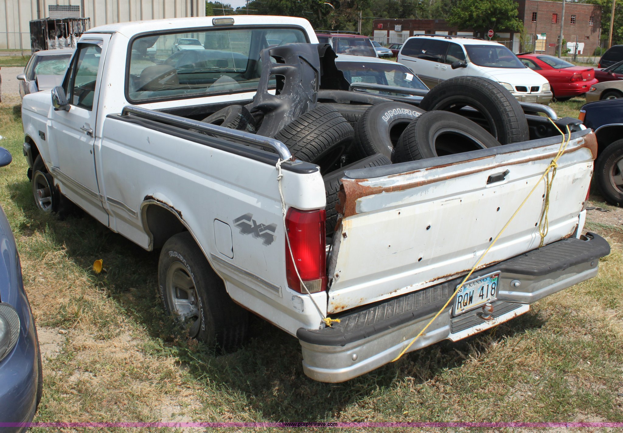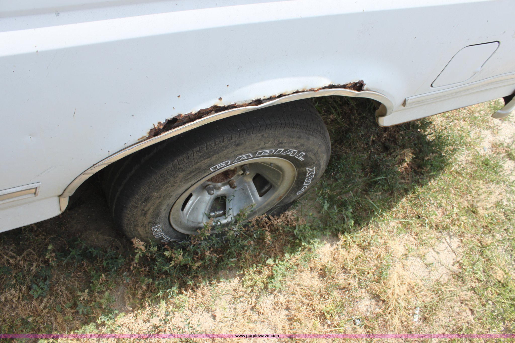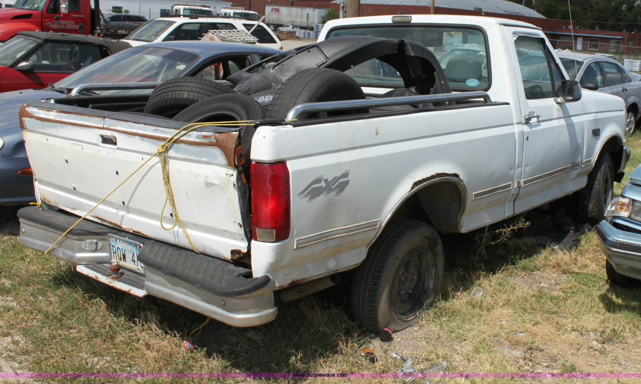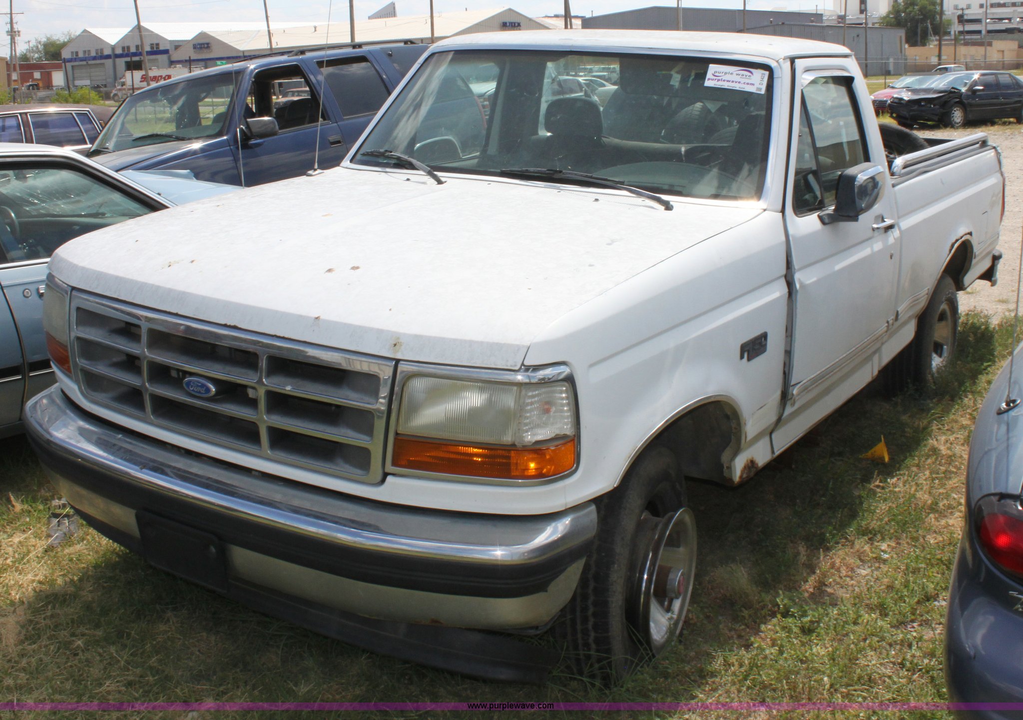Purple Wave is selling a used Wrecked and Abandoned in Kansas. This item is a 1993 Ford F150 XLT pickup truck with the following: Mileage unknown, 5.8L V8 EFI gas engine, Automatic transmission, Four wheel drive, AC and heat, Tilt, Cruise, AM/FM/Cassette, Power windows and locks, Cloth interior, Trailer wiring, 235/75R15 tires, (3) flat, Interior/exterior cosmetic damage, Drivers door and front fender damage, Tailgate damage, Passenger side damage, Body rust around wheel well, Cracked windshield, Missing passenger side lockout hub, Item must be removed by 7 p.m. August 7th or additional charges will be incurred., Case# 12C32318