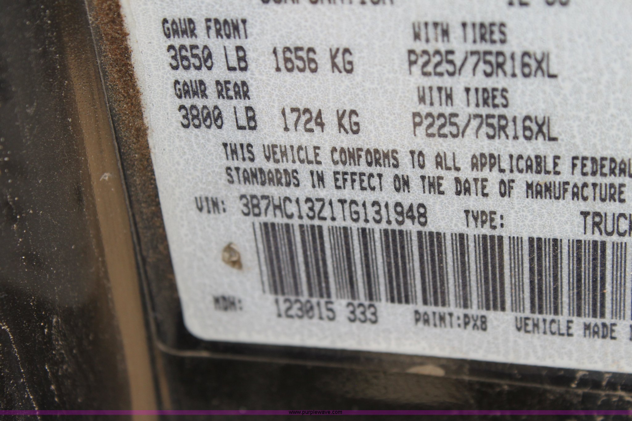 1996 Dodge Ram 1500 Laramie SLT pickup truck. 200,030 miles on odometer, 5.9L V8 MPI gas engine, Automatic transmission, AC and heat, Tilt, Cruise, AM/FM/CD, Power windows and locks, Cloth interior, Bed liner, 245/75R16 tires, Interior cosmetic damage, Vehicle does not have keys, Item must be removed by 7 p.m. August 7th or additional charges will be incurred., Case# 12C025537. Vehicle abandoned. No additional information available. Vehicle does not have keys unless notated otherwise in item listing. Buyer will receive paperwork indicating the abandoned status of the vehicle and which is sufficient to receive a title. 3B7HC13Z1TG131948. Shipping quotes available. Arrow Wrecker Service. 531 E MacArthur. Wichita, KS 67216