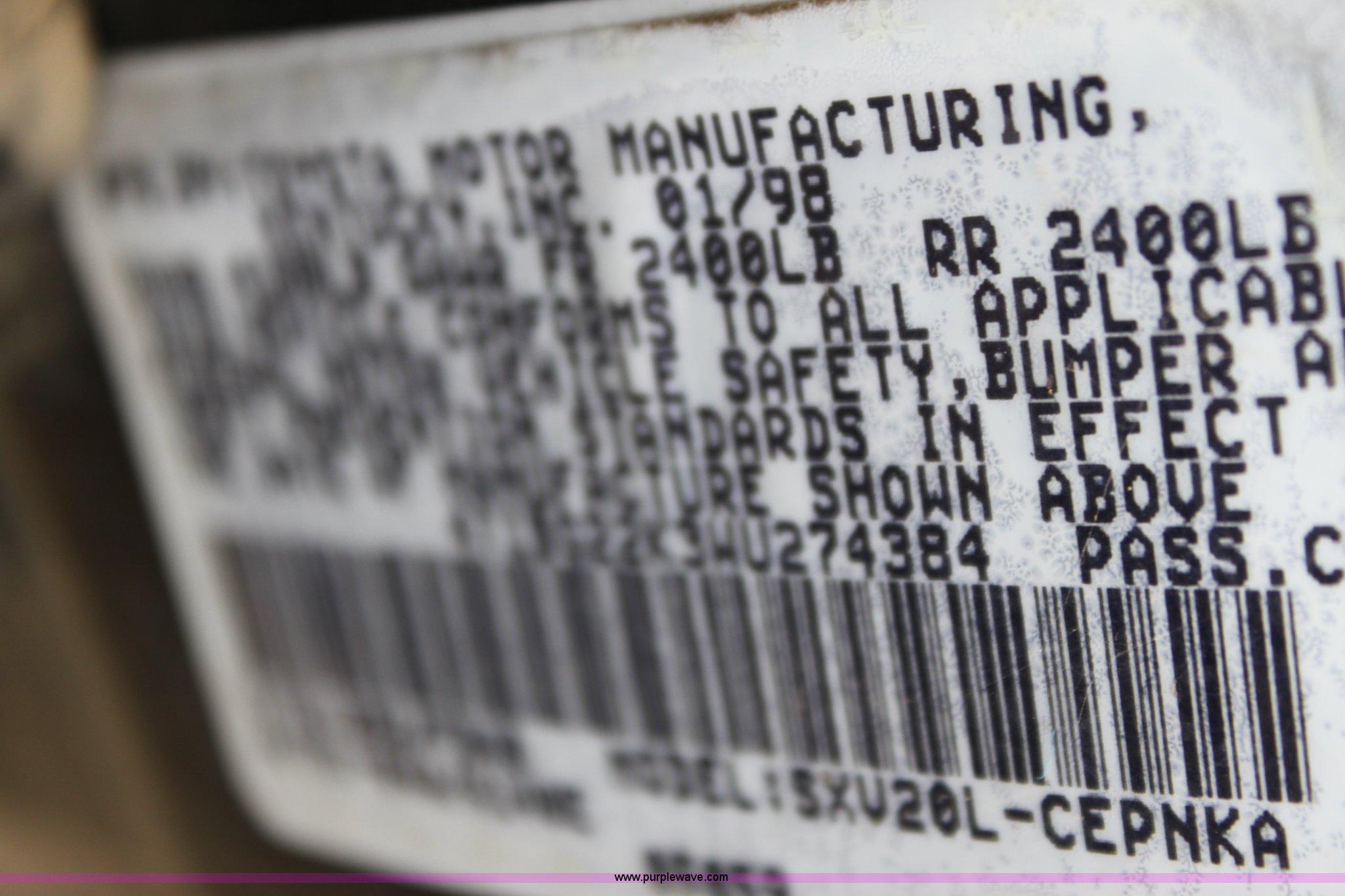Purple Wave is selling a used Wrecked and Abandoned in Kansas. This item is a 1998 Toyota Camry LE with the following: Mileage unknown, 2.2L I4 EFI gas engine, Engine components may be missing, Automatic transmission, AC and heat, Tilt, Cruise, Power windows, locks, and mirrors, Cloth interior, Sunroof, 195/70R14 tires, Interior/exterior cosmetic damage, Paint peeling, Passenger door damage, Drivers front fender damage, Cracked windshield, Timing belt and cover removed, Crank pulley removed, Engine components may be missing, Vehicle does not have keys, Item must be removed by 7 p.m. August 7th or additional charges will be incurred., Case# 12C024834