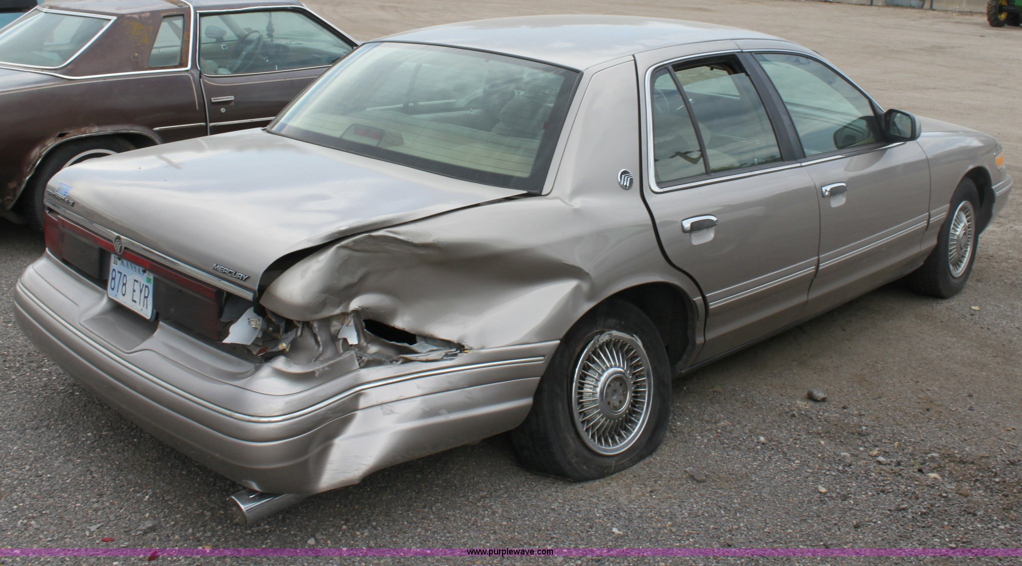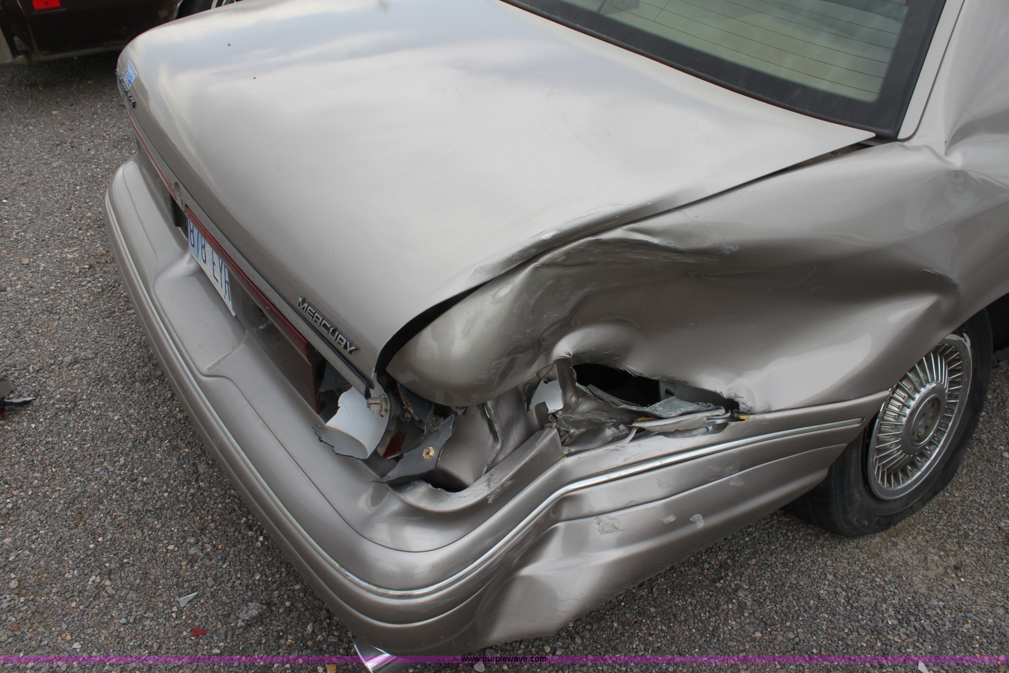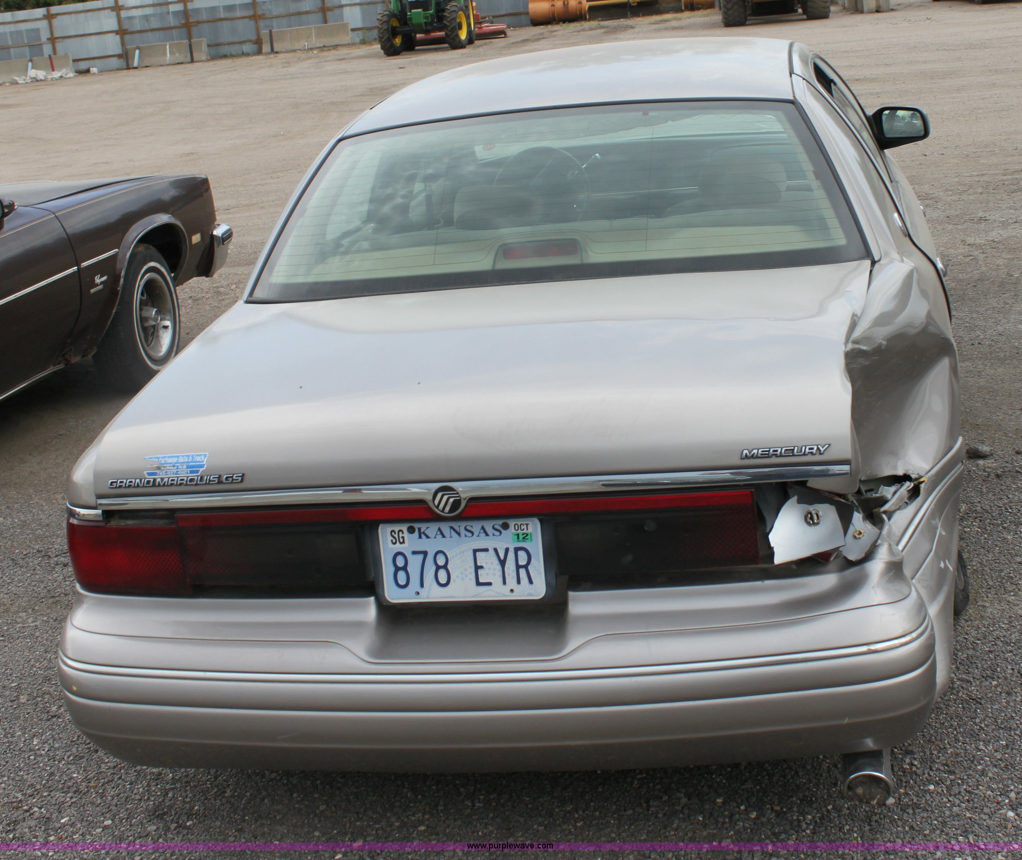 Purple Wave is selling a used Wrecked and Abandoned in Kansas. This item is a 1995 Mercury Grand Marquis GS with the following: 168,858 miles on odometer, 4.6L V8 EFI gas engine, Automatic transmission, AC and heat, Tilt, Cruise, AM/FM/Cassette, Power windows, locks, and mirrors, Cloth interior, Interior/exterior cosmetic damage, Cracked windshield, Flat tire, Paint peeling, Dented hood, Rear end damage, Non-operational, must be towed, Vehicle does not have keys, Item must be removed by 7 p.m. August 7th or additional charges will be incurred., Case# 12C033047