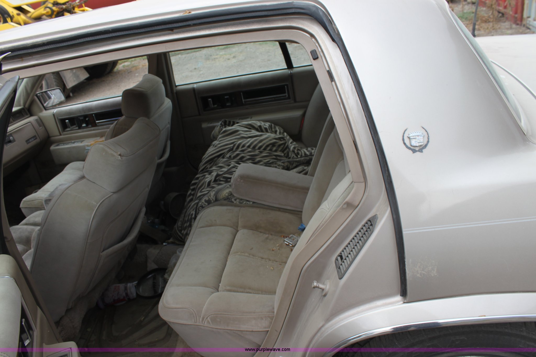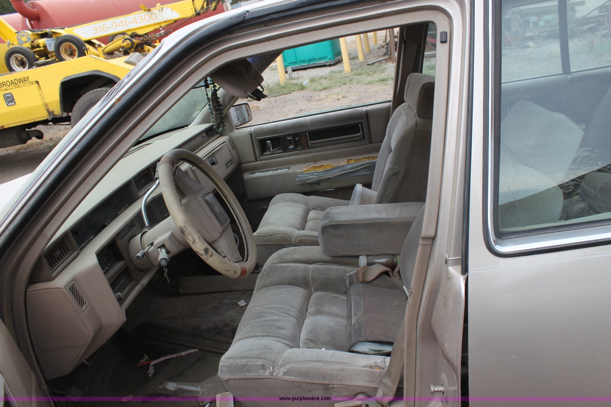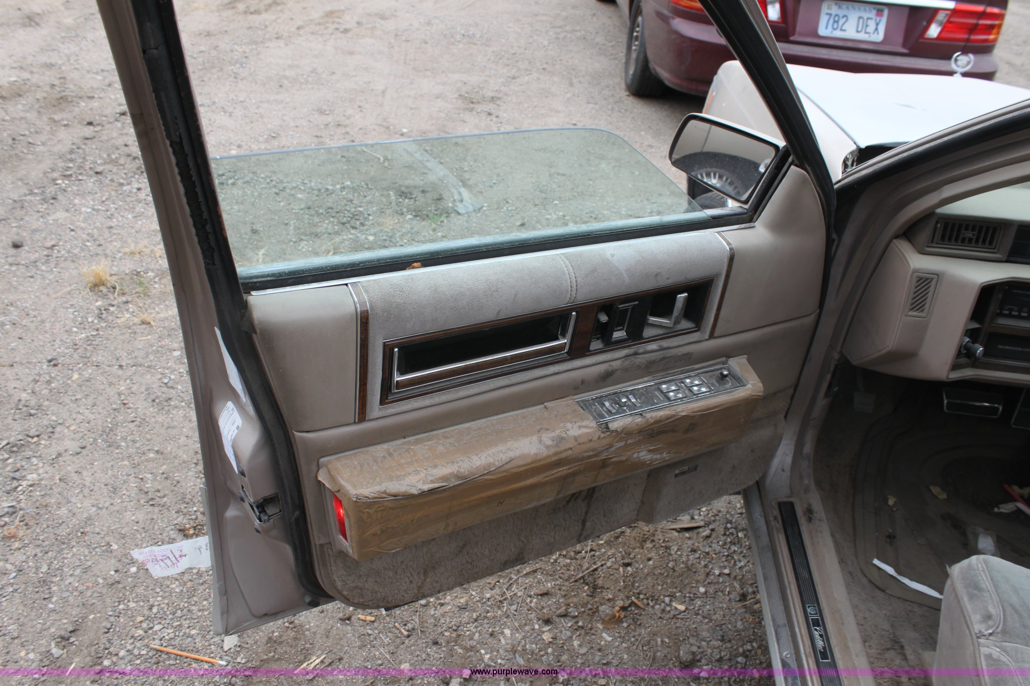Purple Wave is selling a used Wrecked and Abandoned in Kansas. This item is a 1989 Cadillac DeVille with the following: Mileage unknown, 4.5L V8 DI gas engine, Automatic transmission, AC and heat, Tilt, Cruise, AM/FM/CD, Power windows, locks, and mirrors, Cloth interior, Sunroof, 205/70R15 tires, Flat tire, Interior/exterior cosmetic damage, Side window broken, Hood is chained shut, Vehicle does not have keys, Item must be removed by 7 p.m. August 7th or additional charges will be incurred., Case# 12C034639