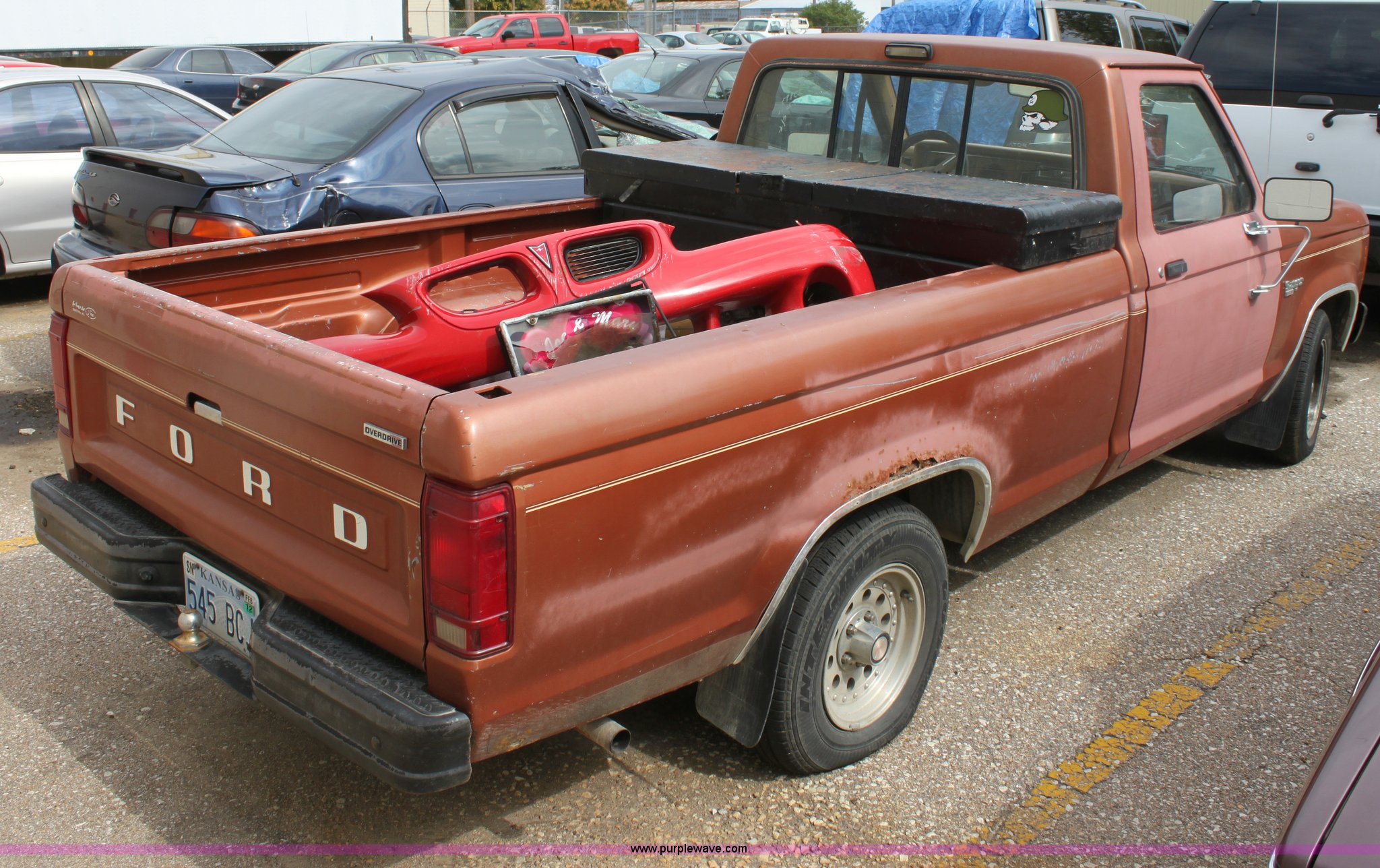 Purple Wave is selling a used Wrecked and Abandoned in Kansas. This item is a 1984 Ford Ranger XL pickup truck with the following: 48,001 miles on odometer, Not actual mileage, 2.3L I4 1V gas engine, Five speed manual transmission, AC and heat, Tilt, Cruise, AM/FM/CD, Manual windows and locks, Cloth interior, Cross-bed toolbox, 205/75R14 tires, Cracked windshield, Rust around wheel wells, Grill is broken, Vehicle does not have keys, Item must be removed by 7 p.m. August 7th or additional charges will be incurred., Case# 12C019014