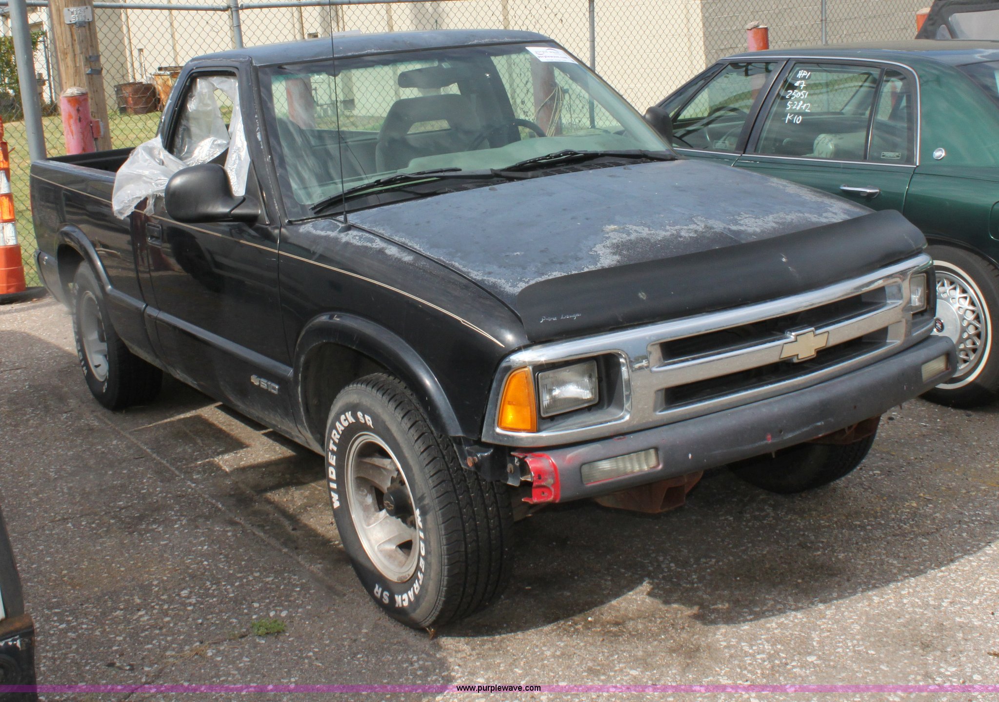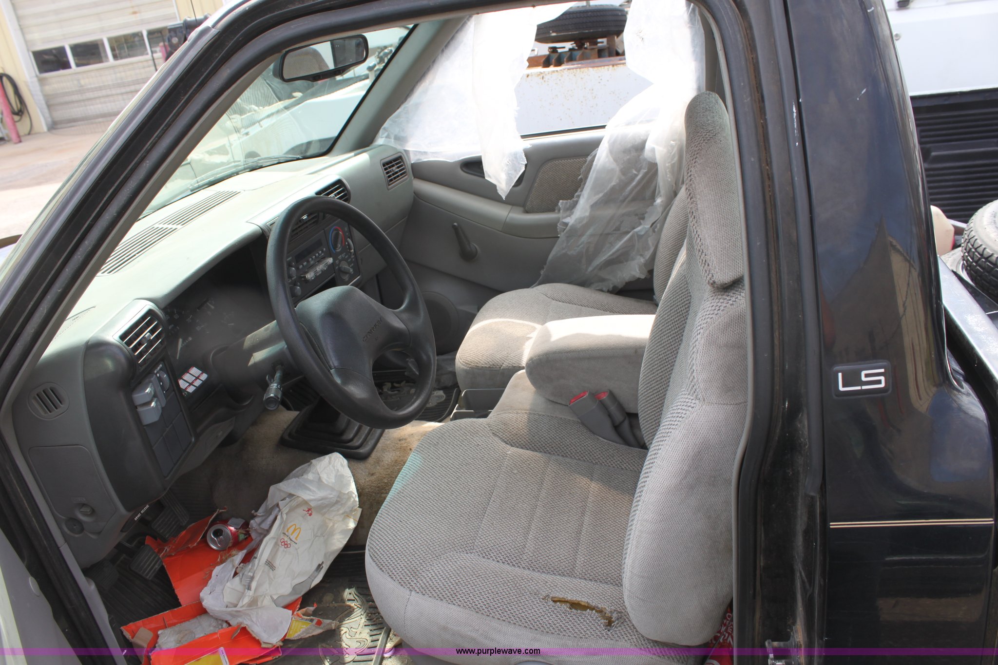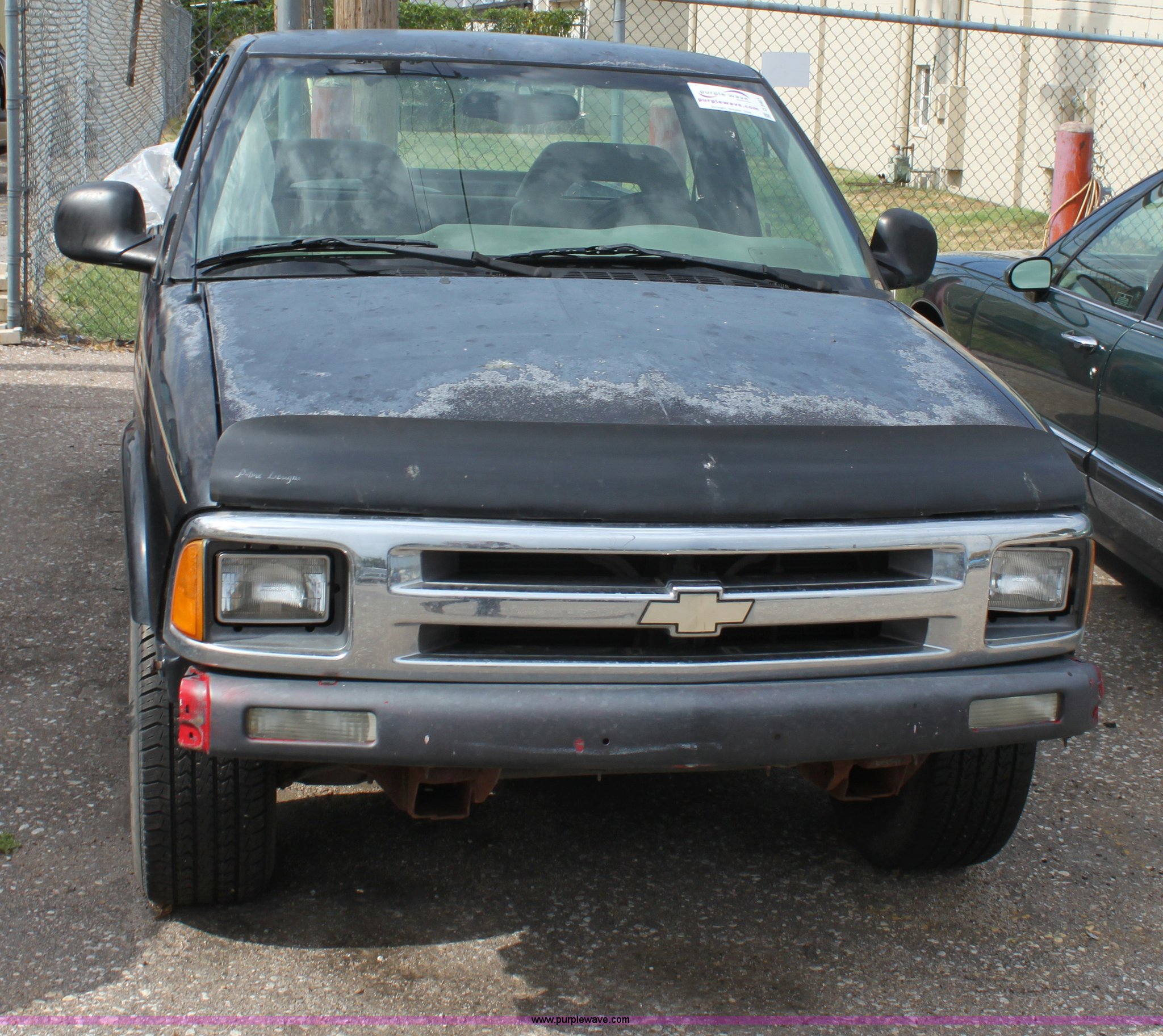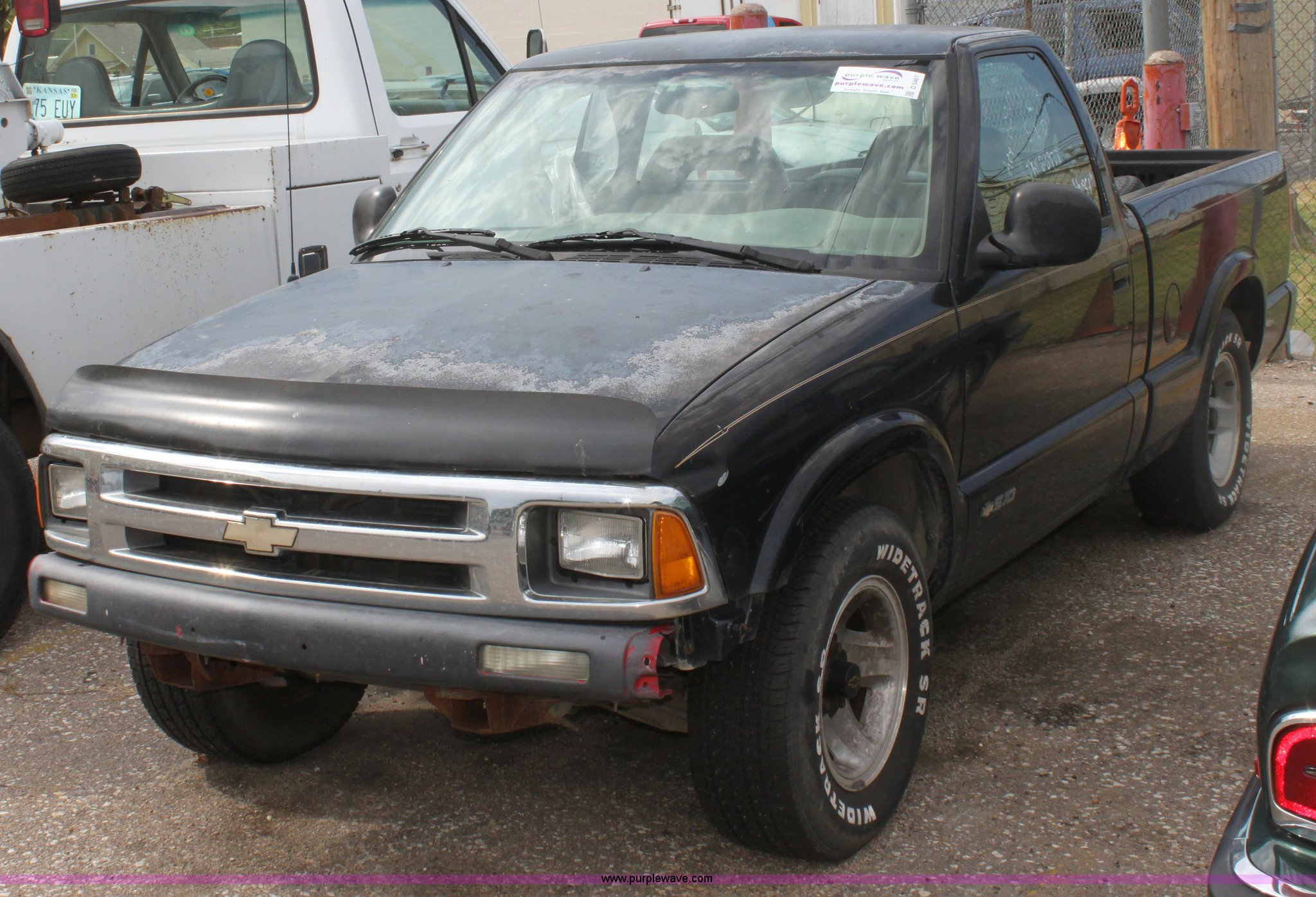 Purple Wave is selling a used Wrecked and Abandoned in Kansas. This item is a 1994 Chevrolet S-10 LS pickup truck with the following: 165,243 miles on odometer, 2.2L I4 MPI gas engine, Five speed manual transmission, AC and heat, AM/FM/Cassette, Manual windows and locks, Cloth interior, Bed liner, 235/70R15 tires, Keys, Interior/exterior cosmetic damage, Cracked dash, No passenger side window, Paint peeling, Front fender damage, Front bumper cover missing, Unknown operating condition, Item must be removed by 7 p.m. August 7th or additional charges will be incurred., Case# 12C29844