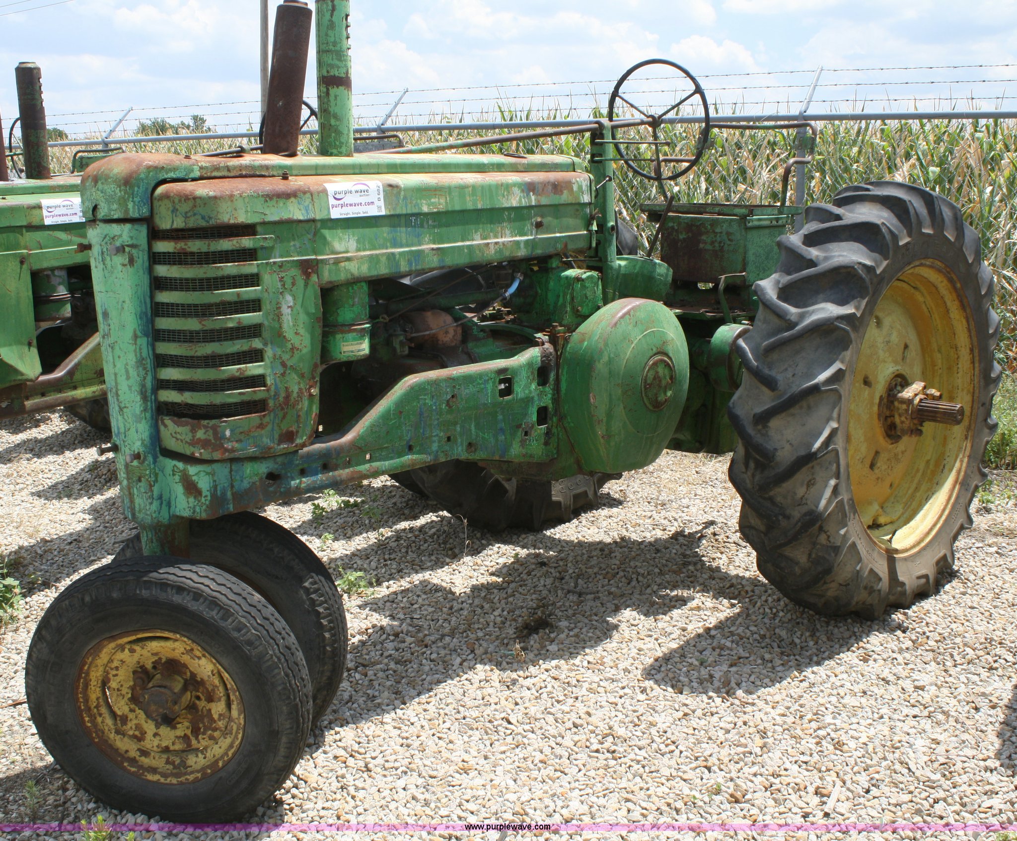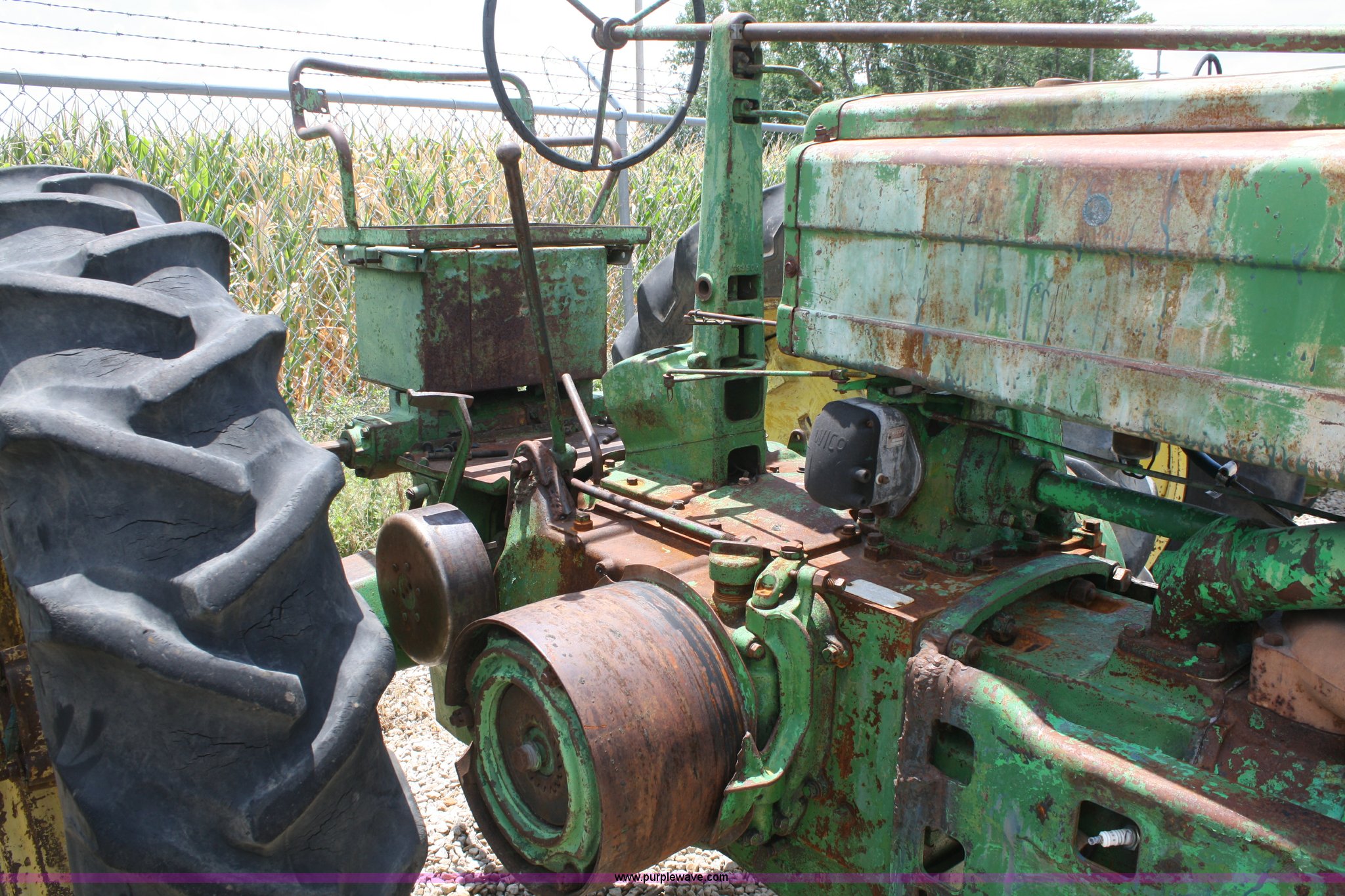 Purple Wave is selling a used Tractor in Kansas. This item is a 1952 John Deere Model A tractor with the following: Two cylinder gas engine, 18 HP, Six speed transmission, 540 PTO, 6.50-16 front tires, 13.6-38 rear tires, Rear end gears have been removed, Tractor will not start or move, Serial 692098