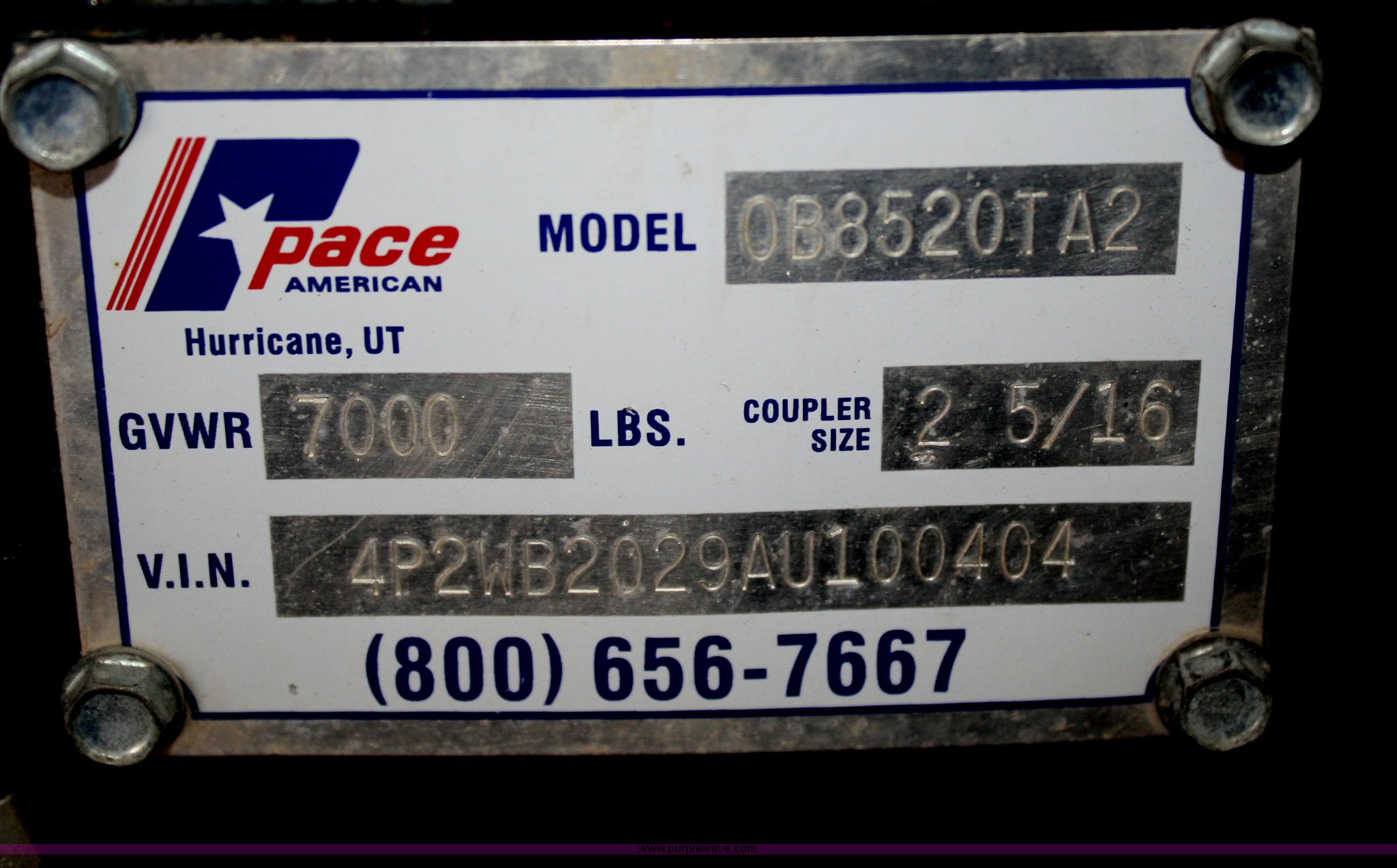 2010 Pace aluminum trailer has sold in Topeka, Kansas for $5940. Item B6829 sold on July 31st, 2012.