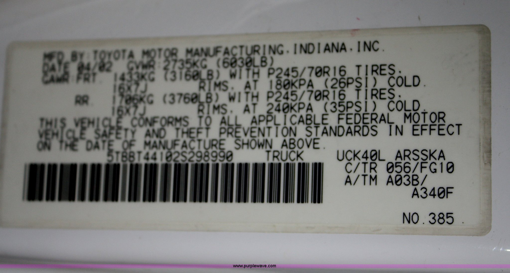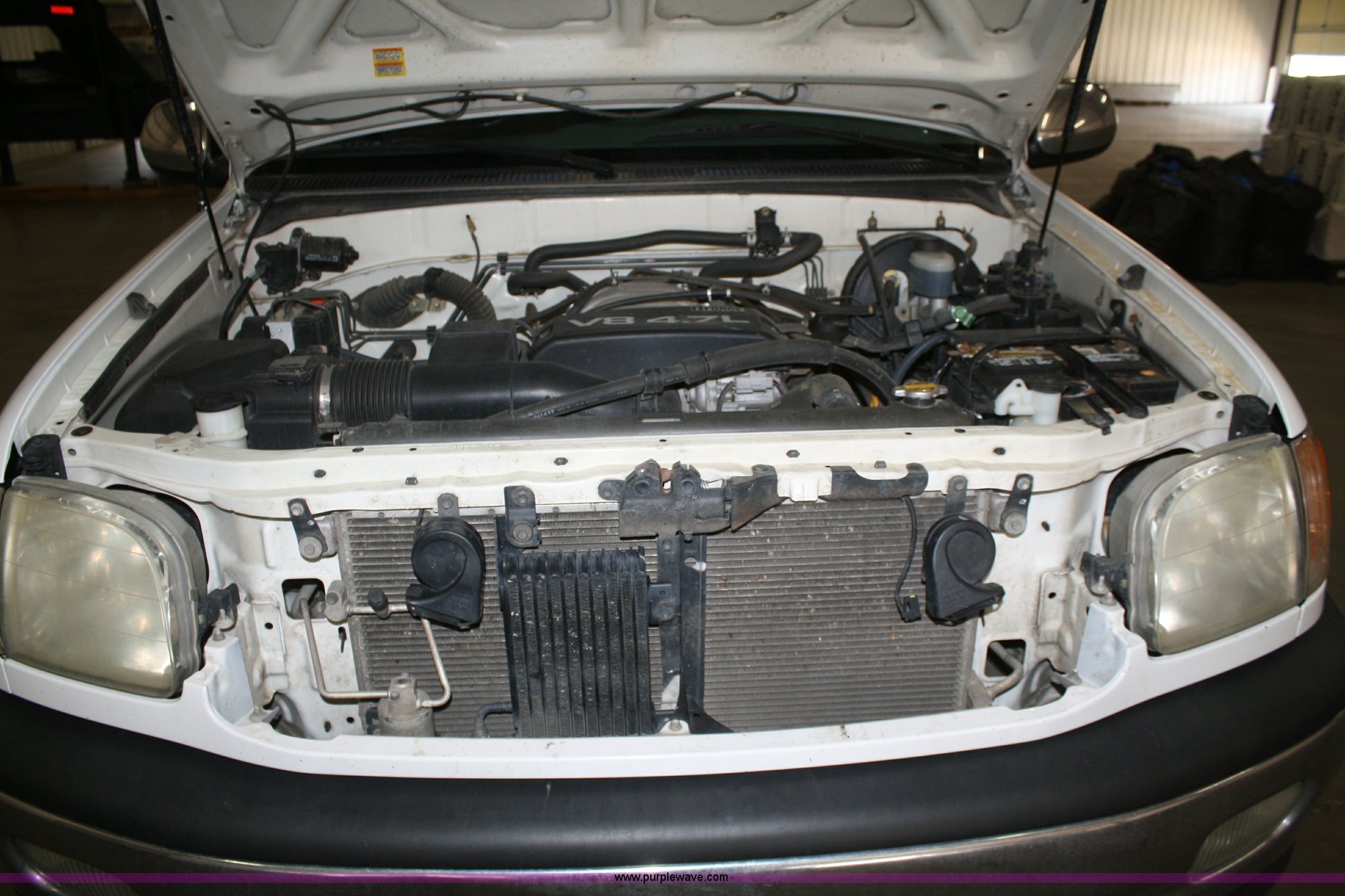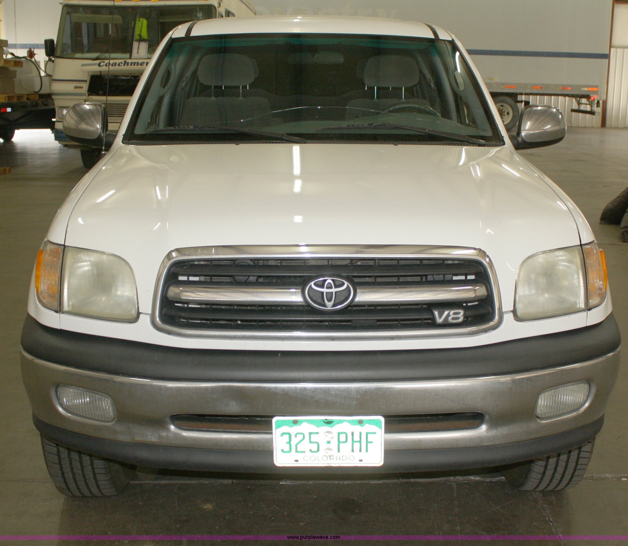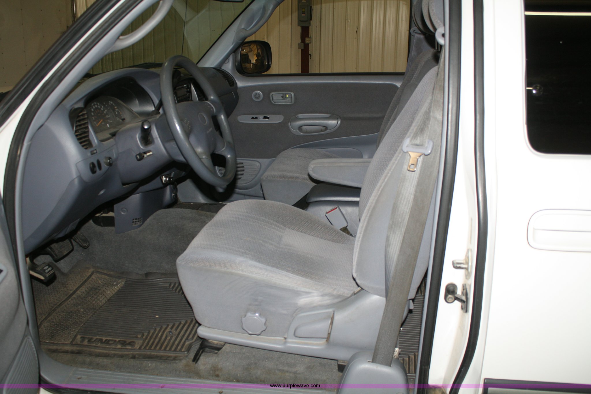 Purple Wave is selling a used Compact Pickup or Van in Kansas. This item is a 2002 Toyota Tundra SR5 Access Cab pickup truck with the following: 245,095 miles on odometer, 4.7L V8 EFI gas engine, Automatic transmission, Four wheel drive, AC and heat, Tilt, Cruise, AM/FM/Cassette, Power windows, locks, and mirrors, Cloth interior, Husky toolbox, Receiver hitch, 255/70R16 tires, Cracked windshield