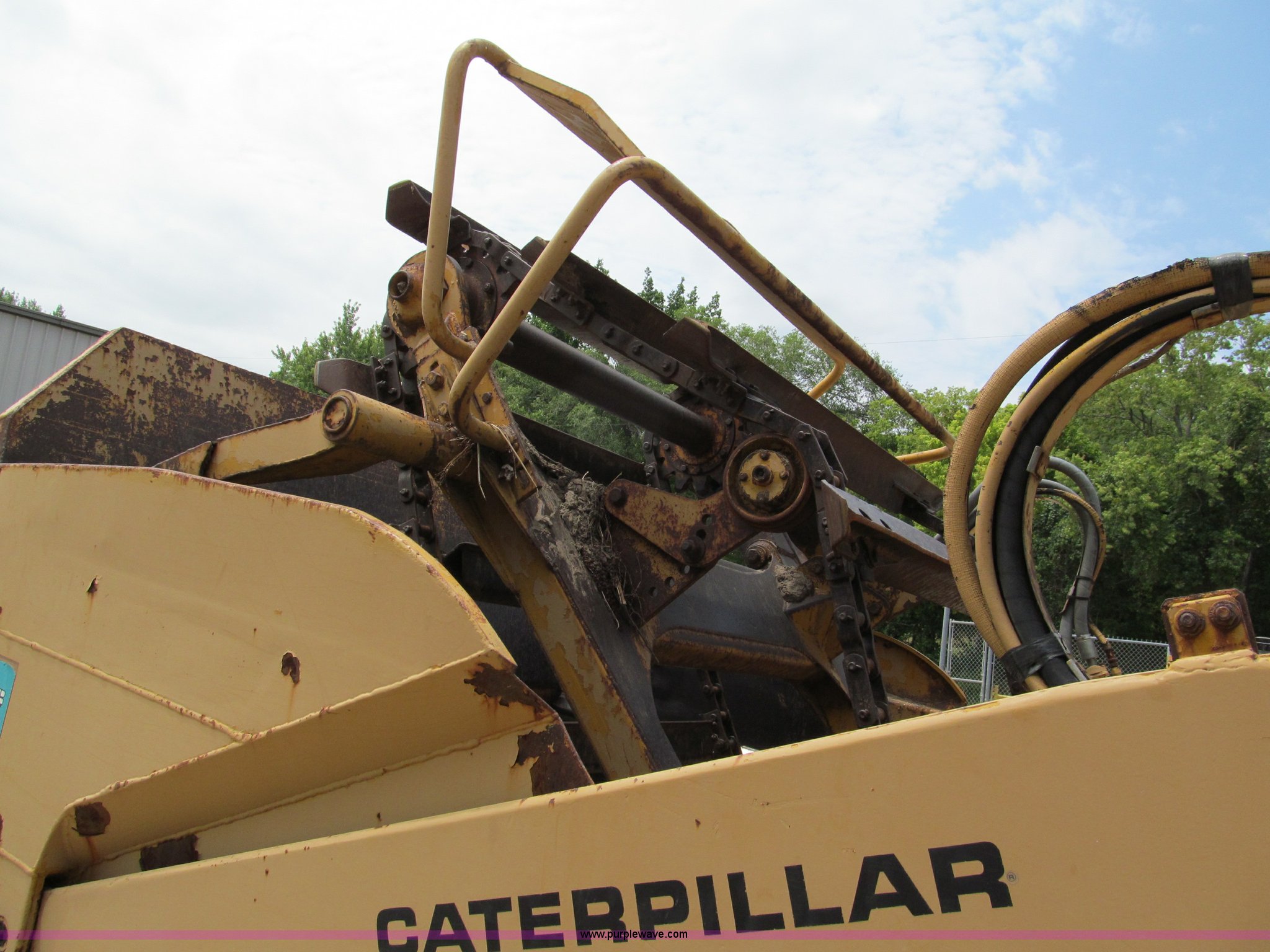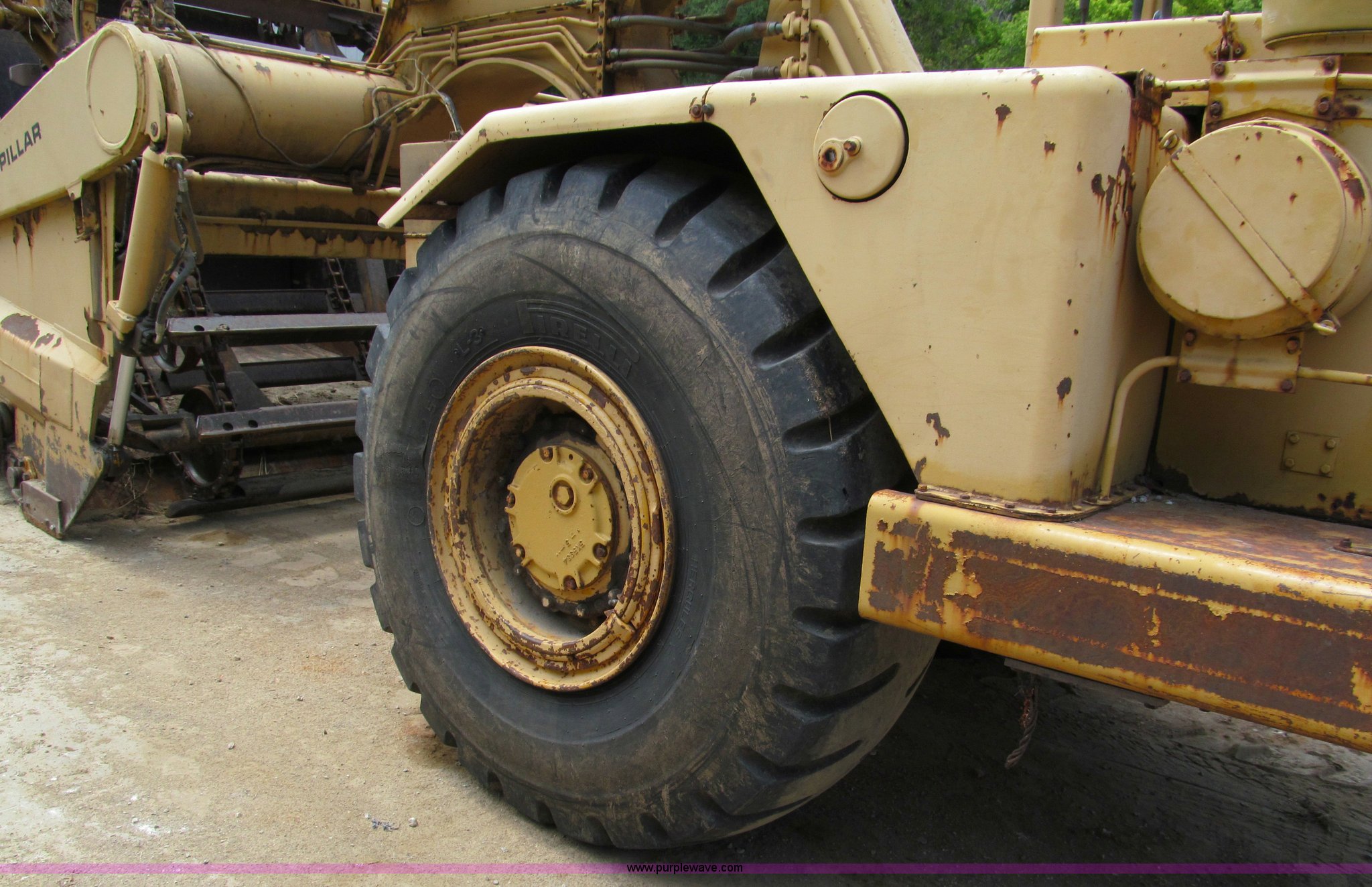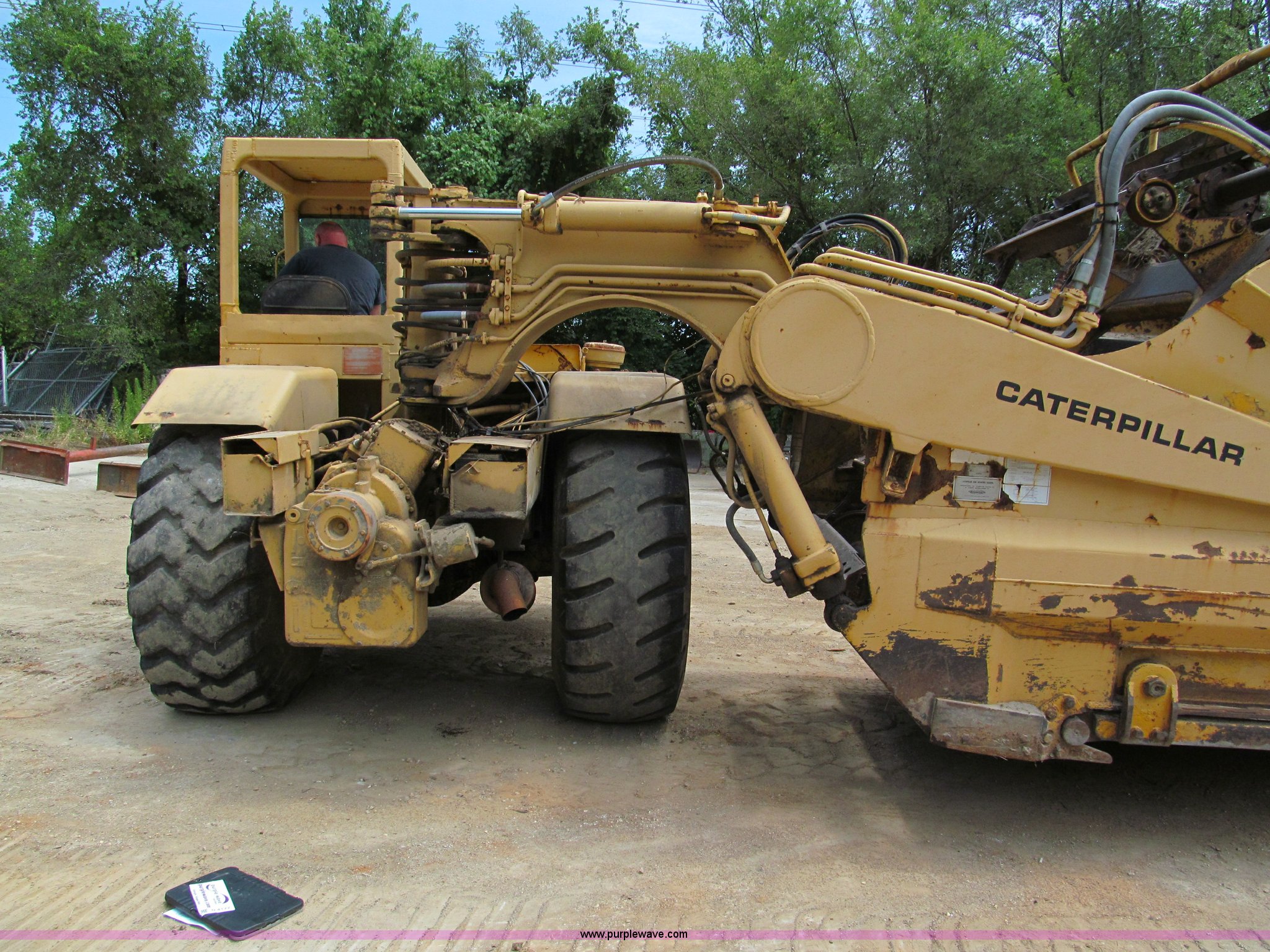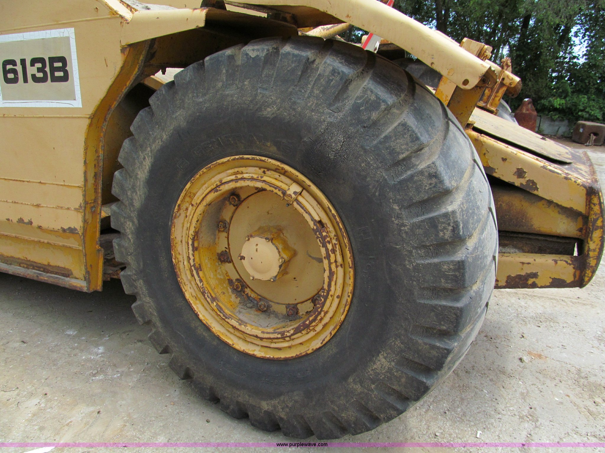 Purple Wave is selling a used Elevating Scraper in Missouri. This item is a 1976 Caterpillar 613B elevating scraper with the following: 2,498 hours on meter, Caterpillar 3208 diesel engine, Rebuilt engine has less than 1,100 hours, Four speed transmission, Transmission and torque converter have less than 600 hours, ROPS Canopy, 23.5x25 tires, Cracked windshield, Model RM379, Serial 38W4292