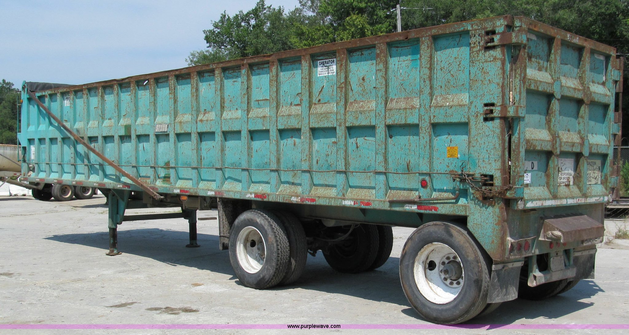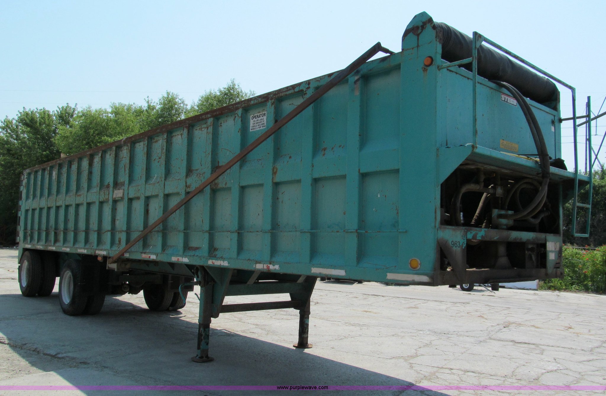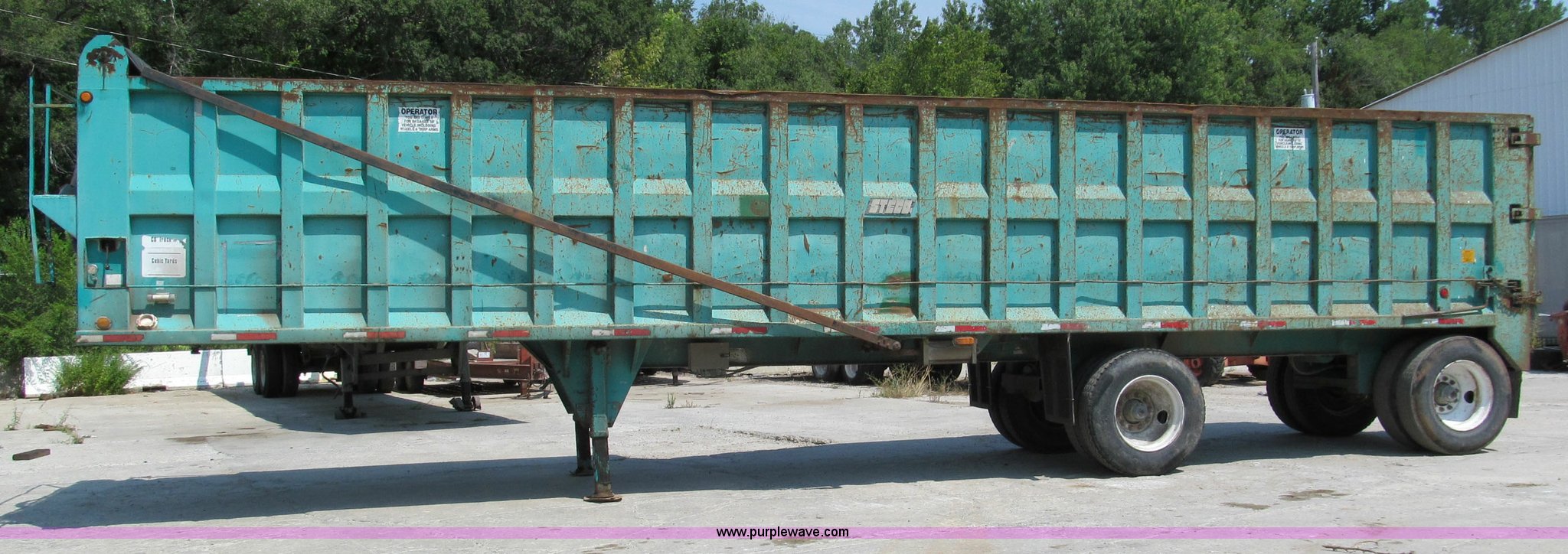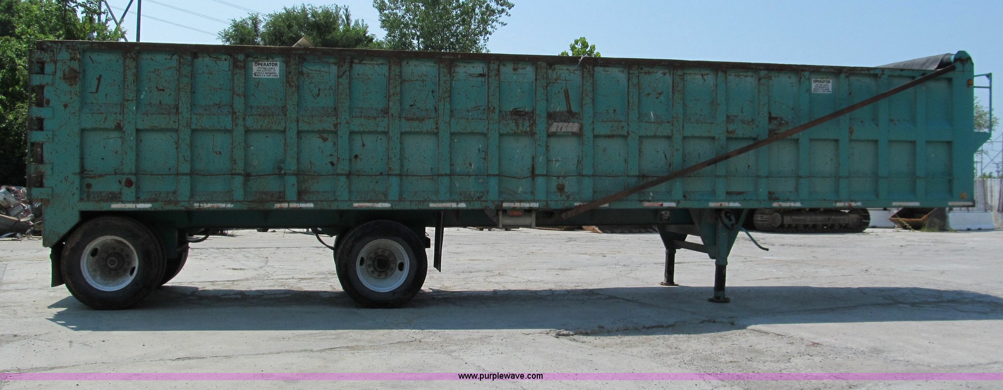 Purple Wave is selling a used End Dump Rock Trailer in Missouri. This item is a 1996 Steco 40' ejector trailer with the following: Air ride suspension, Air operated tarp, Air brakes, Single swing door, On-board hydraulic tank, 110 gallon capacity, Front catwalk, Two speed landing gear, Front axle is a lift axle, Spread axle, Dual 25,000 lb axles, Steel wheels, 11R24.5 tires, GVWR 80,000 lbs, Model SE04072, Contents will be removed