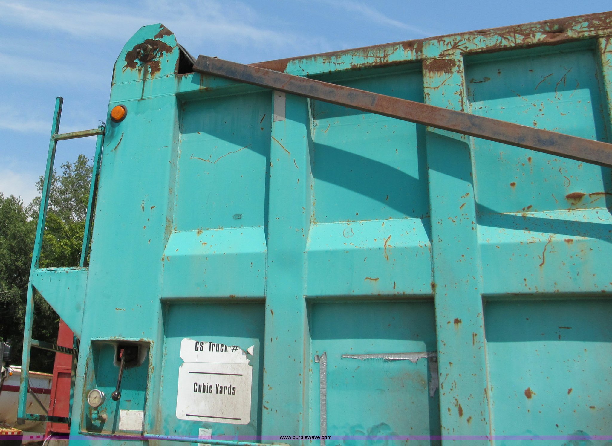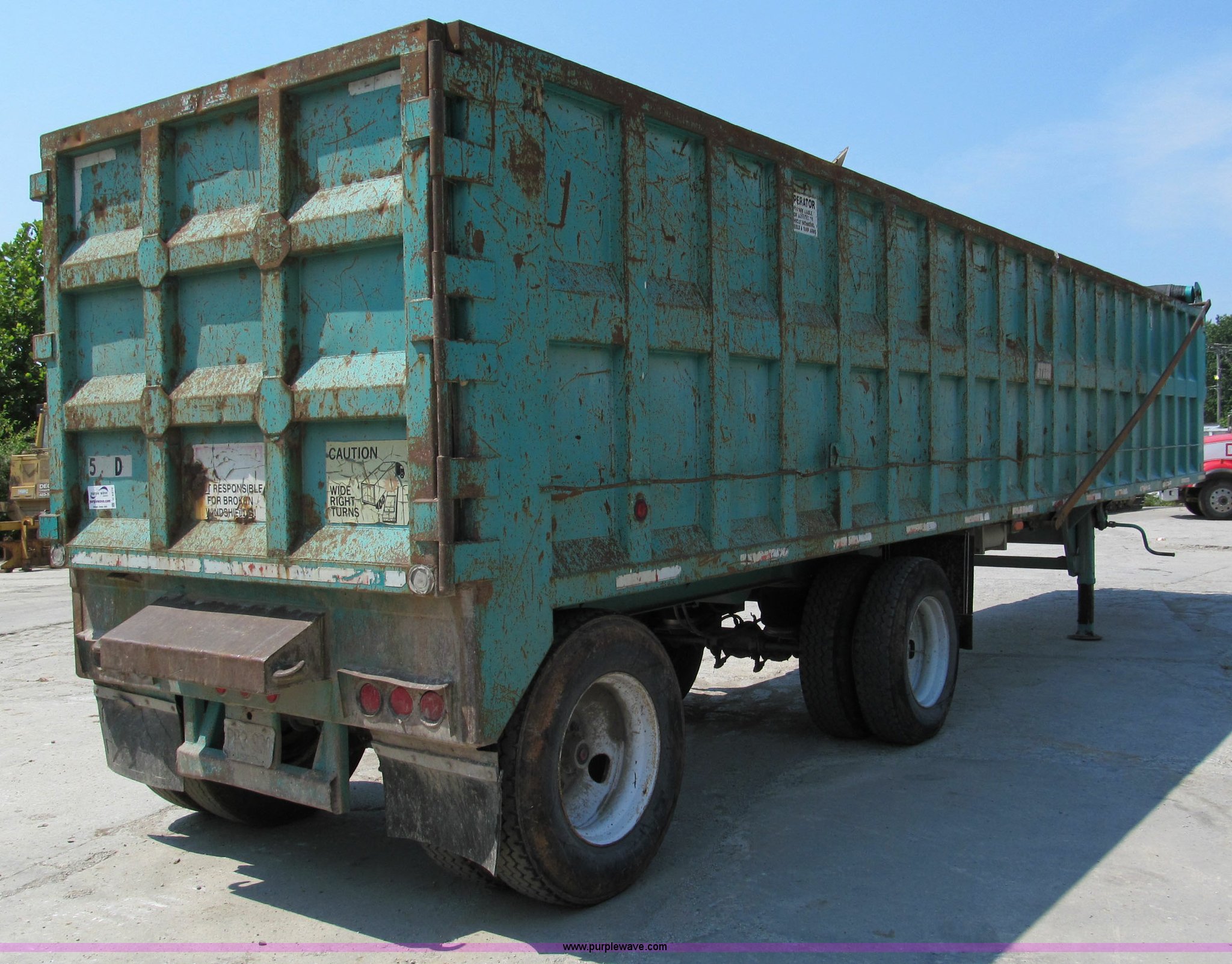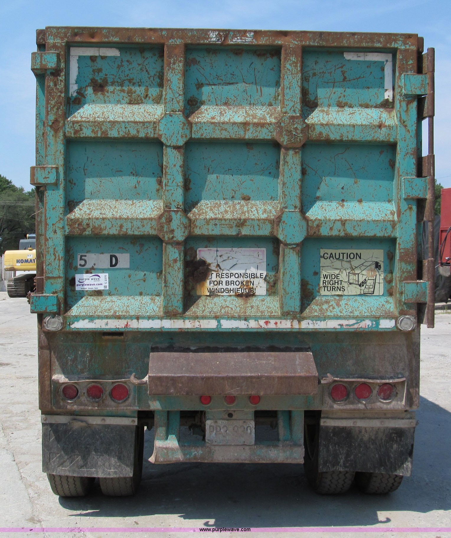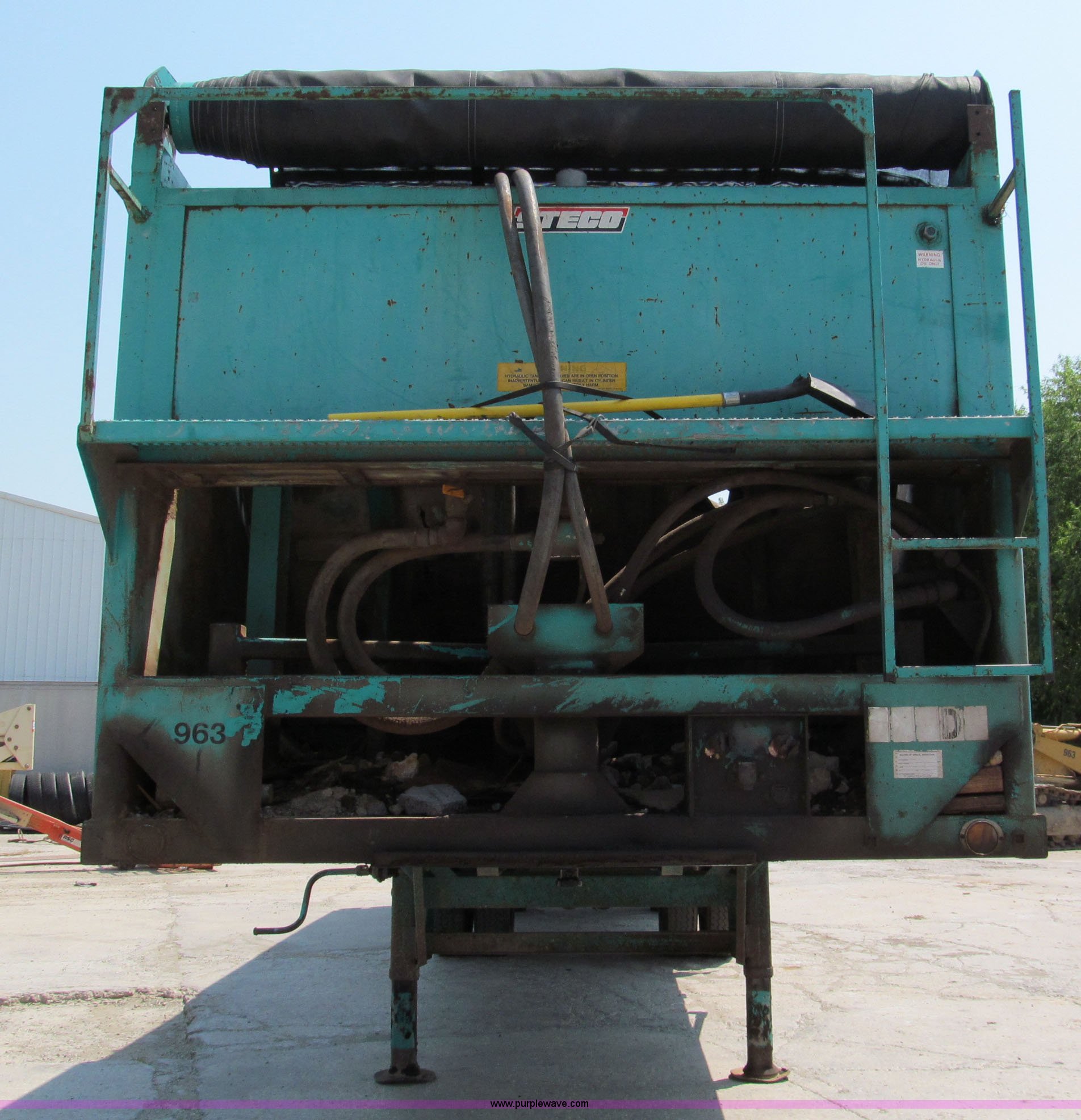 Purple Wave is selling a used End Dump Rock Trailer in Missouri. This item is a 1996 Steco 40' ejector trailer with the following: Air ride suspension, Air operated tarp, Air brakes, Single swing door, On-board hydraulic tank, 110 gallon capacity, Front catwalk, Two speed landing gear, Front axle is a lift axle, Spread axle, Dual 25,000 lb axles, Steel wheels, 11R24.5 tires, GVWR 80,000 lbs, Model SE04072, Contents will be removed