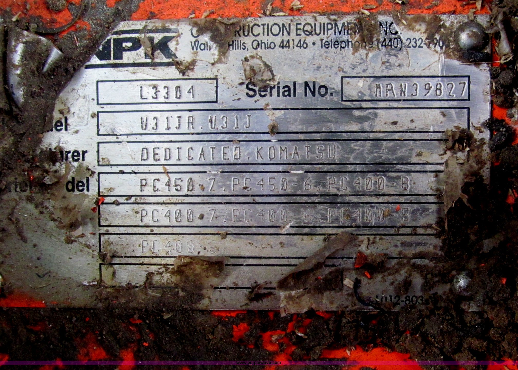 NPK U31JR concrete crusher. Hydraulic rotate, 130 ton crushing force, 8,000 lbs. base operating weight, Rebuilt hydraulic in July 2012, Recently replaced shear plates, Recently replaced hard surfacing, Fits Komatsu PC400 and PC450 excavators, Serial MAN39827. Shipping quotes available. Deco Company Shop. 3801 N Arlington. Kansas City, MO 64161