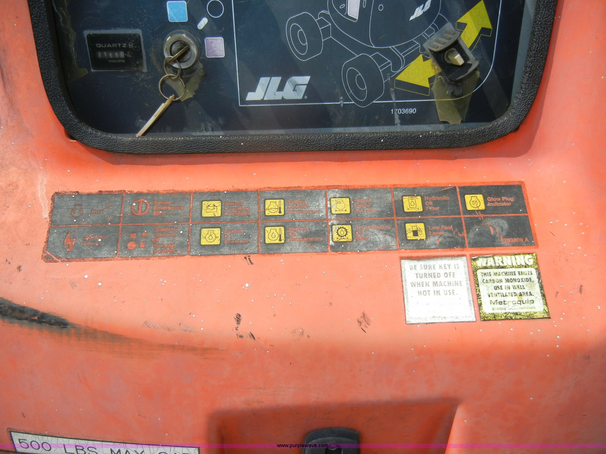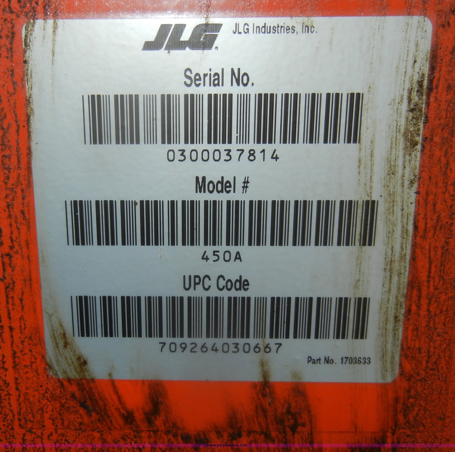 Purple Wave is selling a used Boom Lift in Missouri. This item is a 1998 JLG 45' articulating boom lift with the following: 2,159 hours on meter, Ford four cylinder propane or gas engine, Model LRG425I-6007-Z, Serial 03-09-060636, Four wheel drive, Upper and lower controls, 45' maximum platform height, 23' up and over horizontal reach, 500 lb maximum capacity, 30 percent grade-ability, 30" x 72" platform, Power to platform, 12-16.5 tires, 10 ply, Serial 0752950300037814