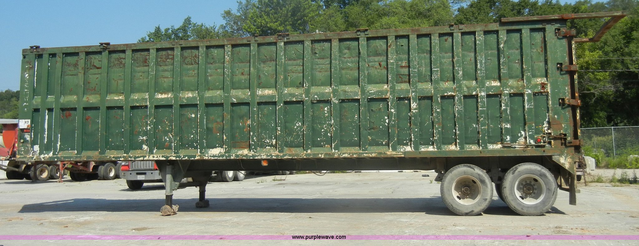 Purple Wave is selling a used End Dump Rock Trailer in Missouri. This item is a 1993 Steco 41' ejector trailer with the following: Model SE041102, Double wall bed, Spring suspension, Air brakes, Two speed landing gear, Single swinging rear door, Steel wheels, 11R22.5 tires, GVWR 80,000 lbs, Slide cylinder has been removed, Does not eject