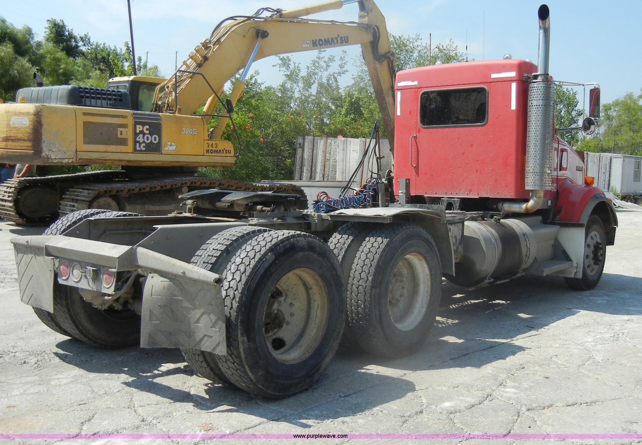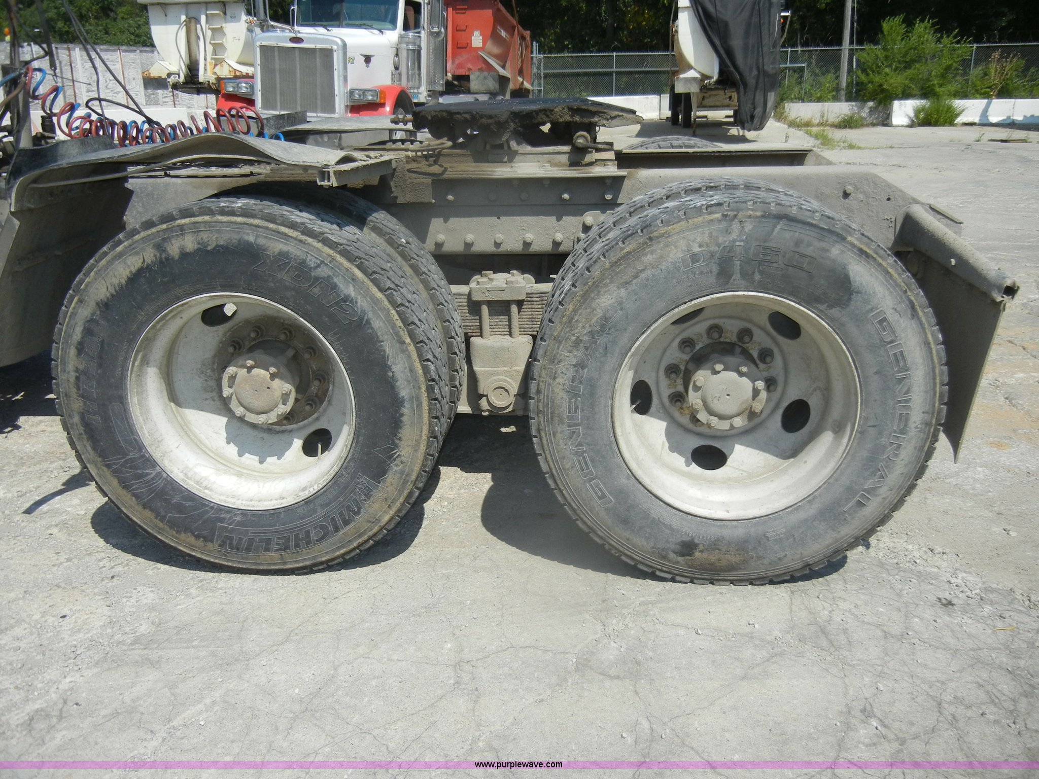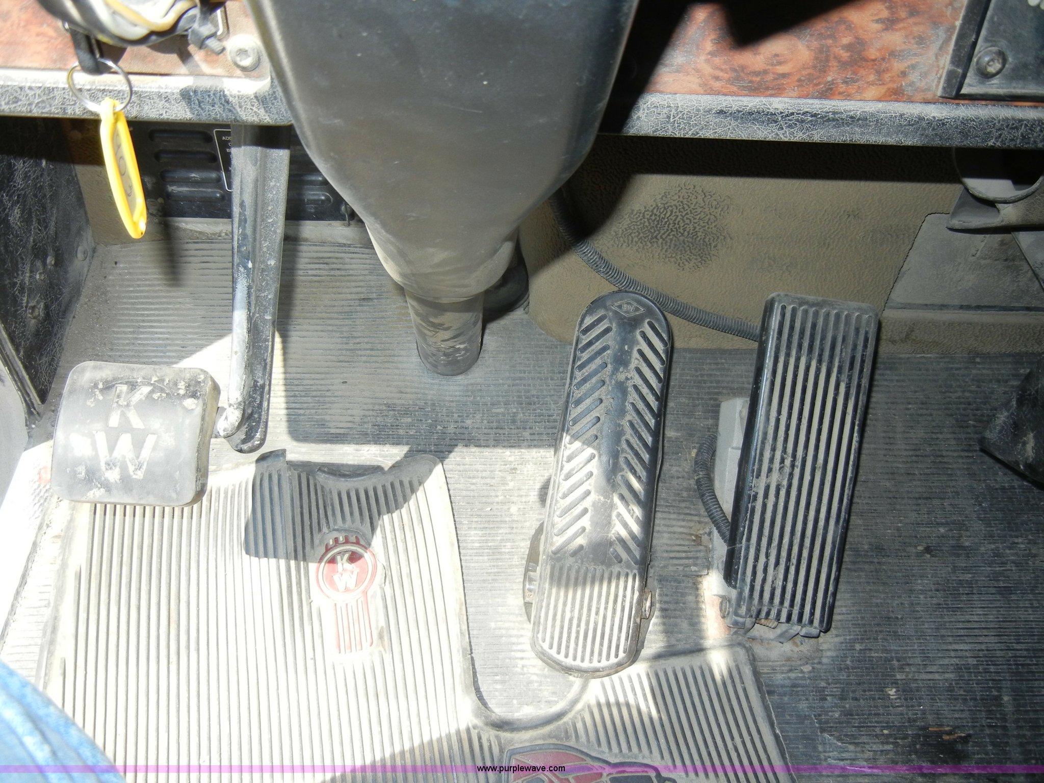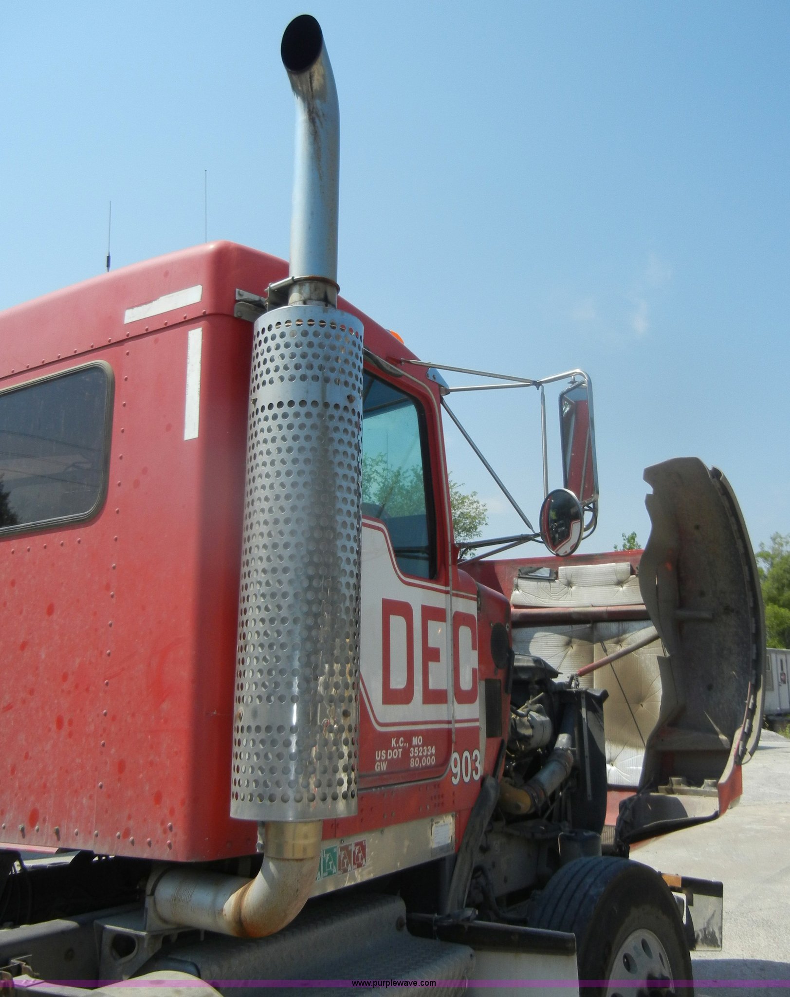 Purple Wave is selling a used Truck Tractor in Missouri. This item is a 2000 Kenworth T800 semi truck with the following: 387,129 miles on odometer, Caterpillar C15 turbo diesel engine, 475 HP, 10 speed manual transmission, Twin screw, AC and heat, Tilt, Cruise, AM/FM/Cassette, Air suspension seat, Heated mirrors, Tinted back glass, Visor, Chrome bumper, Block heater, 80 gallon fuel tank, Single rear exhaust stack, Aluminum deck plate, PTO, Wet kit, Spring suspension, Air brakes, Jake brake, Hendrickson rear end, 4.33 gear ratio, 207" wheelbase, 11R22.5 front tires, 11R24.5 rear tires, GVWR 52,350 lbs, FAWR 12,350 lbs, IAWR 20,000 lbs, RAWR 20,000 lbs