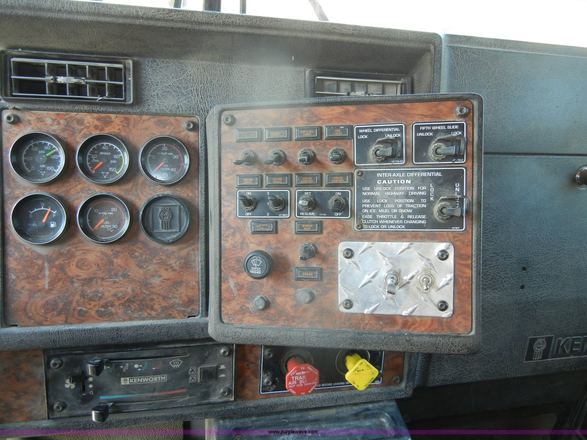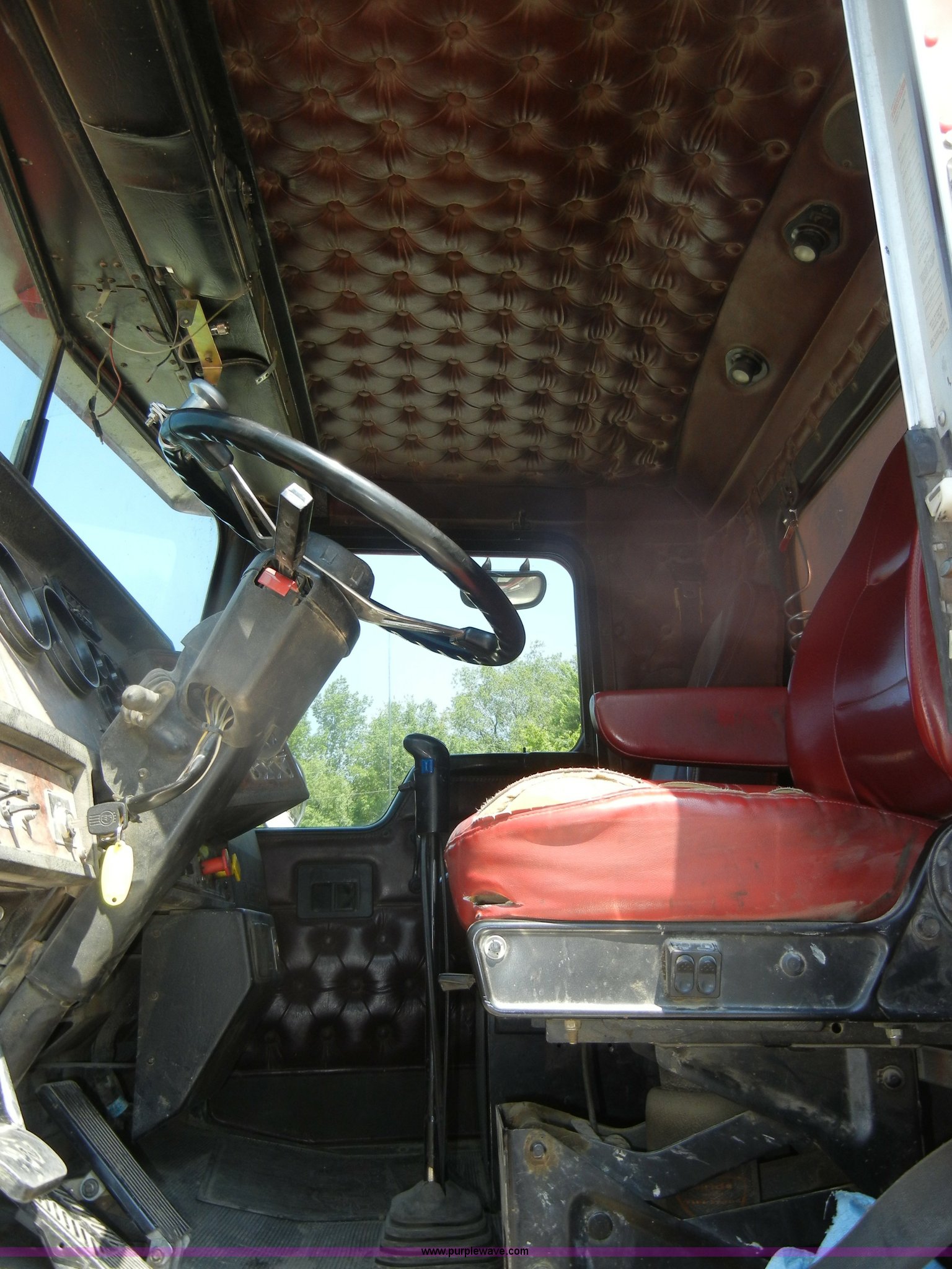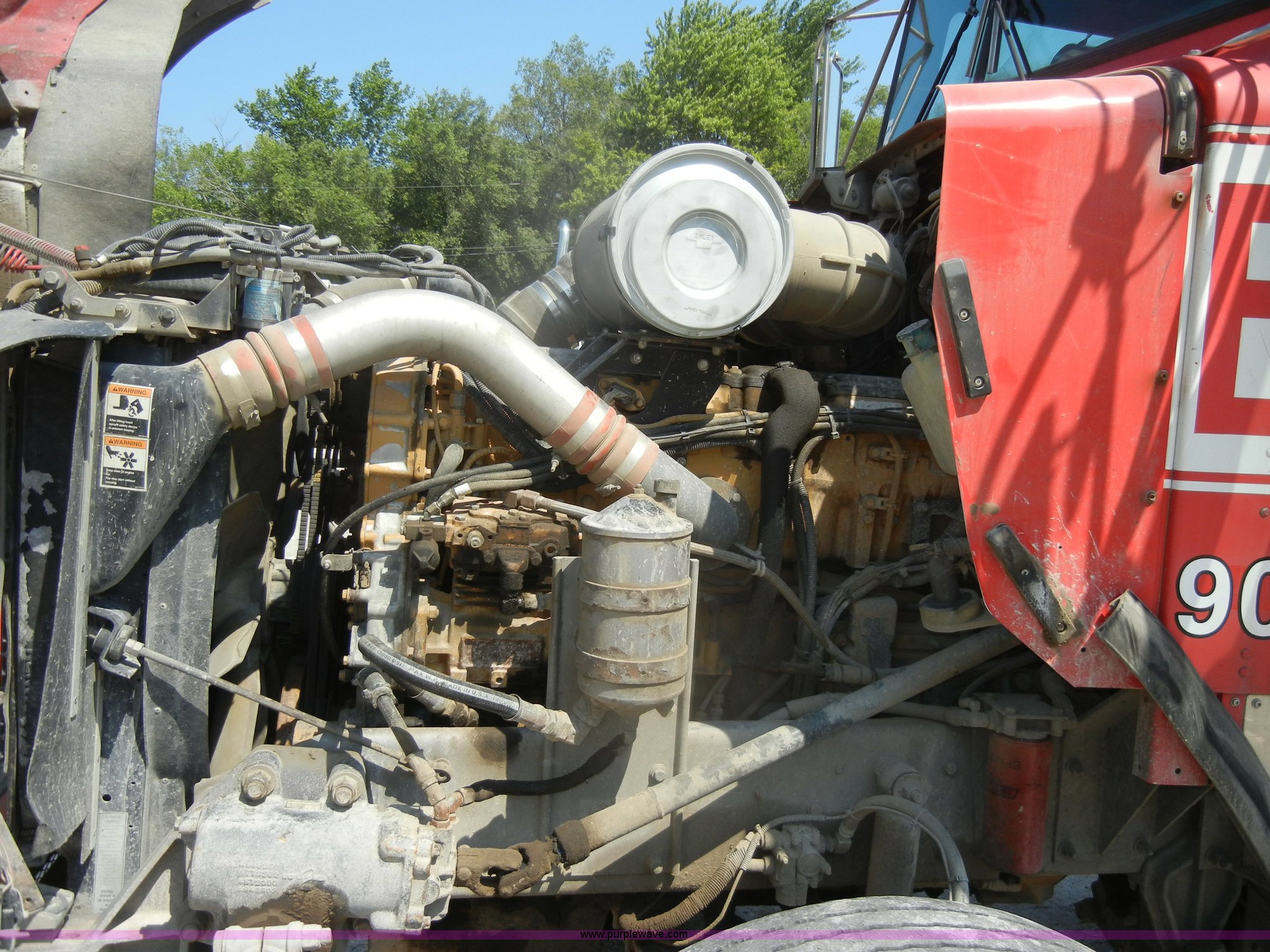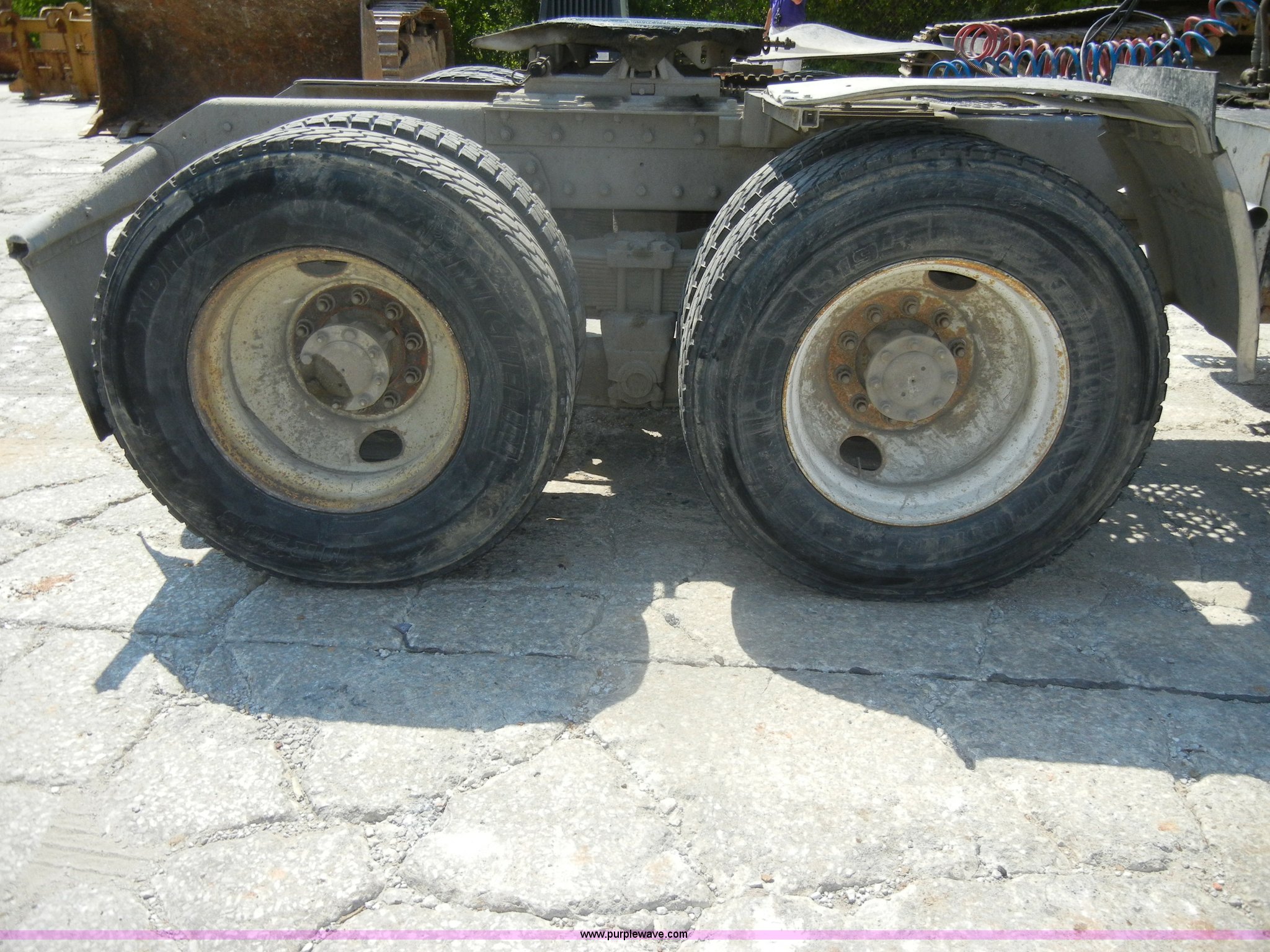 Purple Wave is selling a used Truck Tractor in Missouri. This item is a 2000 Kenworth T800 semi truck with the following: 387,129 miles on odometer, Caterpillar C15 turbo diesel engine, 475 HP, 10 speed manual transmission, Twin screw, AC and heat, Tilt, Cruise, AM/FM/Cassette, Air suspension seat, Heated mirrors, Tinted back glass, Visor, Chrome bumper, Block heater, 80 gallon fuel tank, Single rear exhaust stack, Aluminum deck plate, PTO, Wet kit, Spring suspension, Air brakes, Jake brake, Hendrickson rear end, 4.33 gear ratio, 207" wheelbase, 11R22.5 front tires, 11R24.5 rear tires, GVWR 52,350 lbs, FAWR 12,350 lbs, IAWR 20,000 lbs, RAWR 20,000 lbs