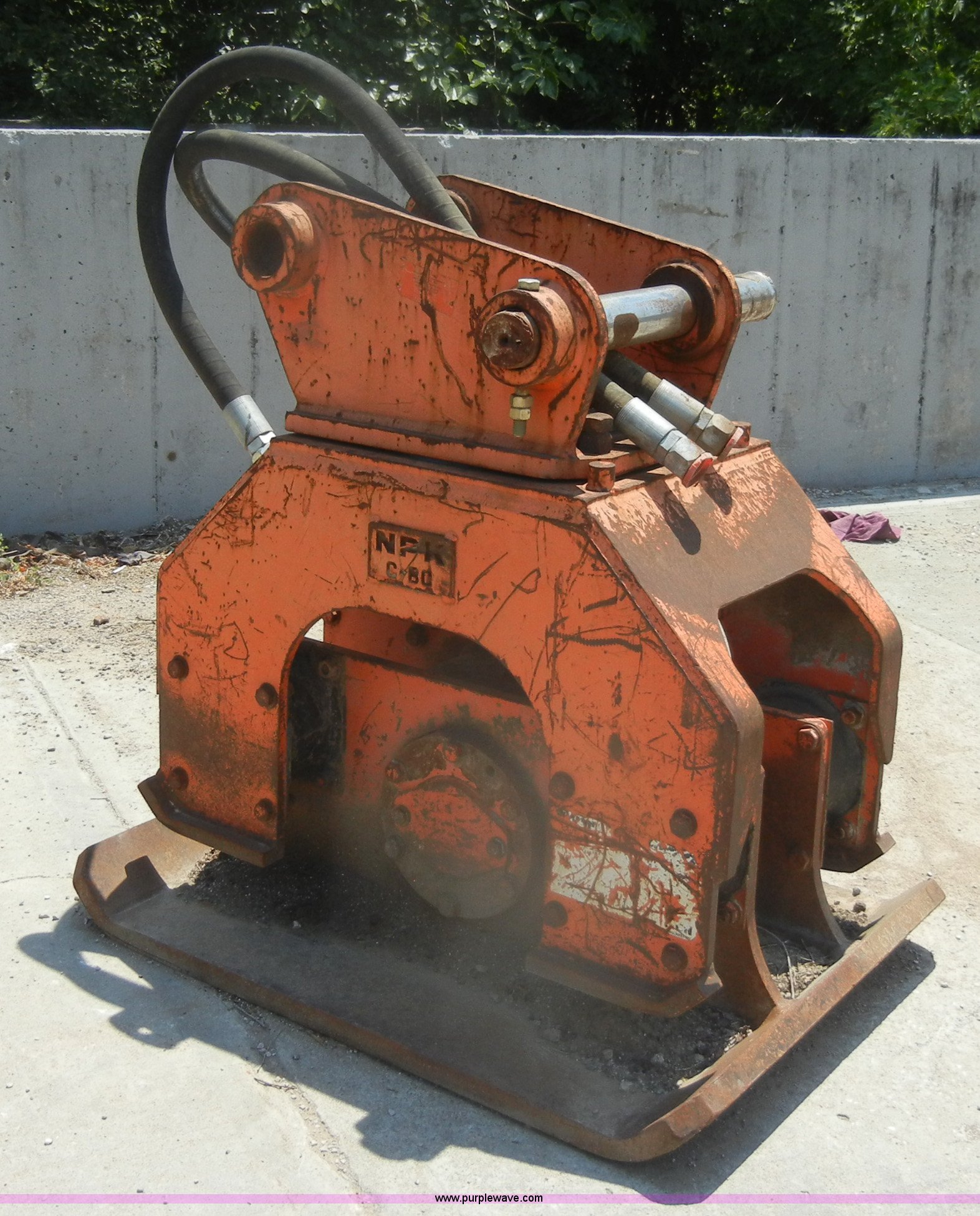 Purple Wave is selling a used Excavator Attach. in Missouri. This item is a NPK C8C hydraulic excavator ground compactor with the following: 34" x 48", 3 1/8" diameter pin hole, 15" from pin to pin, 13" inside to inside, Last used on Komatsu PC200, Serial 1N1316