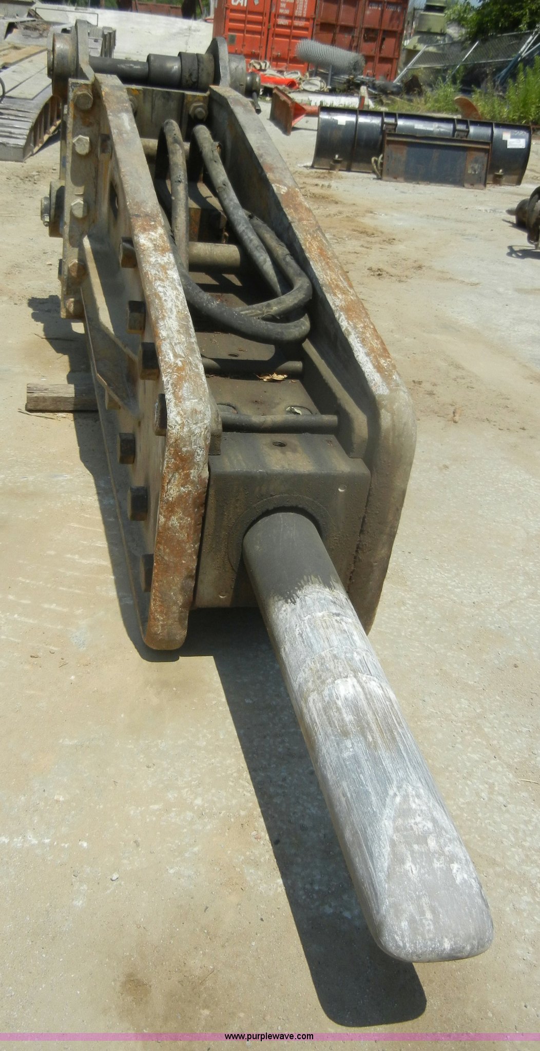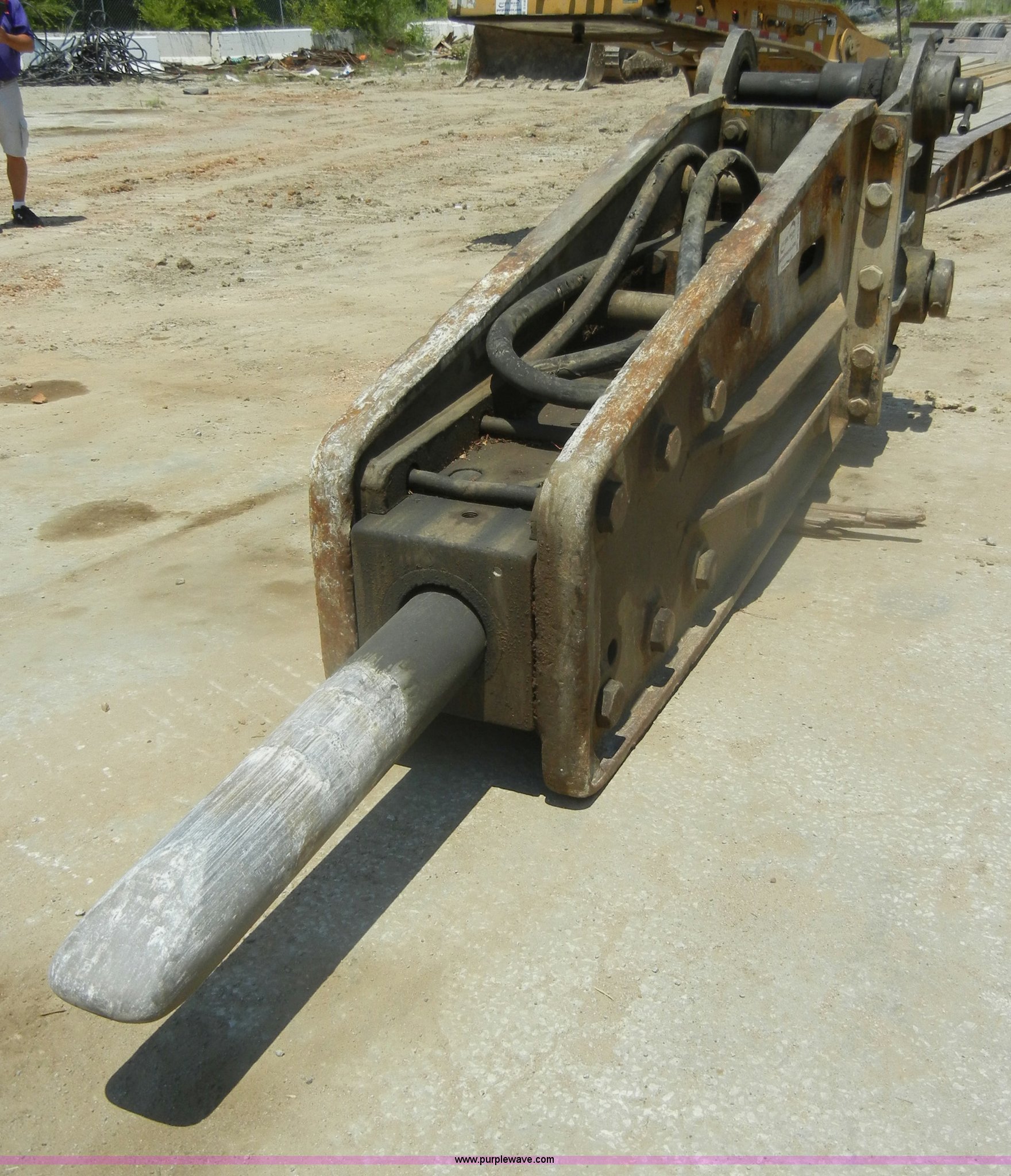 Purple Wave is selling a used Excavator Attach. in Missouri. This item is a Teledyne TB2080X hydraulic excavator breaker with the following: 6" diameter chisel tip bit, 4" diameter pins, 15" inside, Approx. 10,000 lbs, Rebuilt with new bit in Fall 2011, Fits Komatsu 400PC, Serial 980231