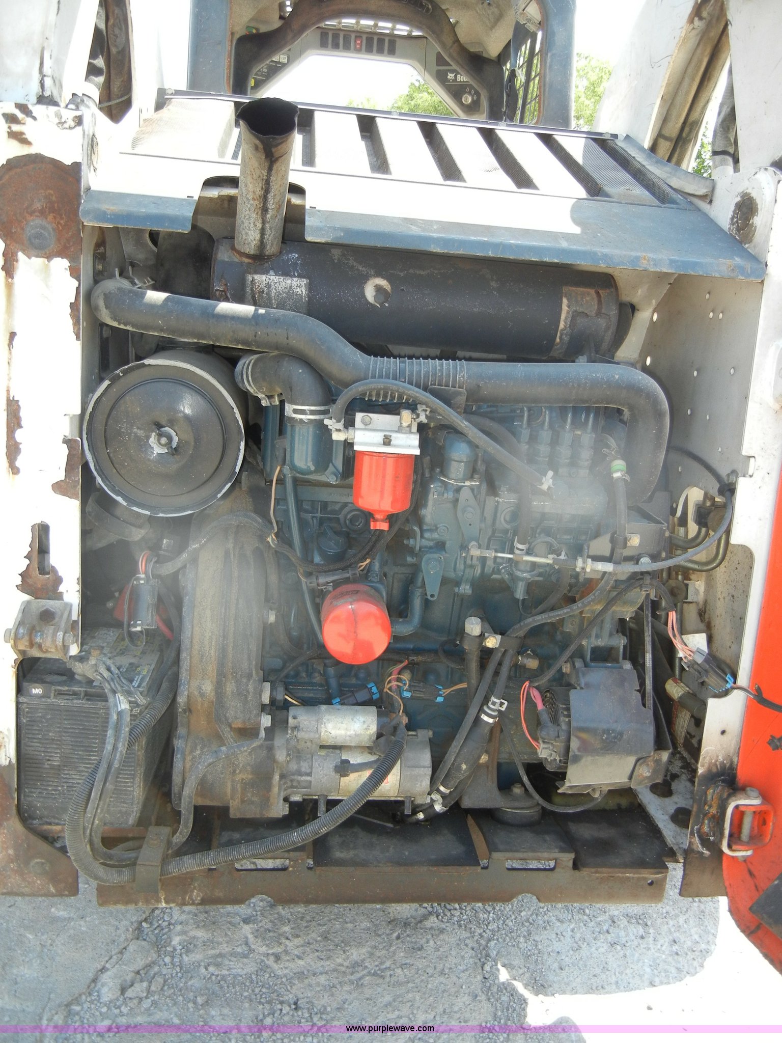 Purple Wave is selling a used Skid Steer Loader in Missouri. This item is a 2003 Bobcat S300 Turbo skid steer with the following: 2,639 hours on meter, Kubota 3.3L four cylinder turbo diesel engine, 81 HP, 67.5 KW, Model V3300T, Serial 3C1497, Two speed transmission, Auxiliary hydraulics, 78" toothed bucket, 3,000 lb capacity, 12x16.5 tires, 8,140 lbs. base operating weight, Bucket is cracked and has one missing tooth, Serial 521512697