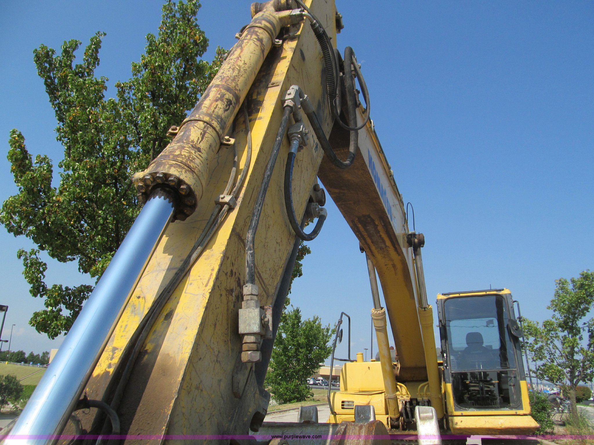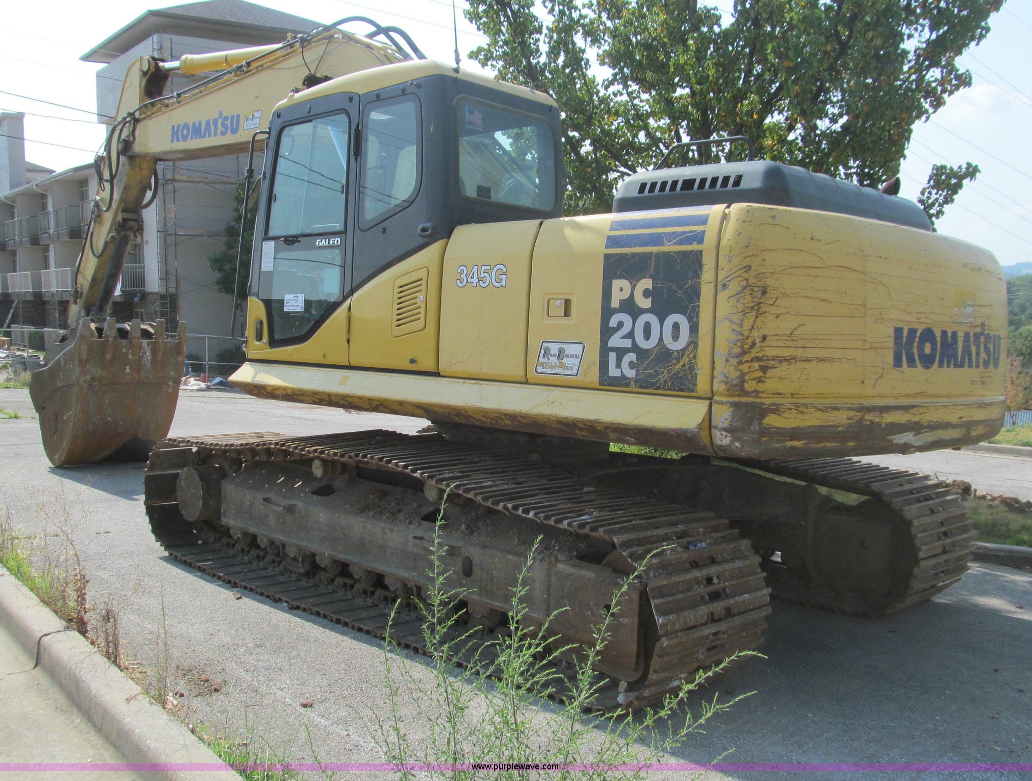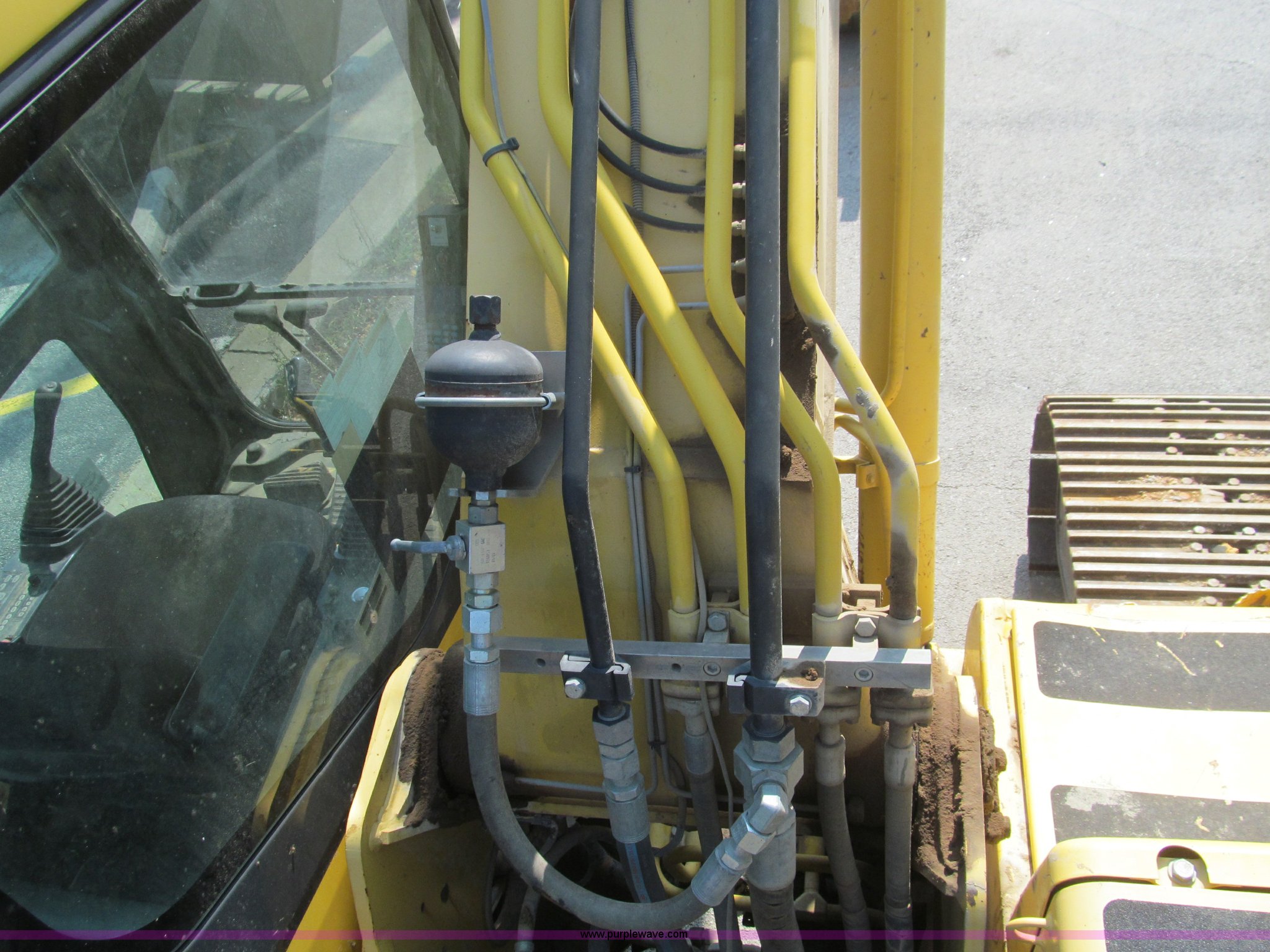 Purple Wave is selling a used Hydraulic Excavator in Missouri. This item is a 2001 Komatsu PC200LC excavator with the following: 6,564 hours on meter, Komatsu 5.9L diesel engine, Serial 46490393, Enclosed cab, AC, AM/FM, Suspension seat, 48" Esco heavy duty bucket, JRB hydraulic quick coupler, PSM hydraulic thumb, Hammer circuit auxiliary hydraulics, 8.5' stick, 19' boom reach, 31.5" TBG pads