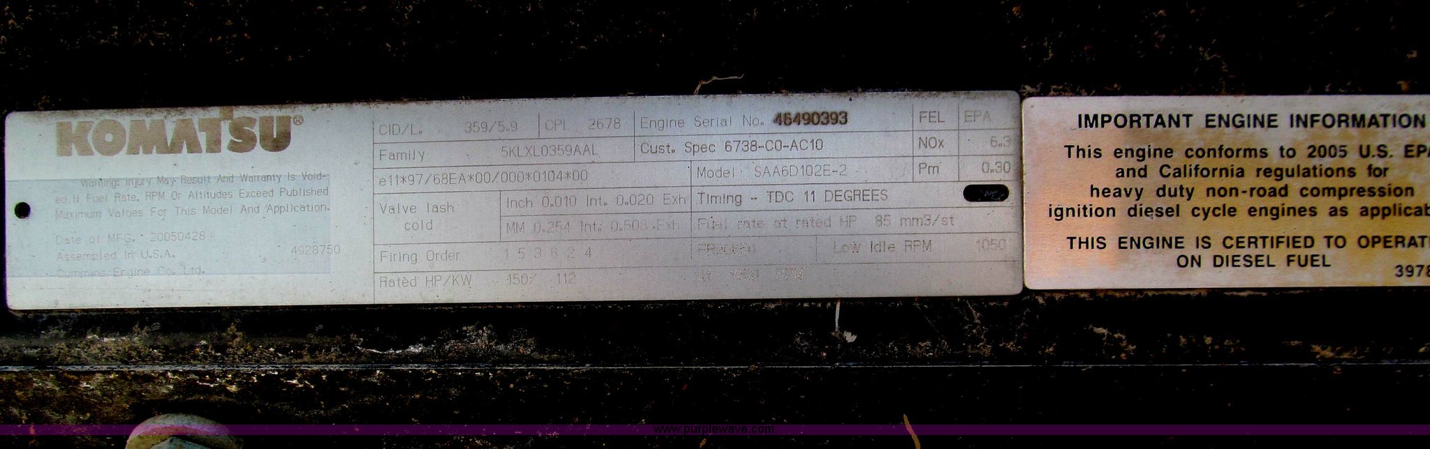 - Komatsu 5.9L diesel engine