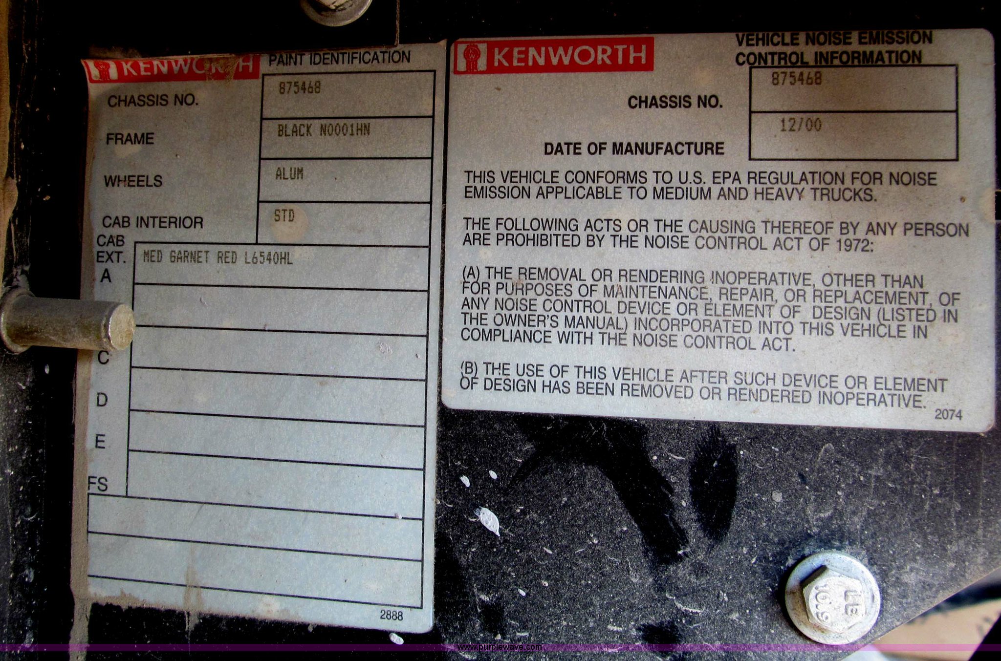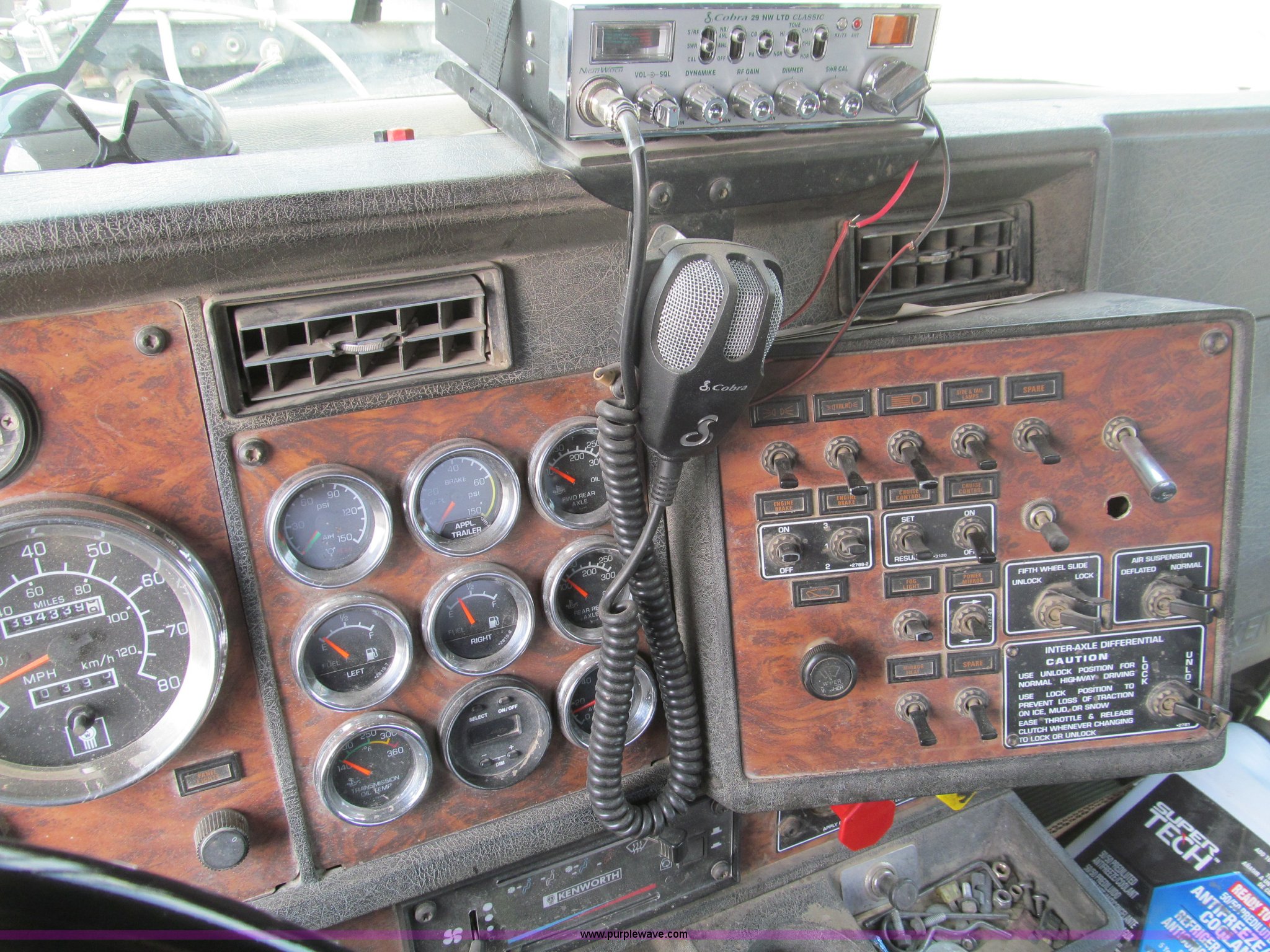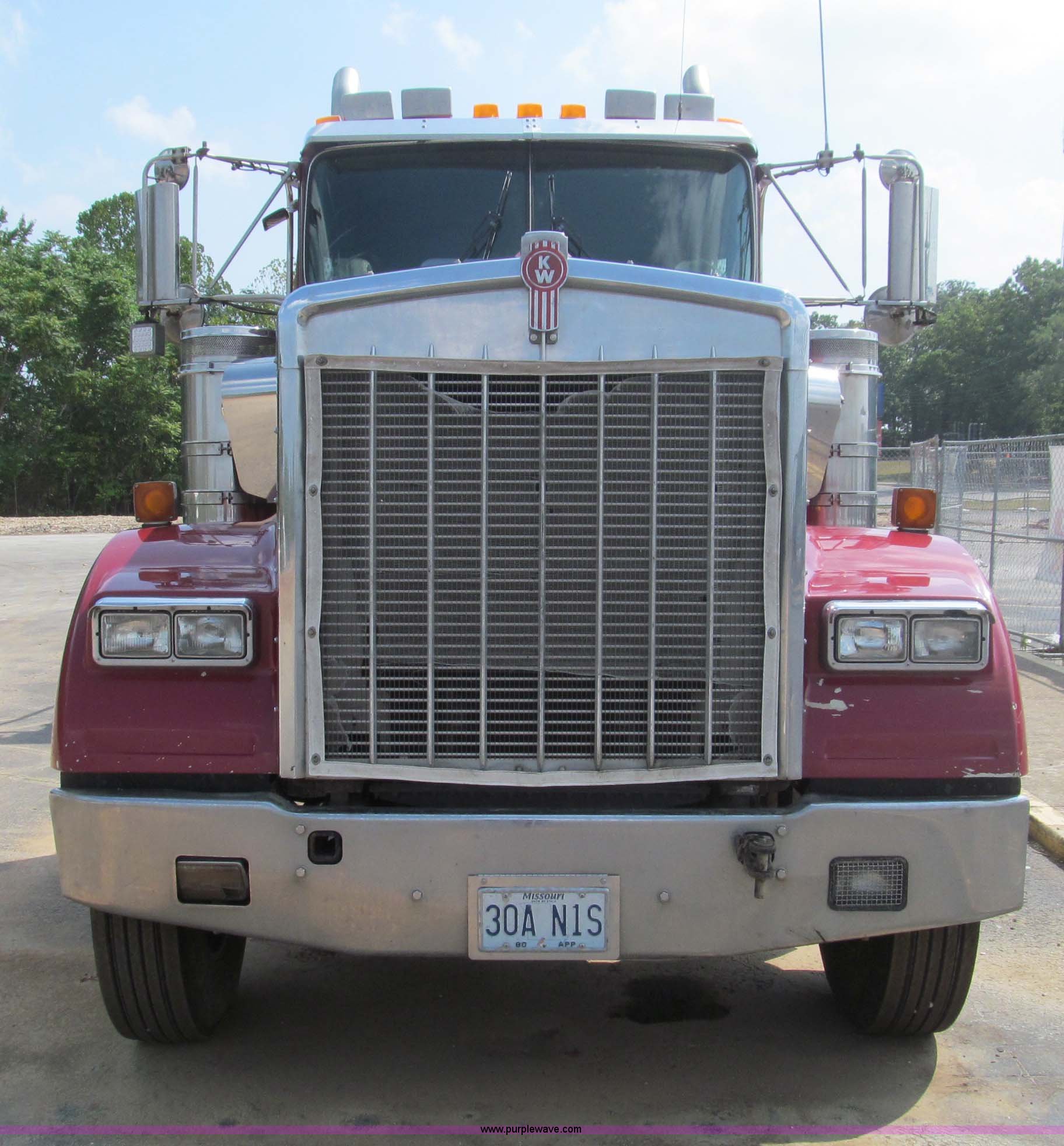 Purple Wave is selling a used Truck Tractor in Missouri. This item is a 2001 Kenworth W900 semi truck with the following: 394,339 miles on odometer, Caterpillar C15 diesel engine, 13 speed manual transmission, Model RTL016913A, Twin screw, AC and heat, Tilt, Cruise, AM/FM/Cassette, Passenger daylight door, Air suspension seat, Heated mirrors, Chrome visor, Chrome bumper, Block heater, Dual chrome breathers, Dual 100 gallon fuel tanks, Dual rear exhaust stacks, Aluminum deck plate, Plastic half fenders, PTO, Wet kit, Dump valves, Air suspension, Eight-bag air ride, Air brakes, Brake controller, 411 gear ratio, 222" wheelbase, Aluminum Bud wheels, 11R24.5 tires, GVWR 52,860 lbs, FAWR 12,000 lbs, IAWR 20,000 lbs, RAWR 20,000 lbs, Equip# 901