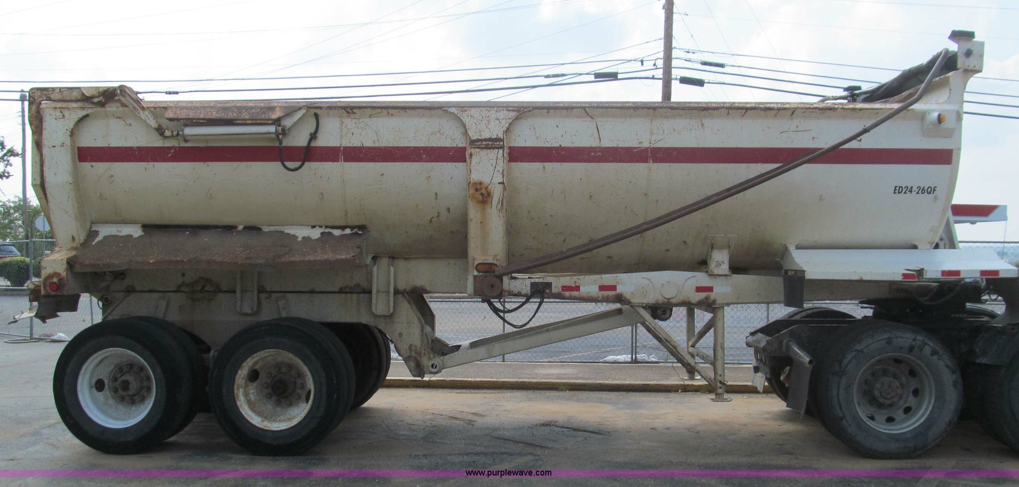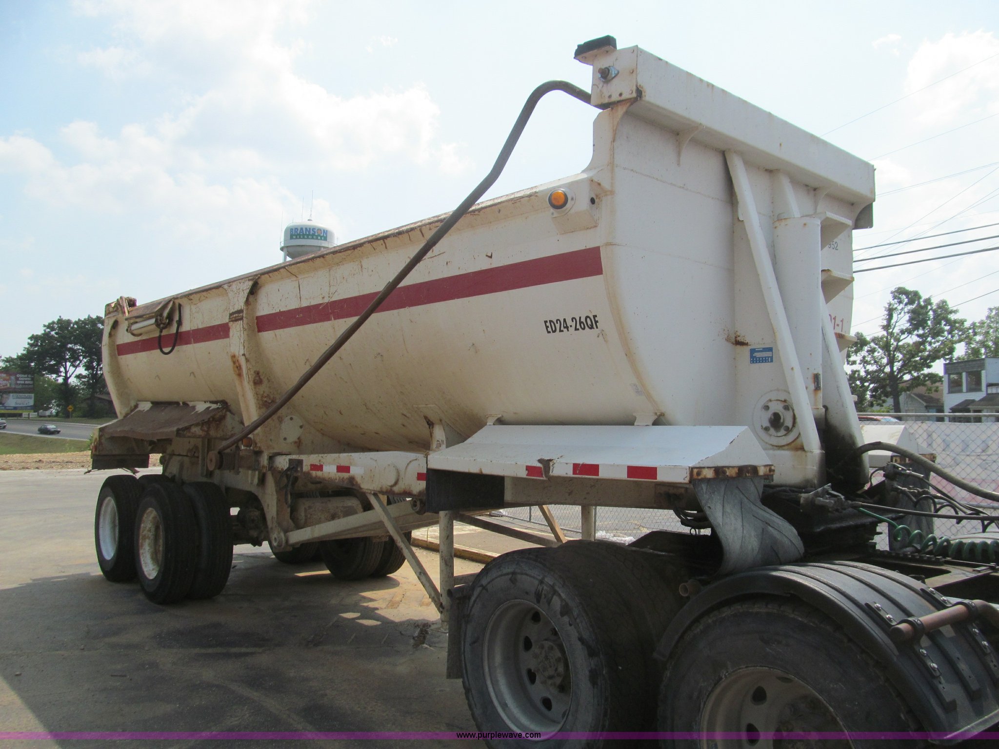 2001 Ranch quarter frame steel barrel end dump trailer. Electric tarp, Air operated tailgate, Spring suspension, 11R24.5 tires, 20,000 lb axles, GVWR 70,000 lbs, Model ED24-26QF. 1R9ES75061L008326. Shipping quotes available. Deco Company Shop. 3801 N Arlington. Kansas City, MO 64161
