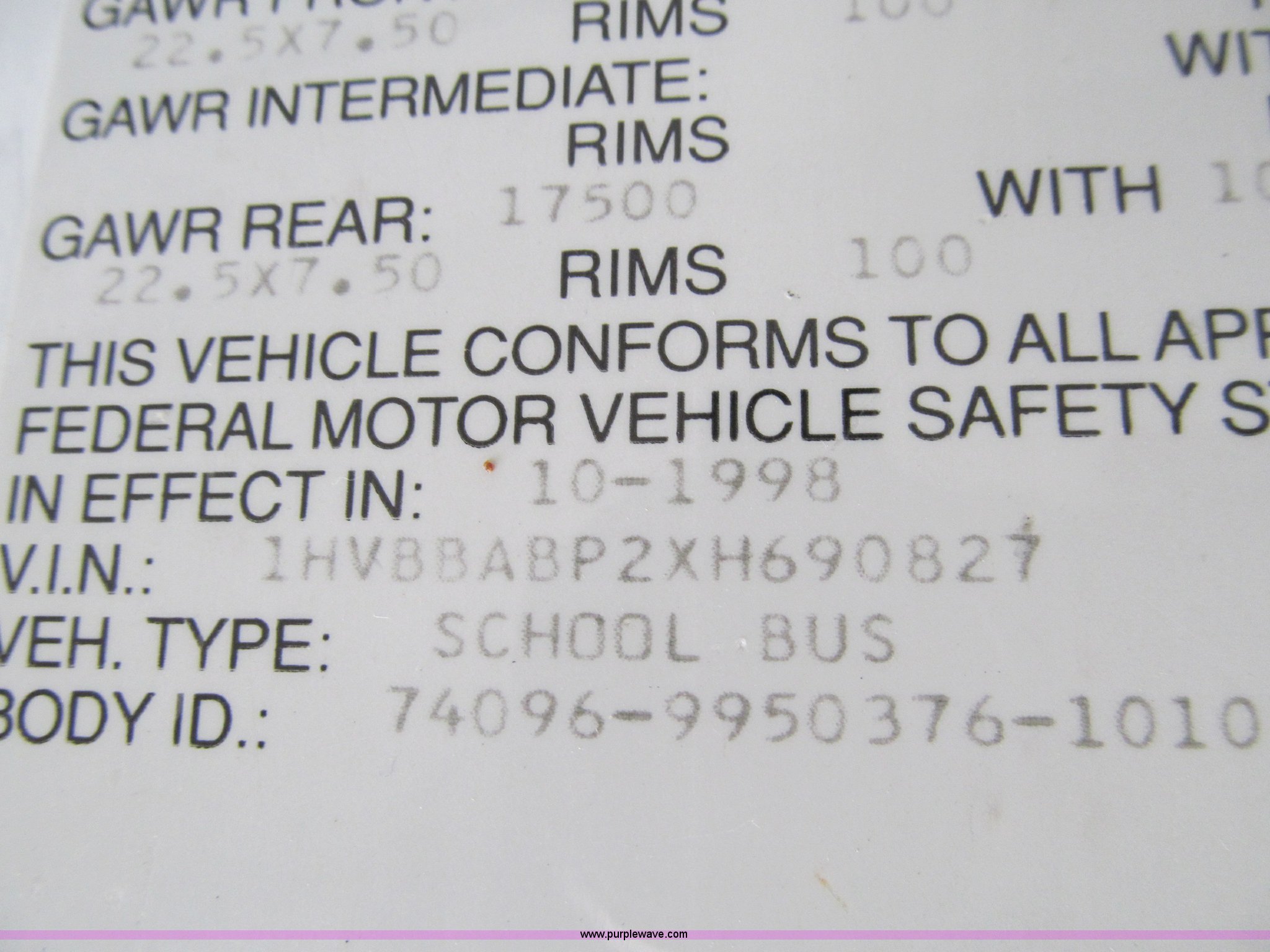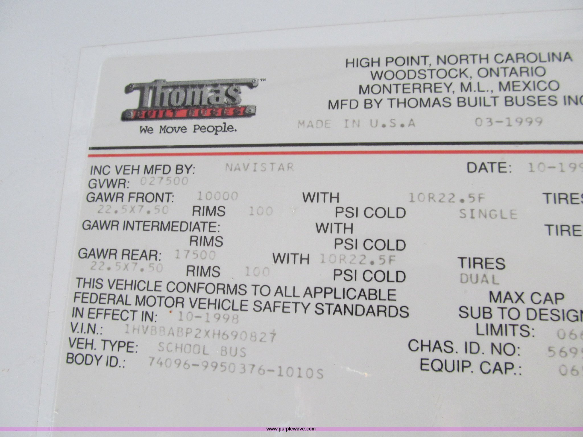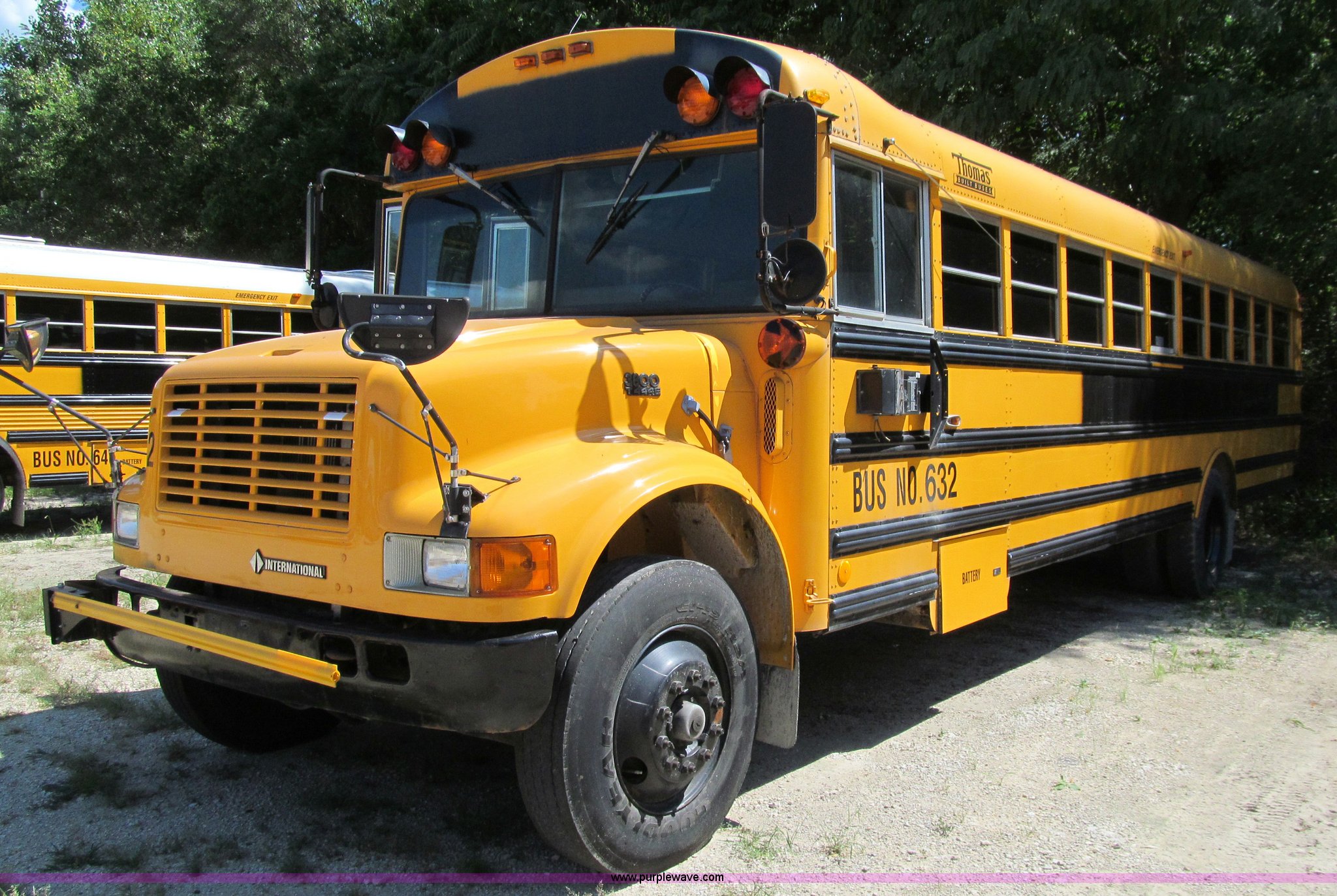 Purple Wave is selling a used Bus in Iowa. This item is a 2000 International Navistar 3800 school bus with the following: 138,127 miles on odometer, 65 passenger, International T444E 7.3L V8 diesel engine, Automatic transmission, Heat, Cruise, AM/FM/Cassette, Cush-N-Aire drivers seat, Manual windows, Vinyl interior, (5) emergency egress, Thomas body, 254" wheelbase, 10R22.5 tires, GVWR 27,500 lbs, FAWR 17,500 lbs, RAWR 10,000 lbs, Unit# 632