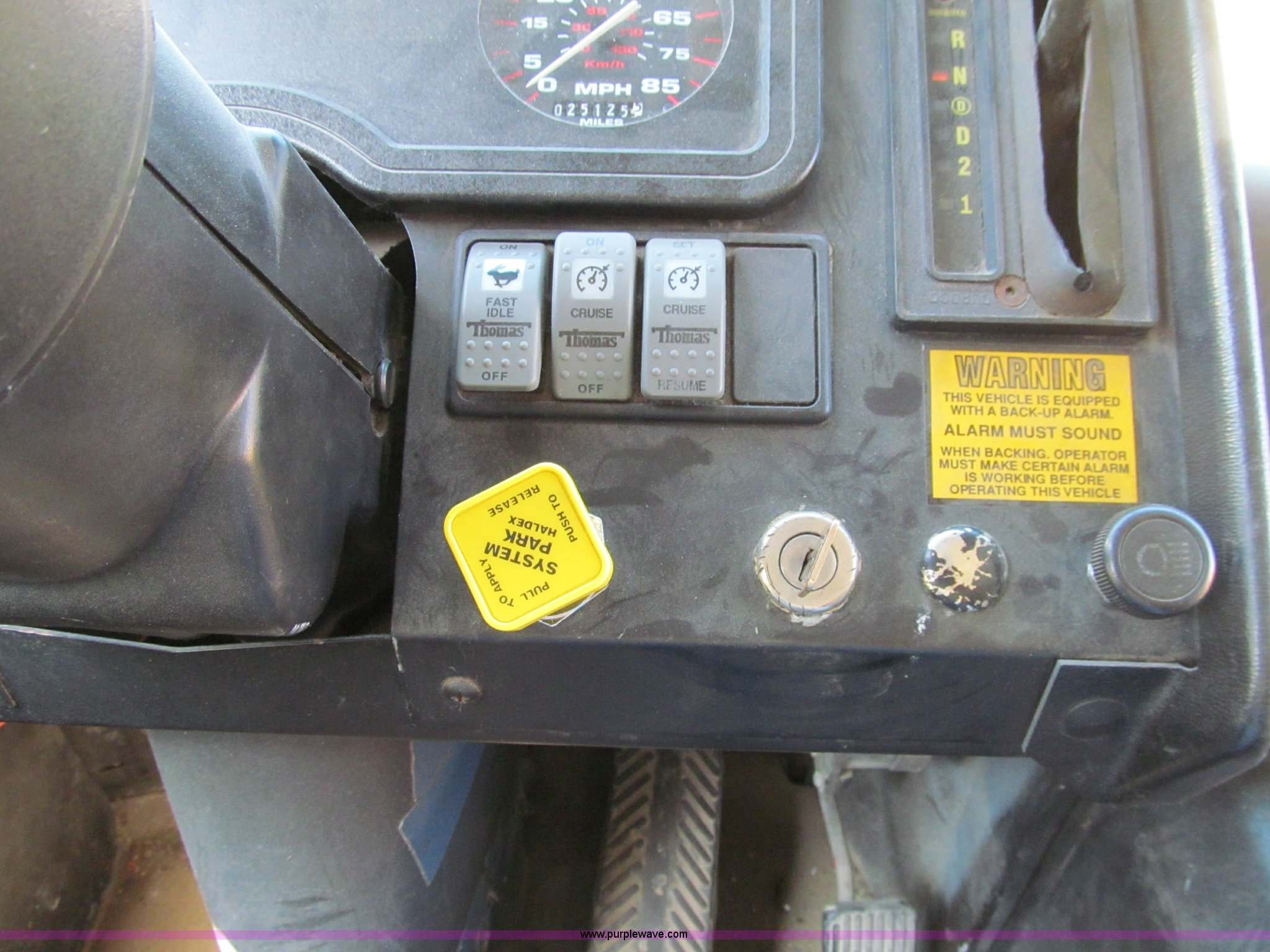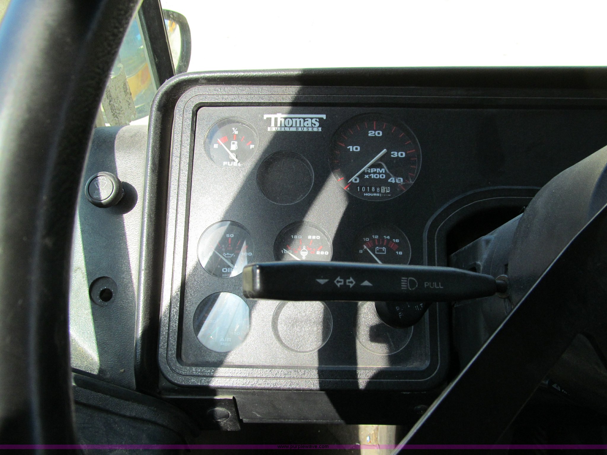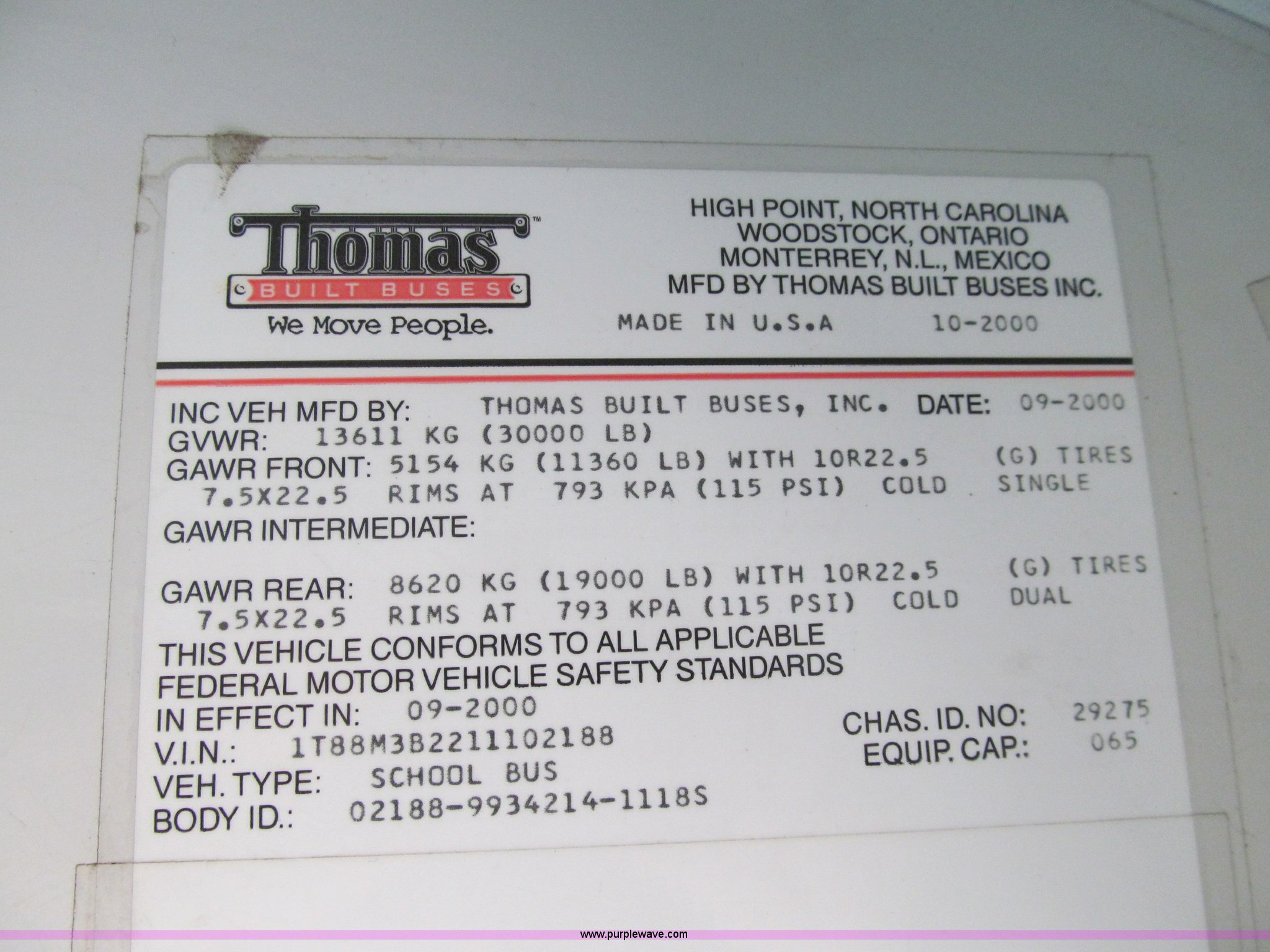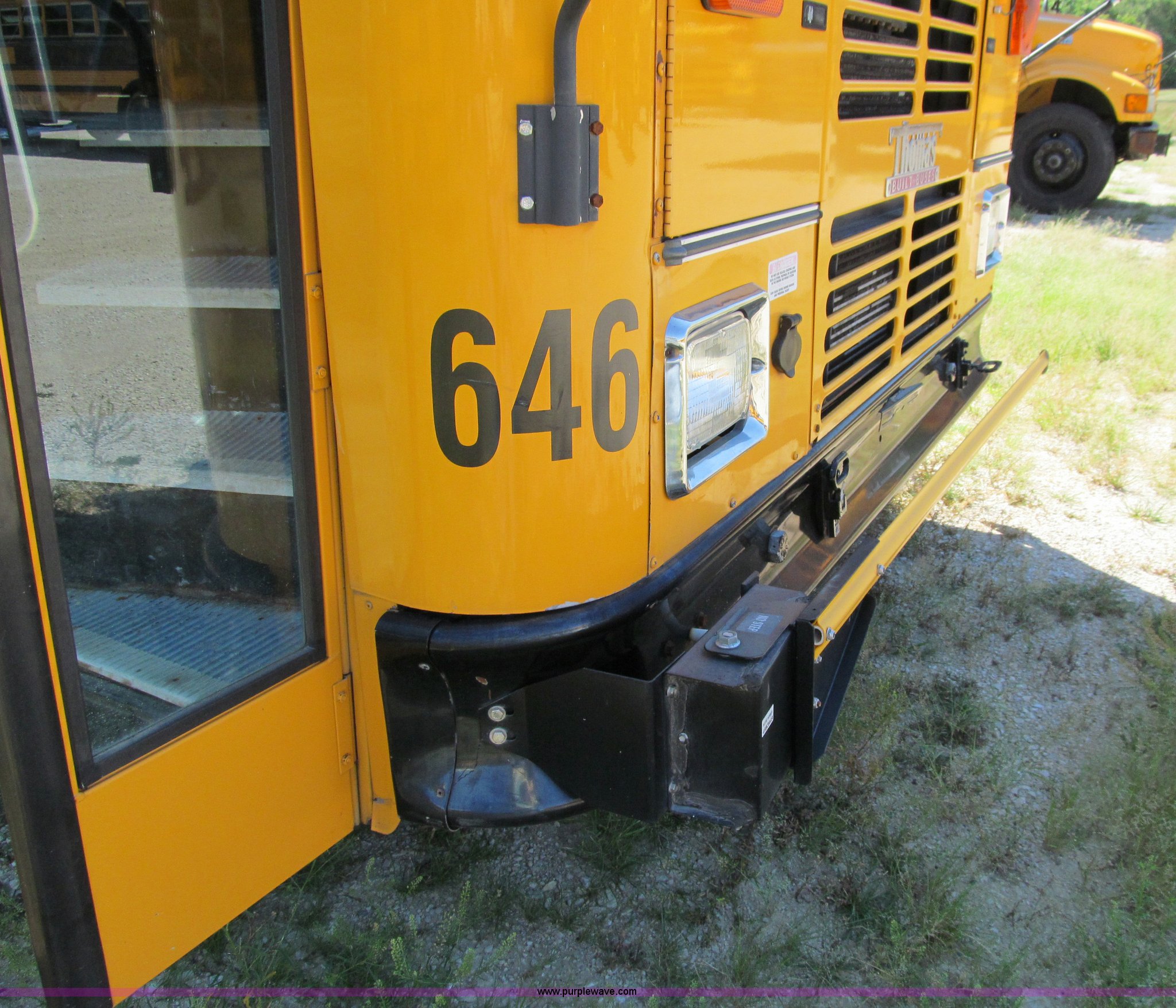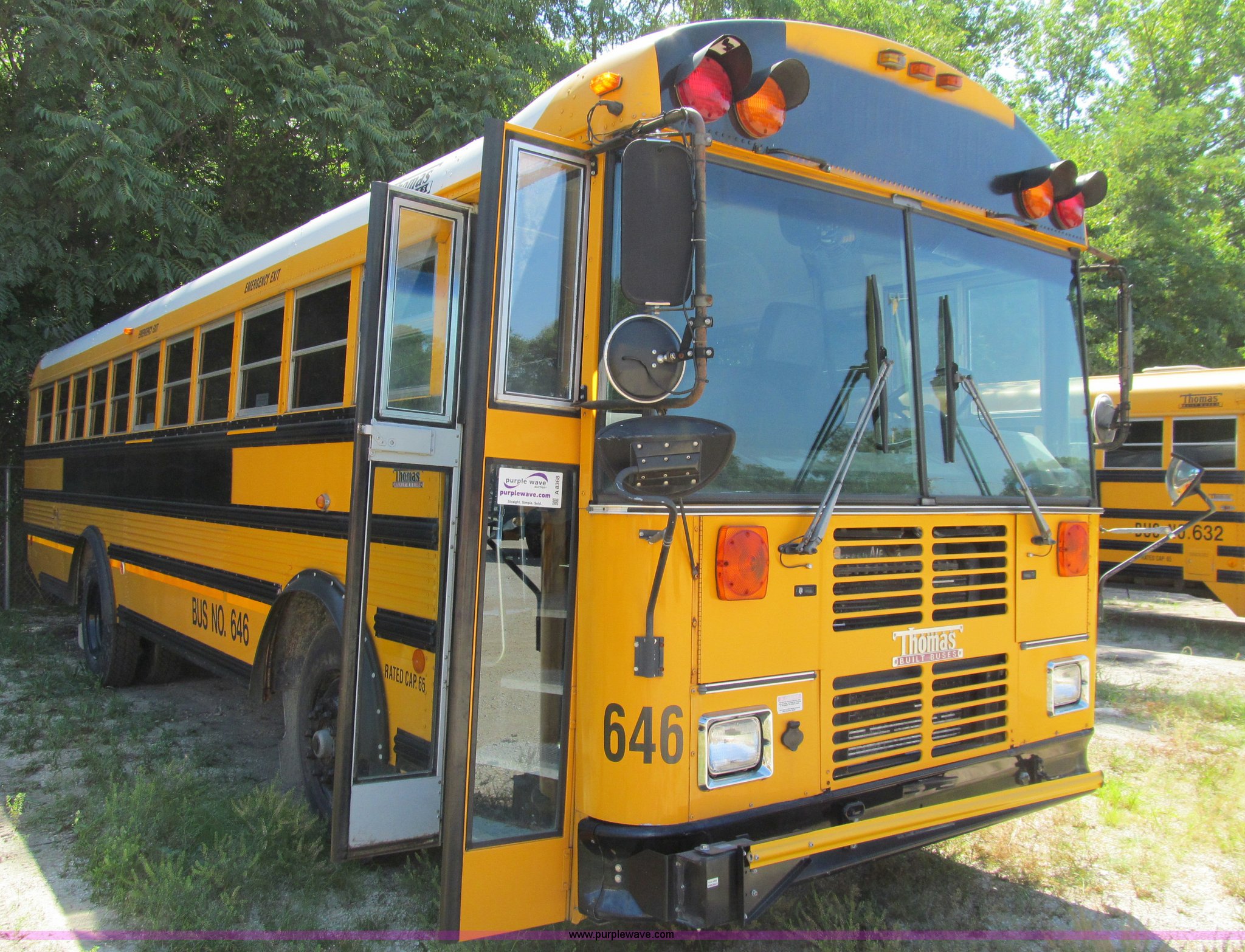 Purple Wave is selling a used Bus in Iowa. This item is a 2001 Thomas Built Saf-T-Liner school bus with the following: 25,125 miles on odometer, 116,689 total miles, 10,188 hours on meter, 65 passenger, Cummins EFISB210 six cylinder diesel engine, AD2000 automatic transmission, Heat, Tilt, Cruise, AM/FM/Cassette, Air drivers seat, Manual windows, Vinyl interior, (7) emergency egress, 172" wheelbase, 10R22.5 tires, GVWR 30,000 lbs, FAWR 11,360 lbs, RAWR 19,000 lbs, Video security system not included, Unit# 646