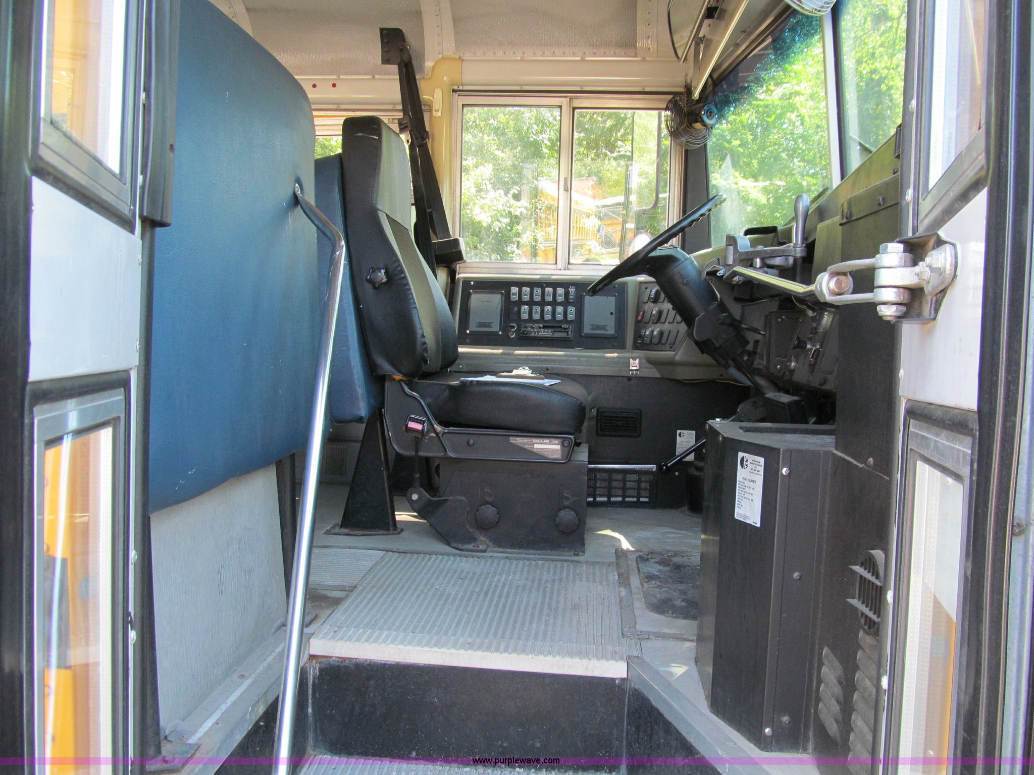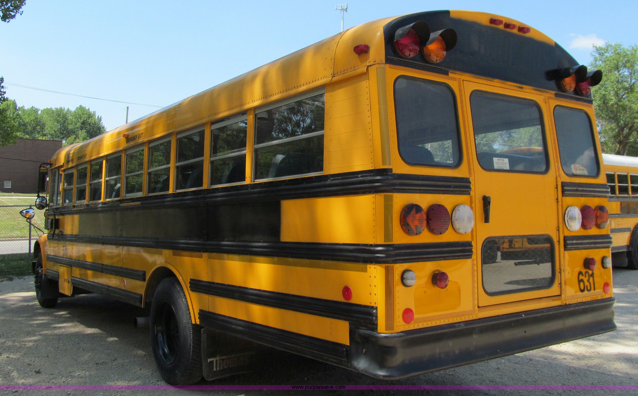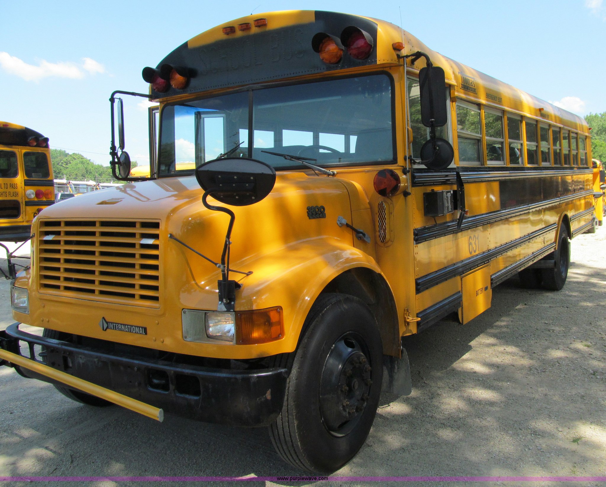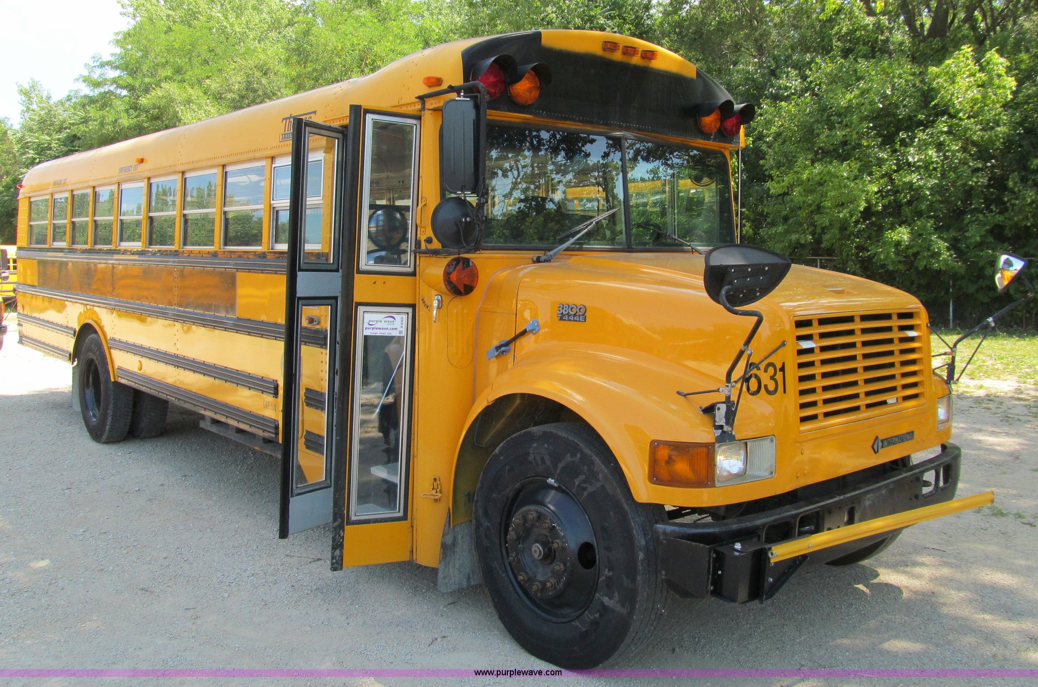 Purple Wave is selling a used Bus in Iowa. This item is a 2000 International Navistar 3800 school bus with the following: 130,478 miles on odometer, 10,519 hours on meter, 54 passenger, International T444E 7.3L V8 diesel engine, Automatic transmission, Heat, Tilt, Cruise, AM/FM/Cassette, Cush-N-Aire drivers seat, Manual windows, Vinyl interior, (7) emergency egress, Thomas body, 234" wheelbase, 10R22.5 tires, GVWR 25,500 lbs, FAWR 8,000 lbs, RAWR 17,500 lbs, Unit# 631