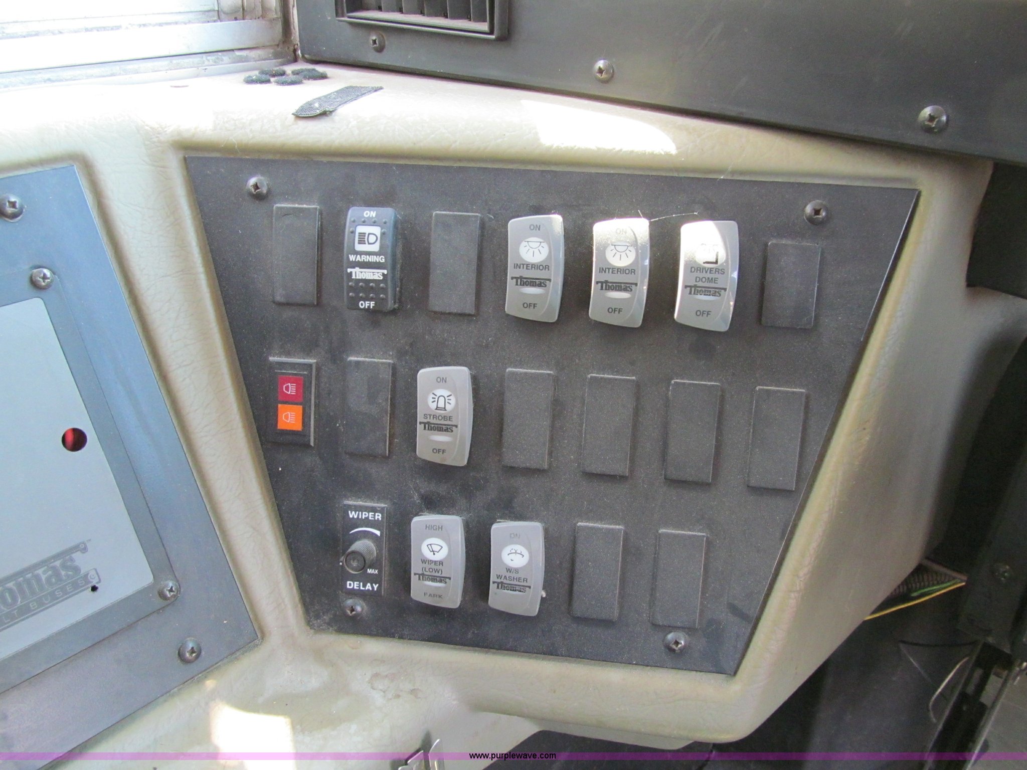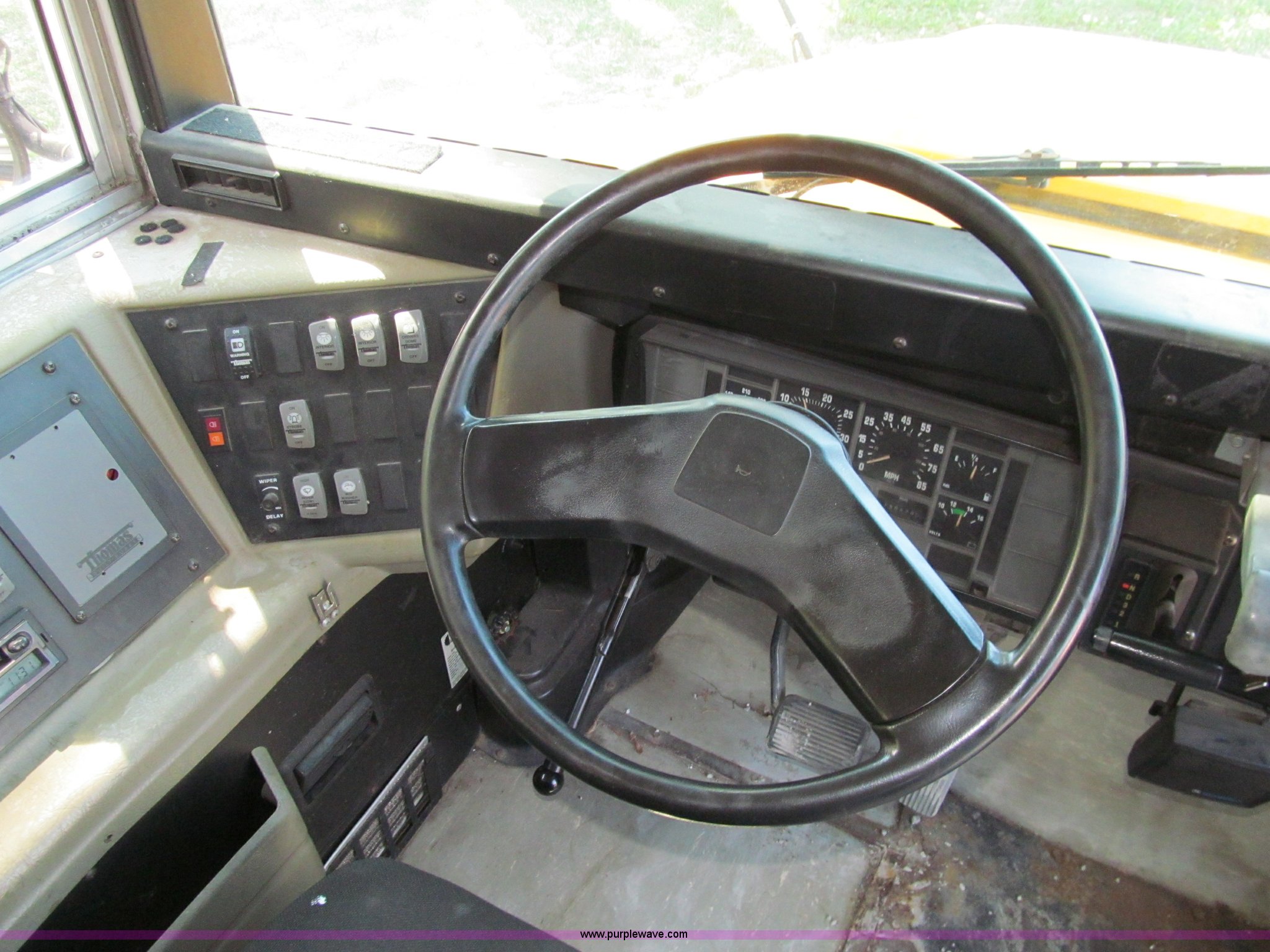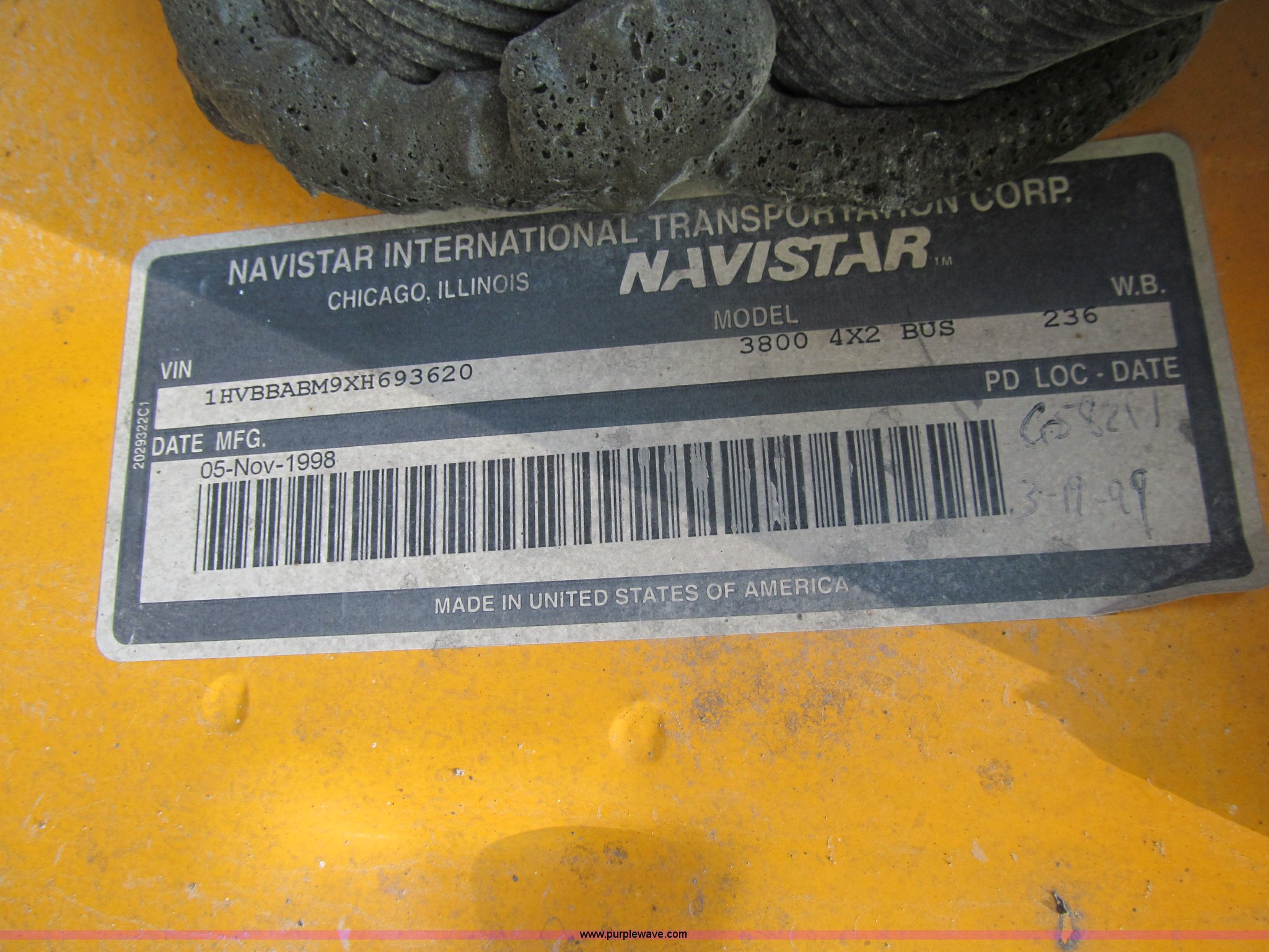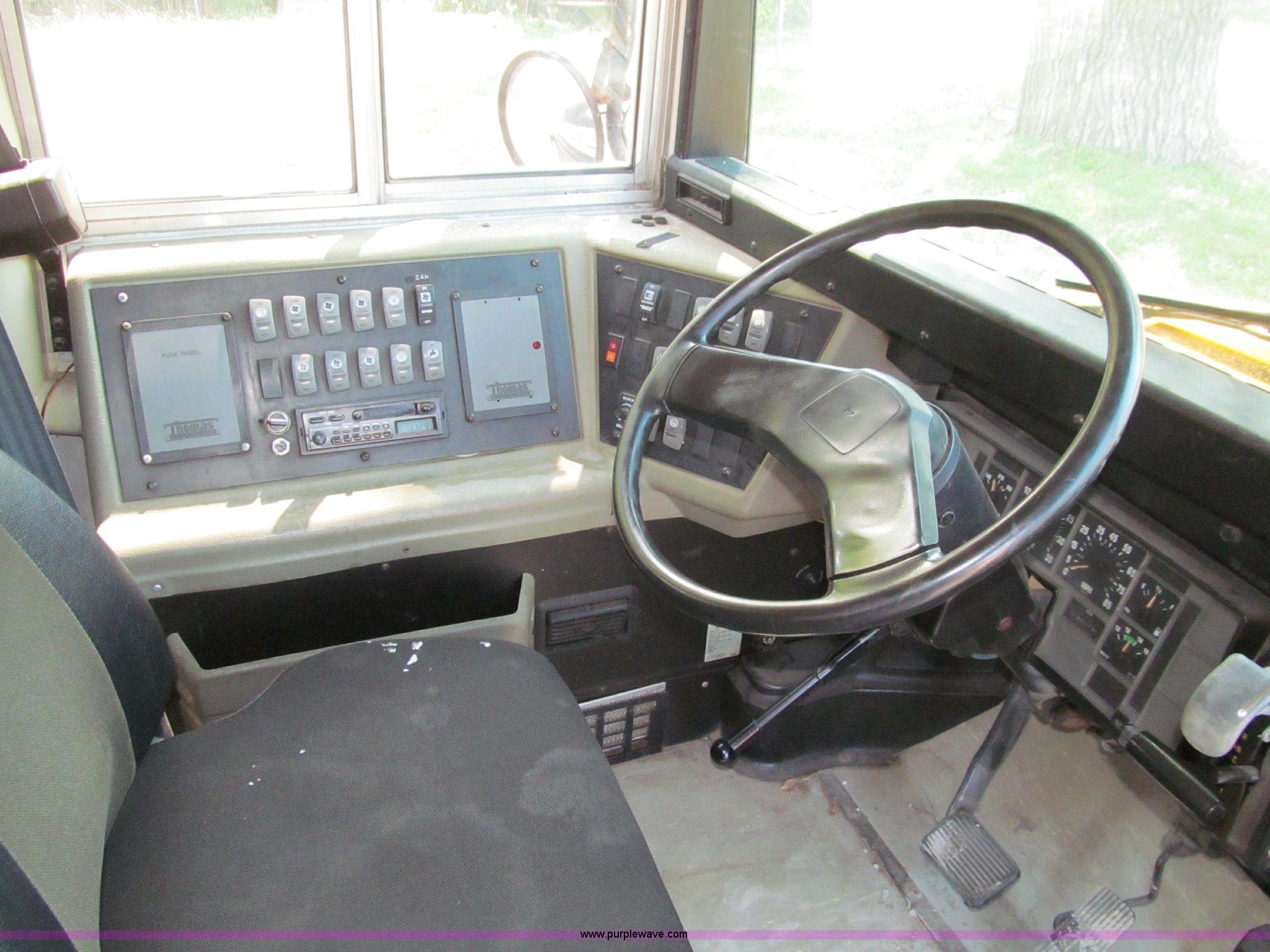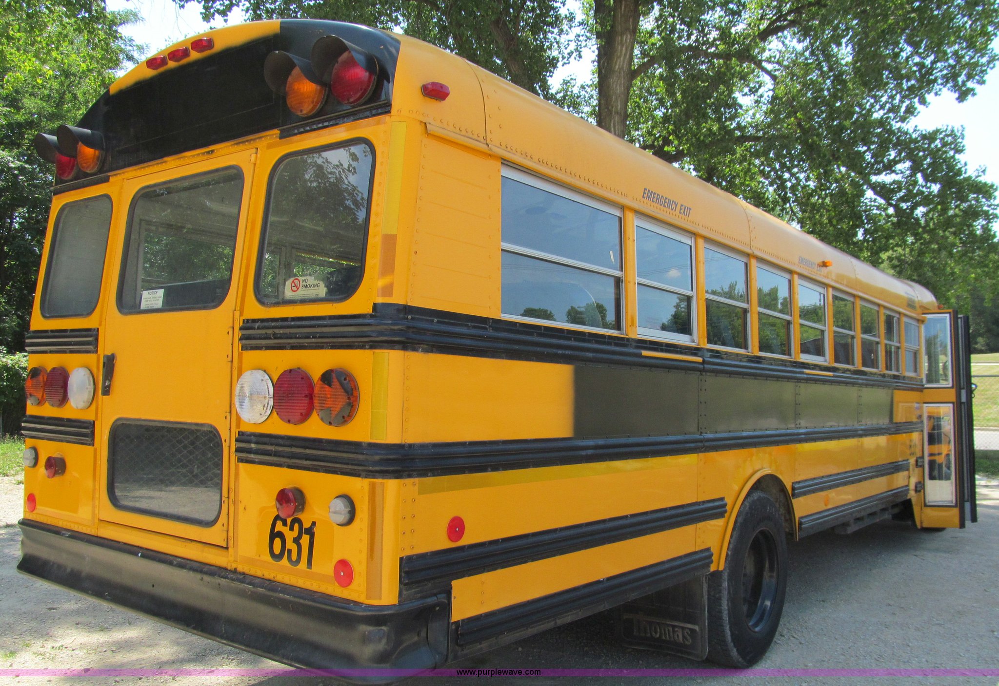 Purple Wave is selling a used Bus in Iowa. This item is a 2000 International Navistar 3800 school bus with the following: 130,478 miles on odometer, 10,519 hours on meter, 54 passenger, International T444E 7.3L V8 diesel engine, Automatic transmission, Heat, Tilt, Cruise, AM/FM/Cassette, Cush-N-Aire drivers seat, Manual windows, Vinyl interior, (7) emergency egress, Thomas body, 234" wheelbase, 10R22.5 tires, GVWR 25,500 lbs, FAWR 8,000 lbs, RAWR 17,500 lbs, Unit# 631