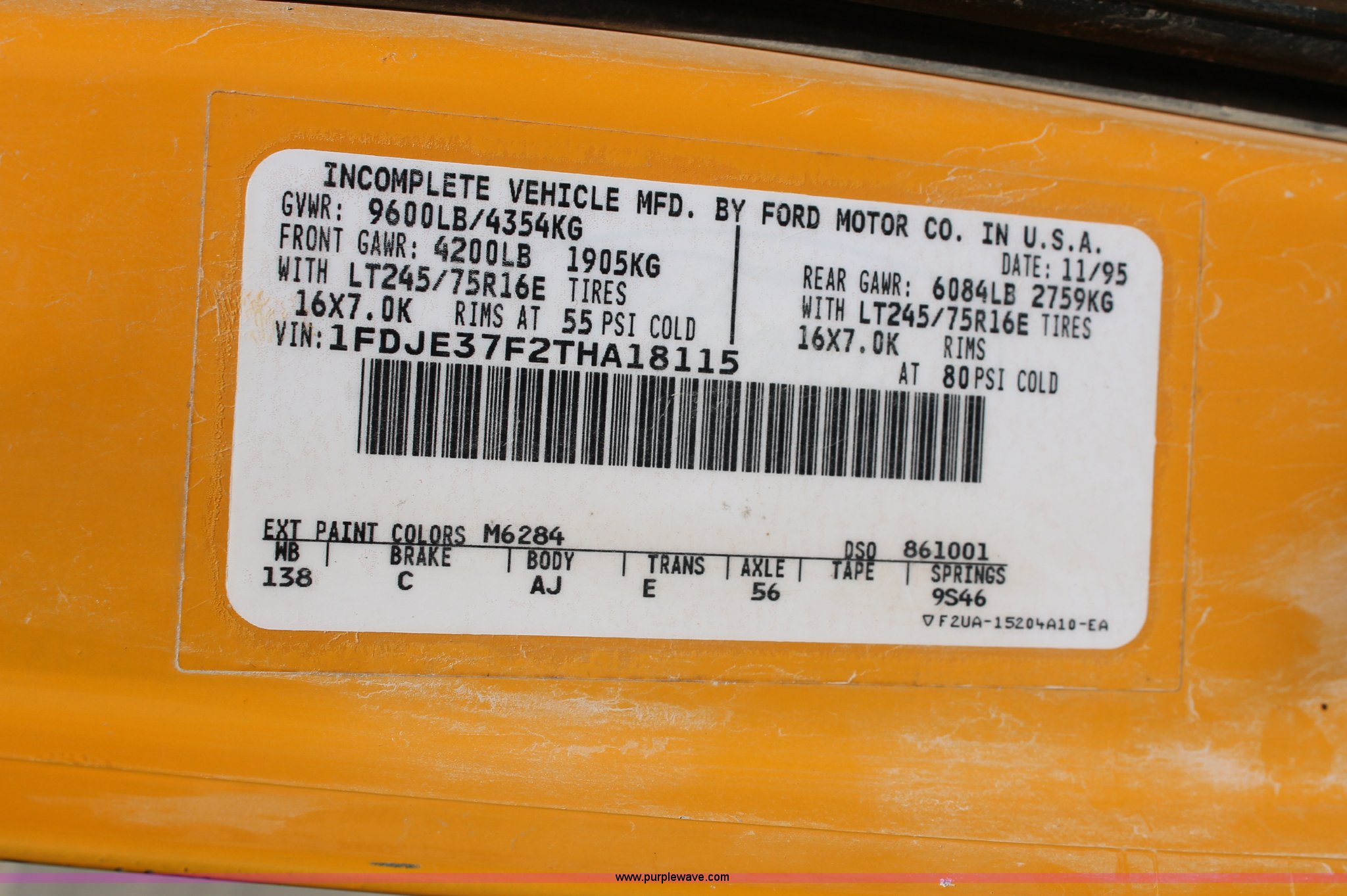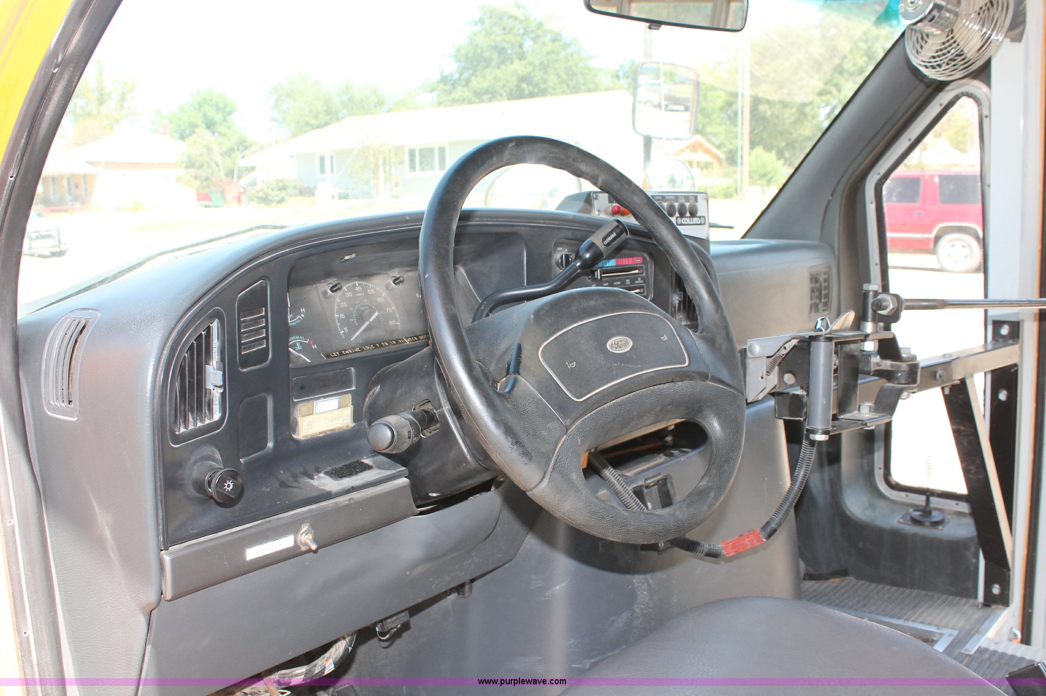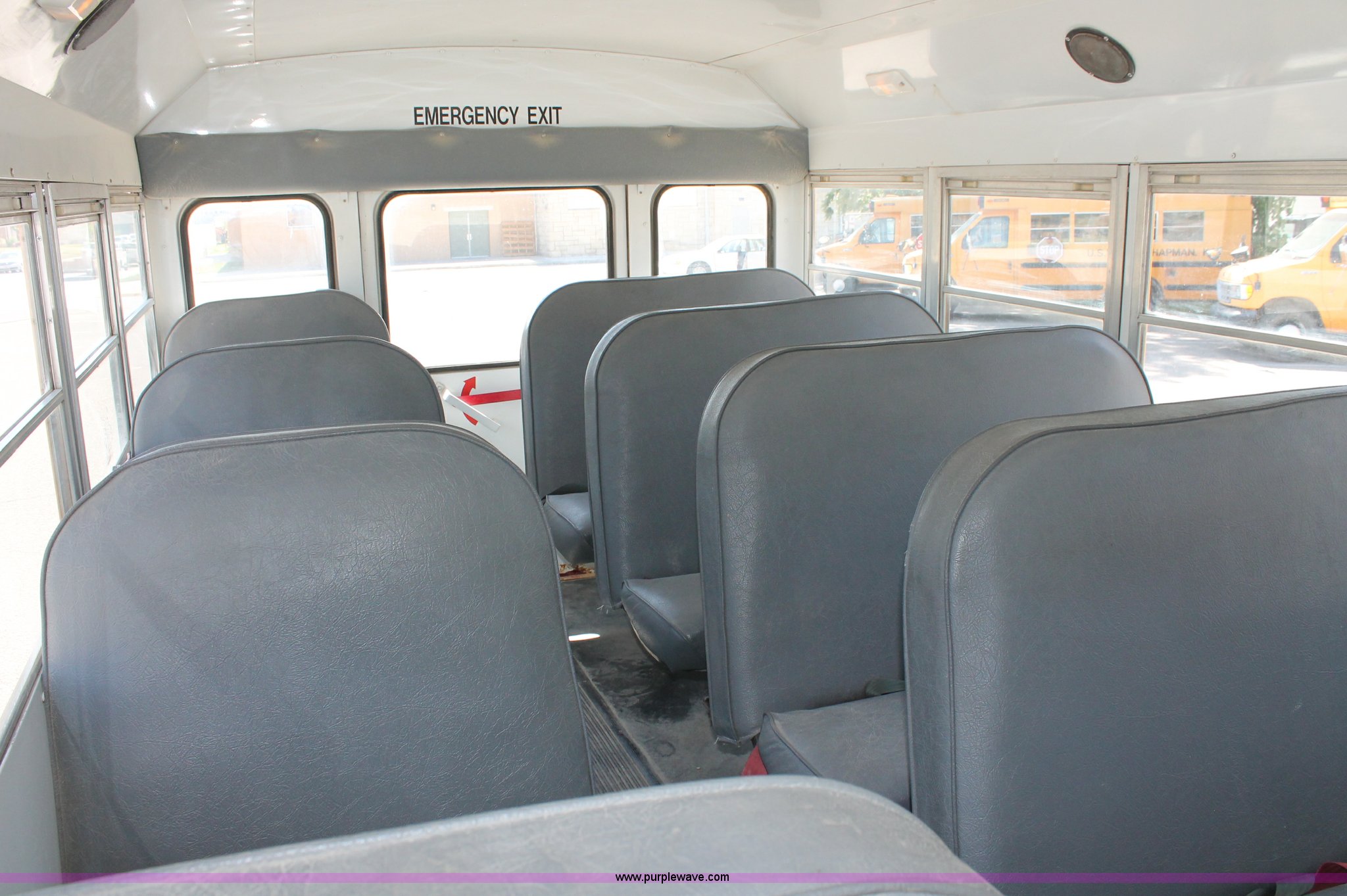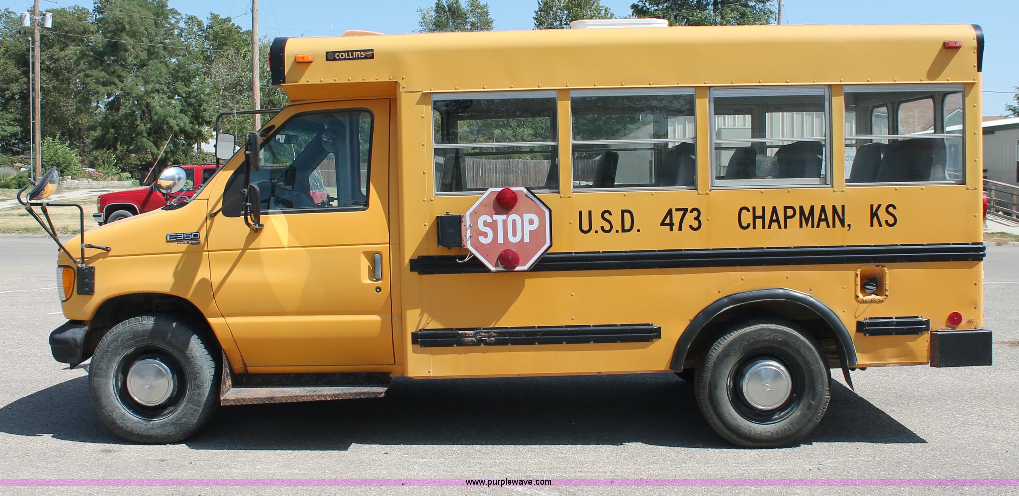 Purple Wave is selling a used Bus in Kansas. This item is a 1996 Ford E350 Econoline school bus with the following: 160,750 miles on odometer, 18 passenger, 7.3L V8 turbo diesel engine, Automatic transmission, Heat, AM/FM, Manual windows and locks, Mirror heater, Vinyl interior, Collins Bus Corporation instrumentation, Rear, roof, and window emergency egress, Seat belt equipped, Block heater, 245/75R16 tires