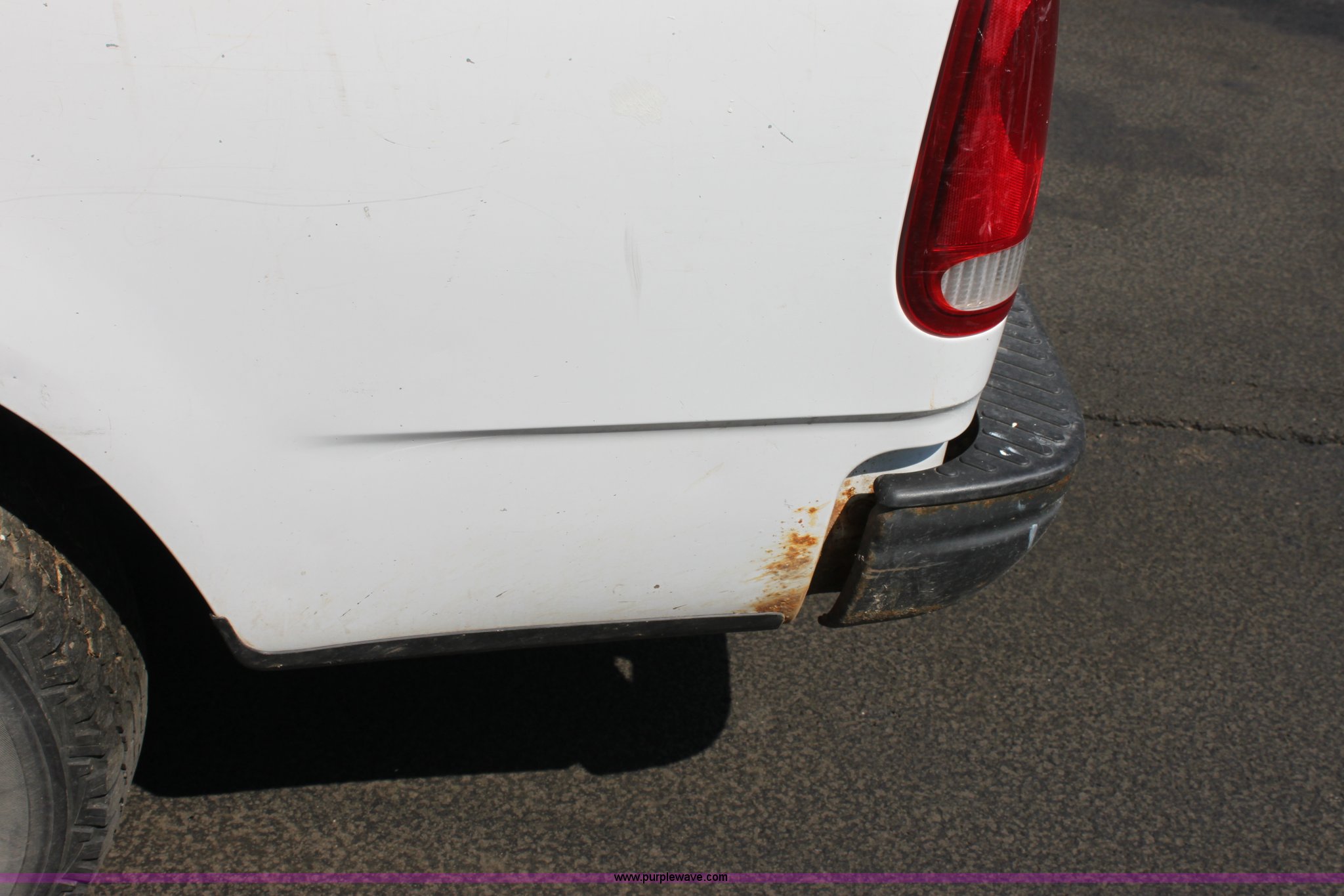 Purple Wave is selling a used Passenger Vehicle in Kansas. This item is a 1998 Ford F150 pickup truck with the following: 84,811 miles on odometer, 4.6L V8 EFI gas engine, Automatic transmission, AC and heat, AM/FM, Manual windows and locks, Cloth seats, Vinyl floor, Headache rack, P235/70R16 tires, Burns three quarts of oil per tank of fuel, Front bumper damage, Damage to tailgate, Body damage