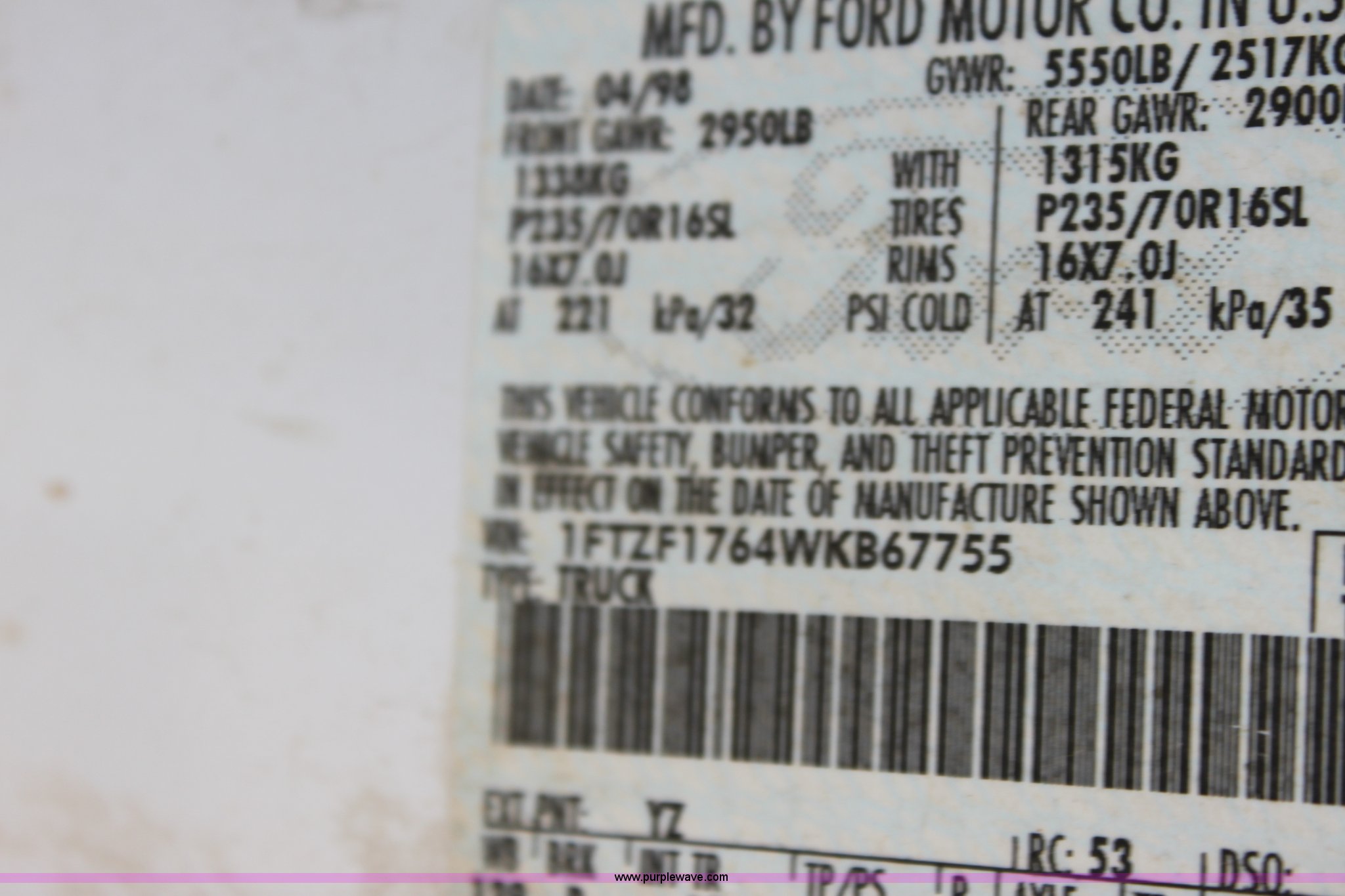 Take a look at this used 1998 Ford F150 pickup truck being sold on August 7th, 2012 in the SOLD! Tuesday August 7 Government Auction made by Ford. Take a look at all of the item information below or take a look at similar auctions for Passenger Vehicles.
