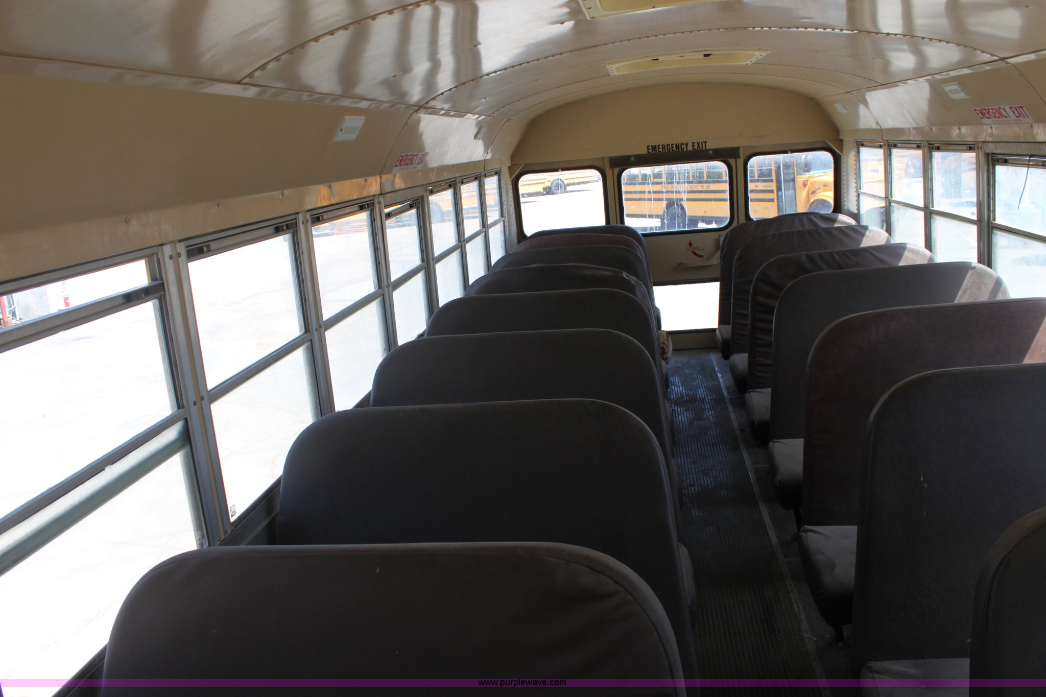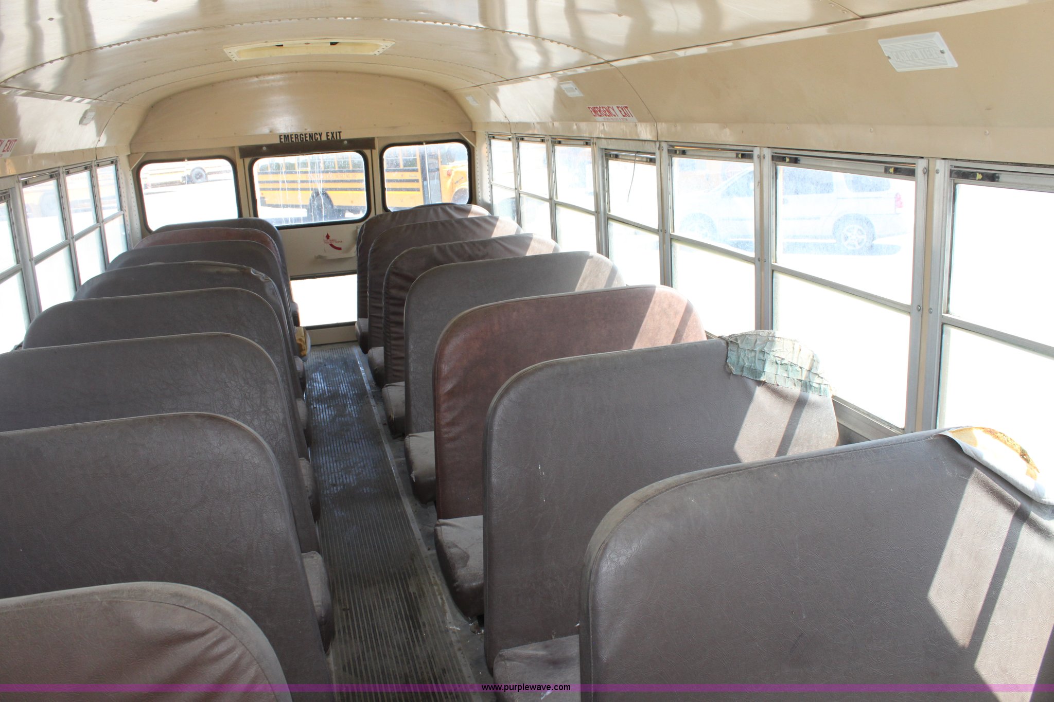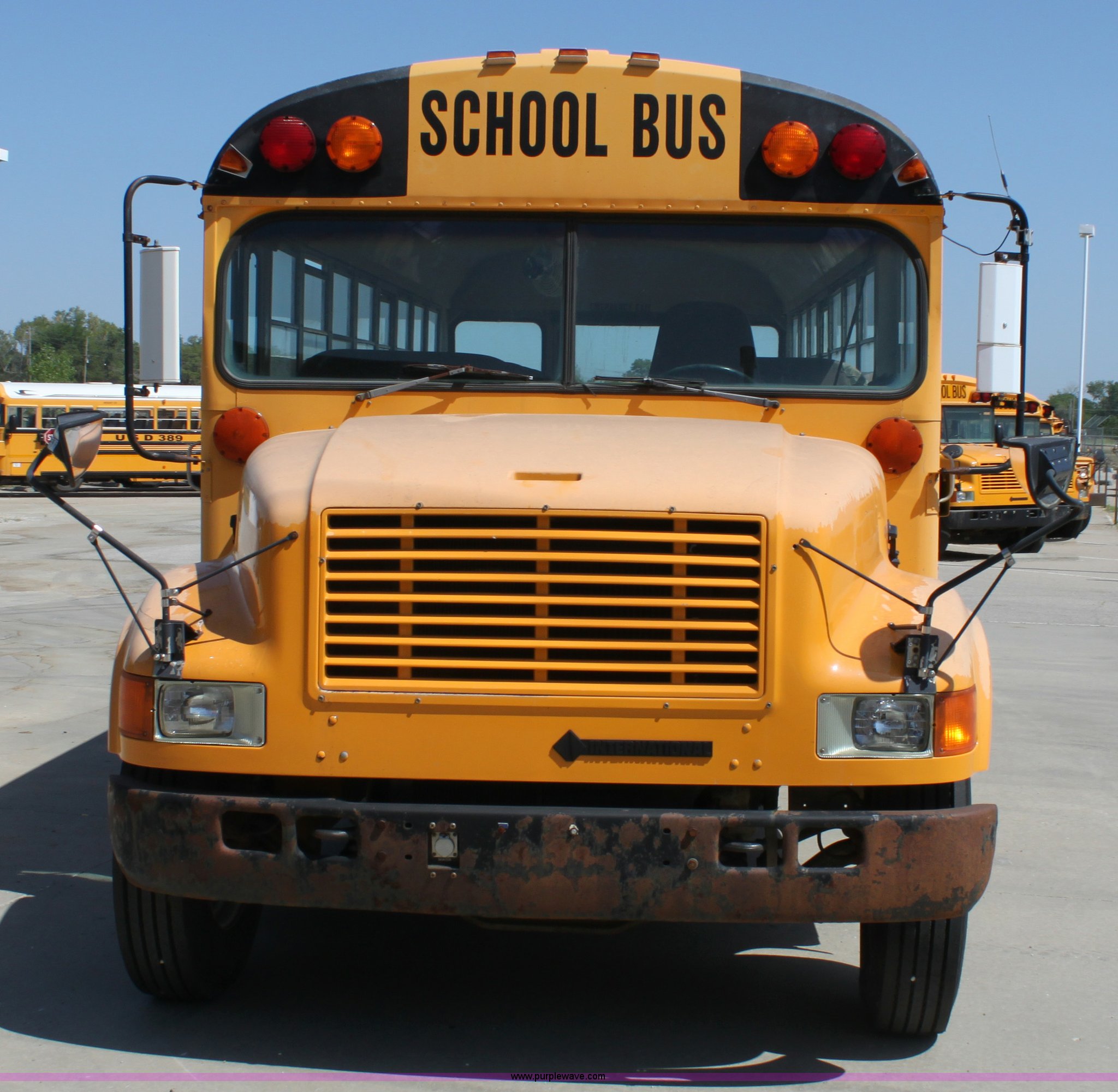 Purple Wave is selling a used Bus in Kansas. This item is a 1993 International 3800 school bus with the following: 161,363 miles on odometer, 47 passenger, International 5.9L L6 diesel engine, 180 HP, Five speed manual transmission, Front and rear heat, (2) roof top emergency egress, (2) window emergency egress, Rear emergency egress, Front tow hooks, Block heater, 193" wheelbase, 10R22.5 tires, GVWR 25,500 lbs, FAWR 8,000 lbs, RAWR 17,500 lbs