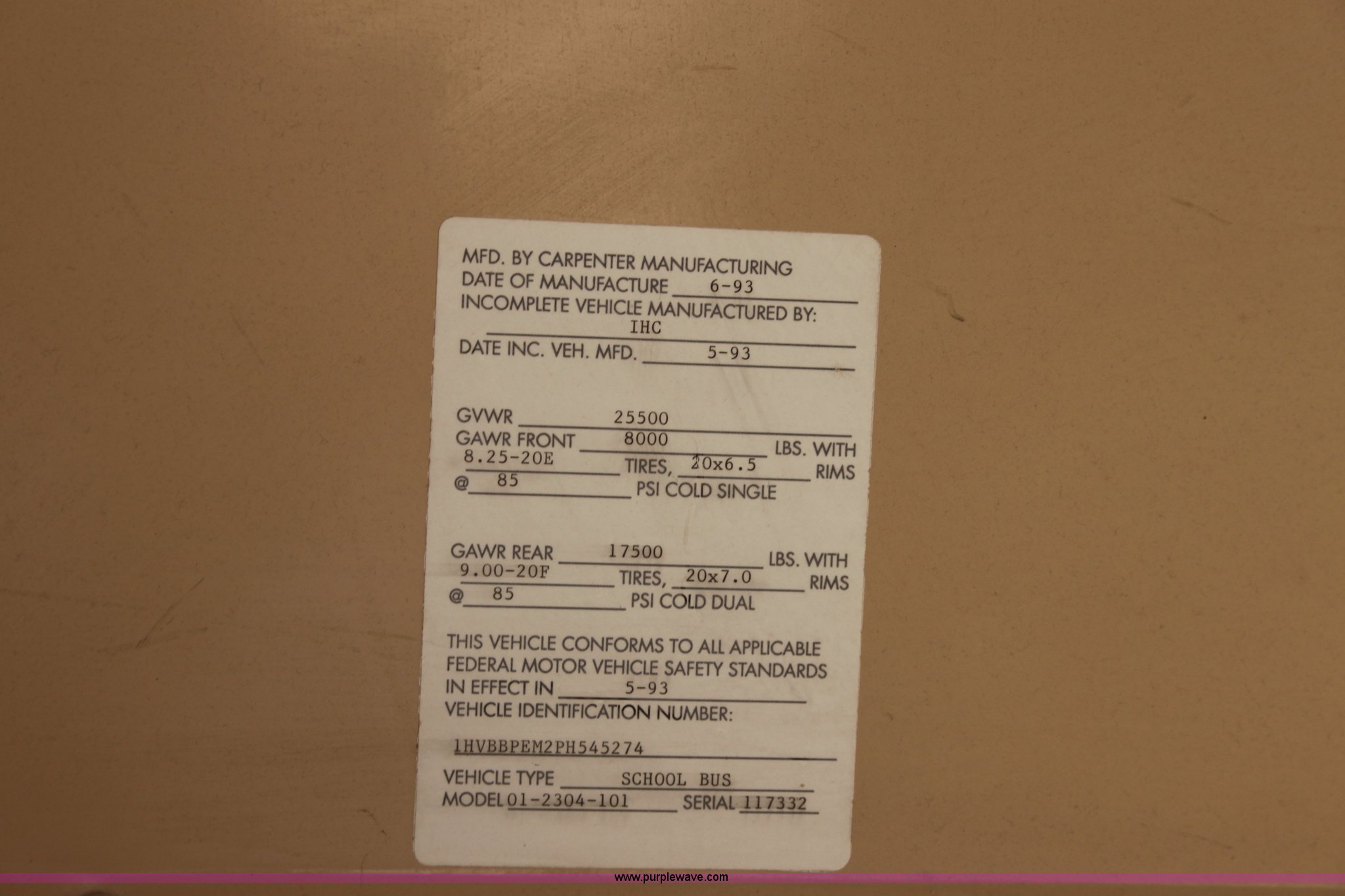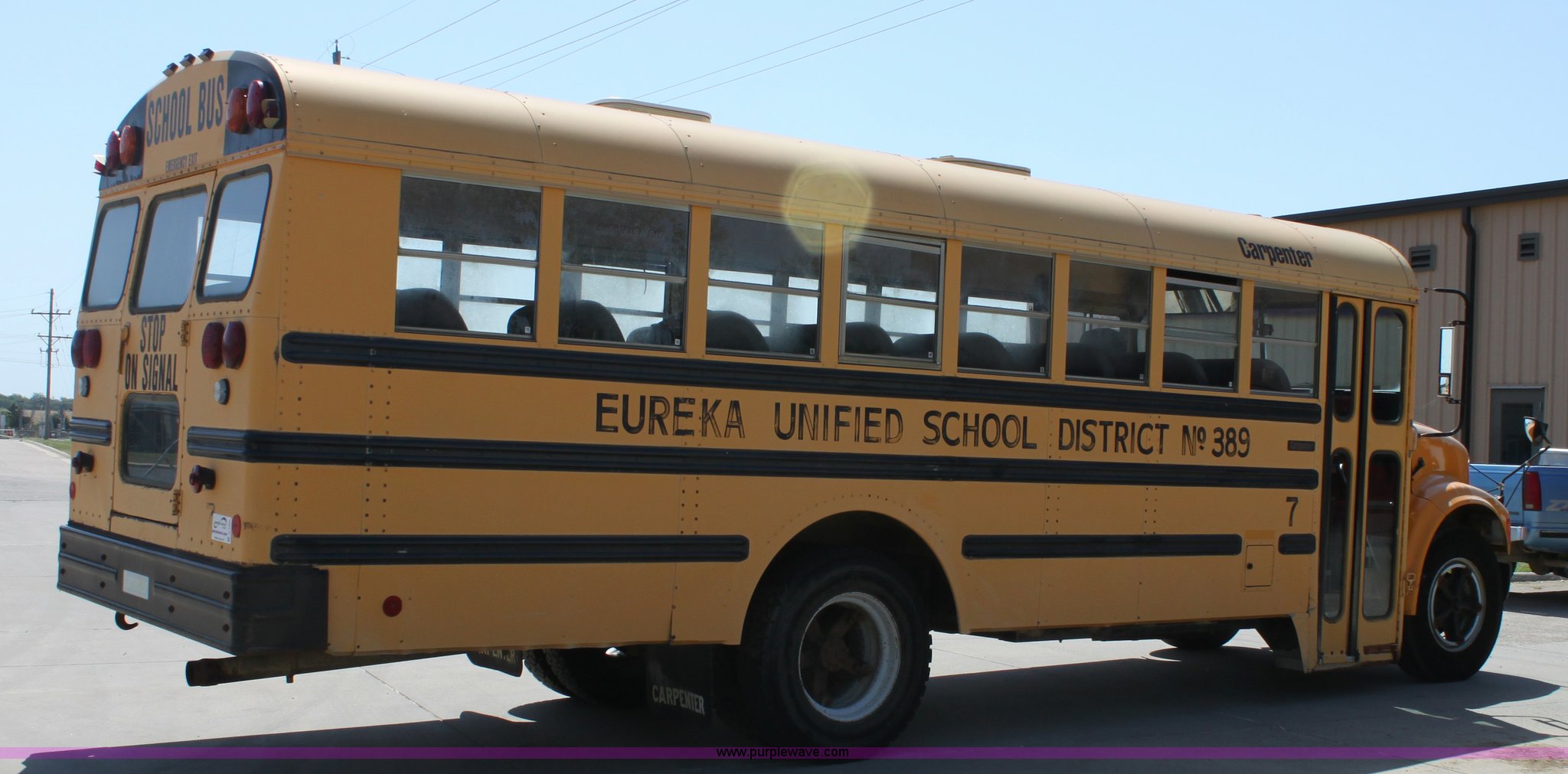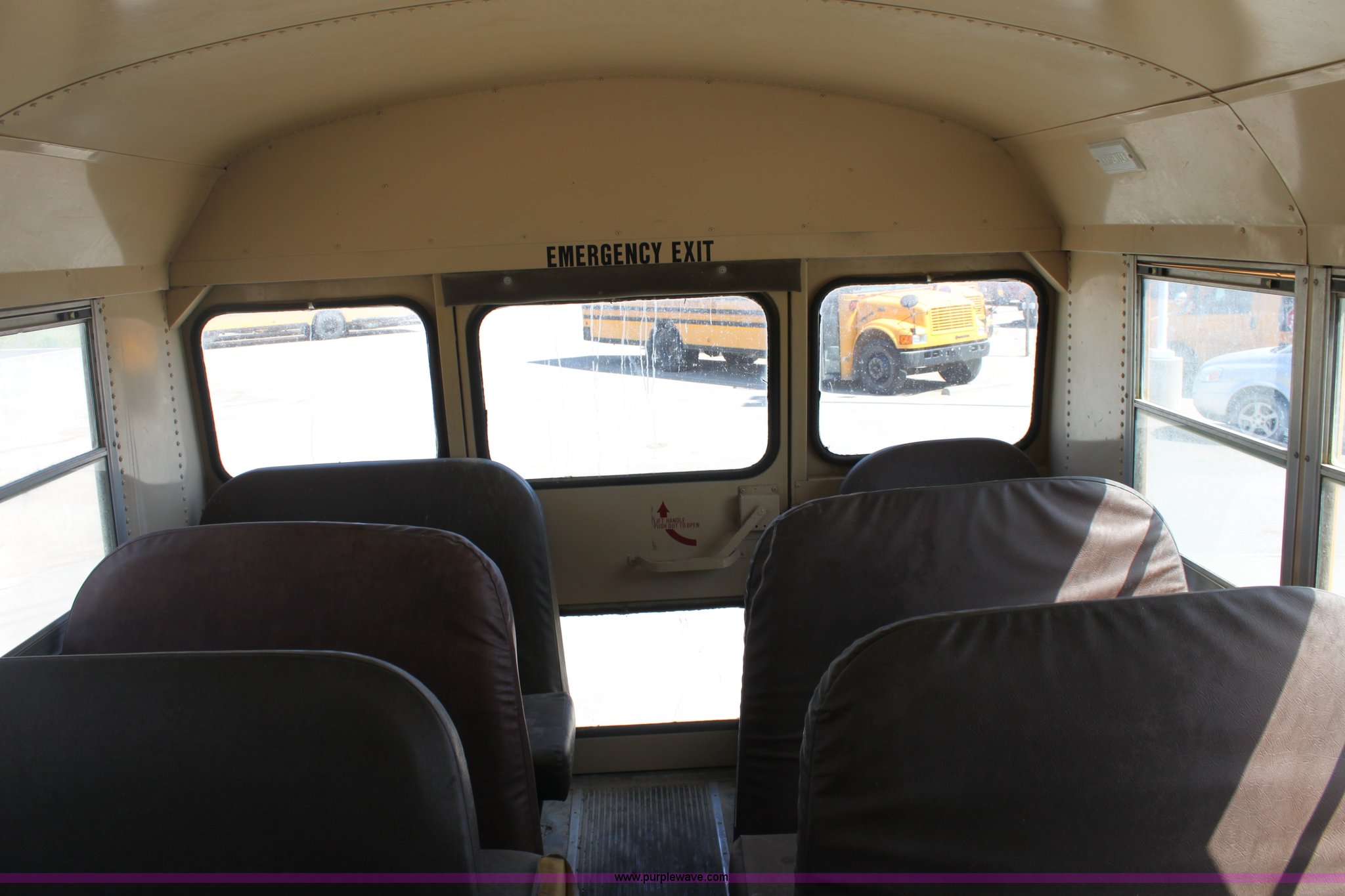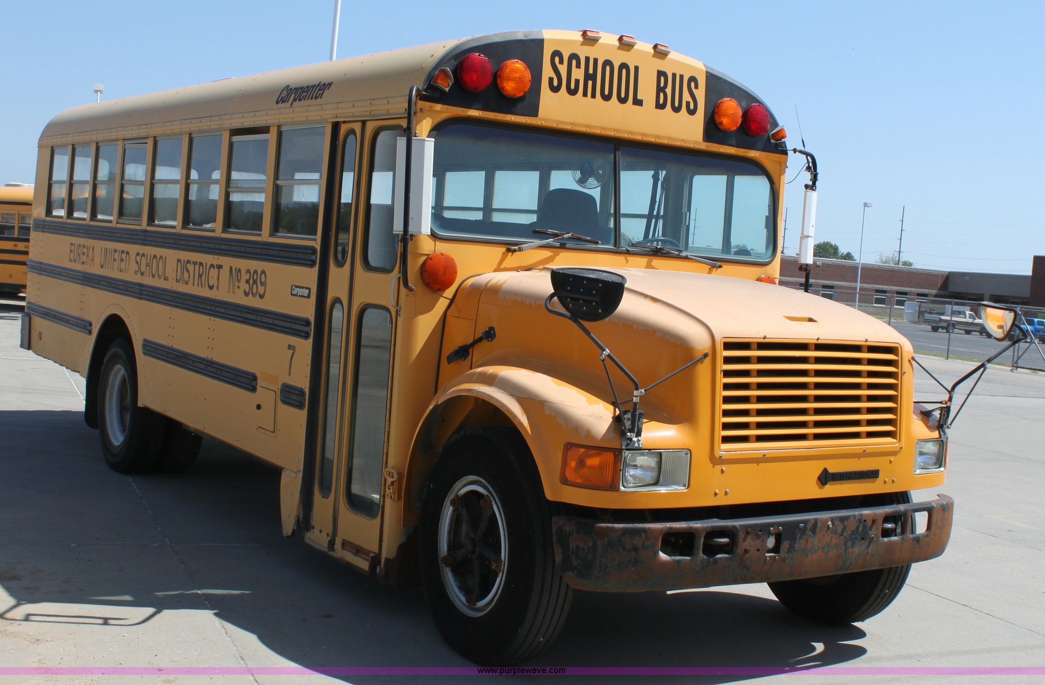 Purple Wave is selling a used Bus in Kansas. This item is a 1993 International 3800 school bus with the following: 161,363 miles on odometer, 47 passenger, International 5.9L L6 diesel engine, 180 HP, Five speed manual transmission, Front and rear heat, (2) roof top emergency egress, (2) window emergency egress, Rear emergency egress, Front tow hooks, Block heater, 193" wheelbase, 10R22.5 tires, GVWR 25,500 lbs, FAWR 8,000 lbs, RAWR 17,500 lbs