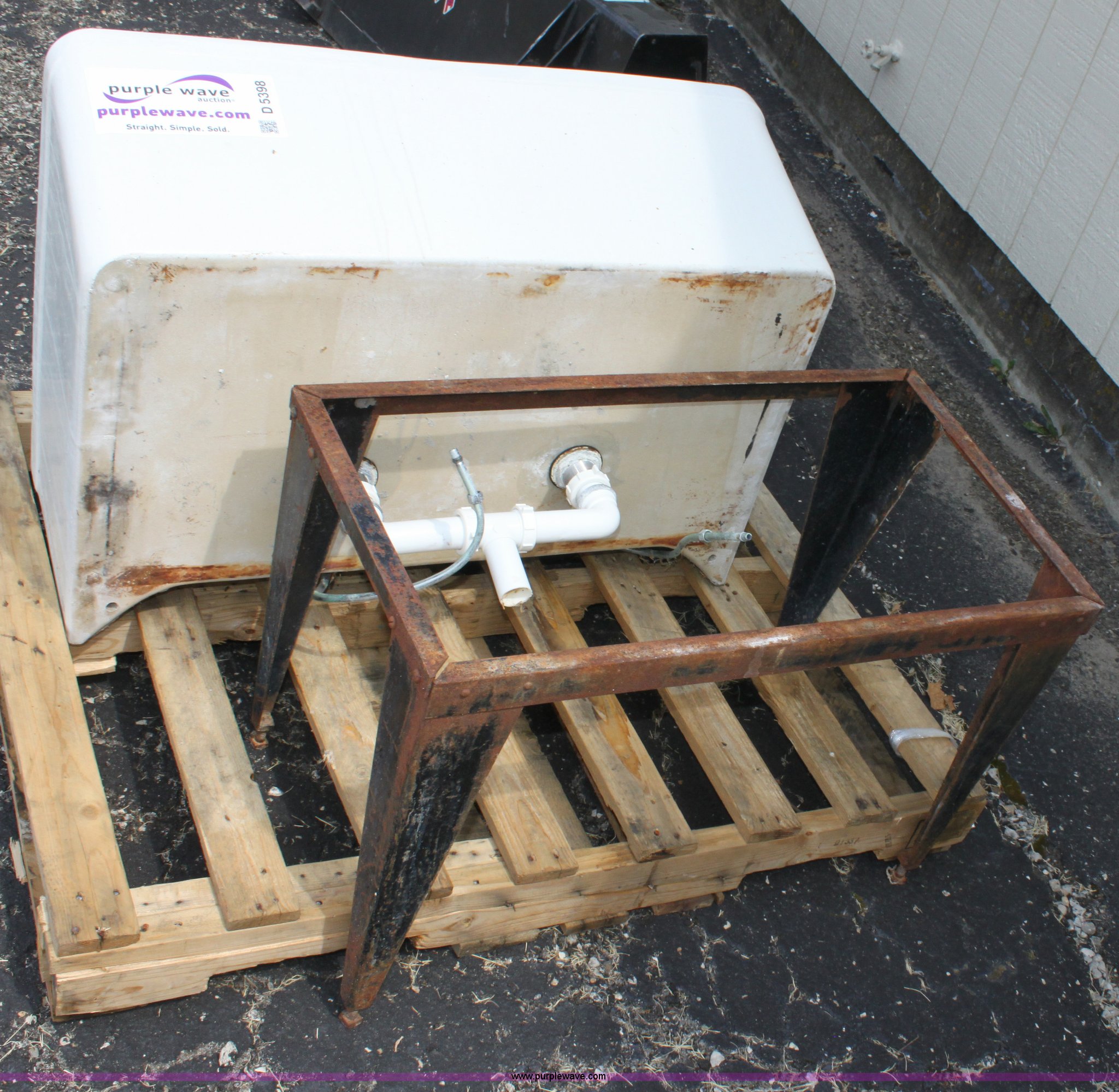 Purple Wave is selling a used Home Improvement in Kansas. This item is a Crane double bowl porcelain laundry sink with the following: 36" x 25" x 11.5", Metal stand