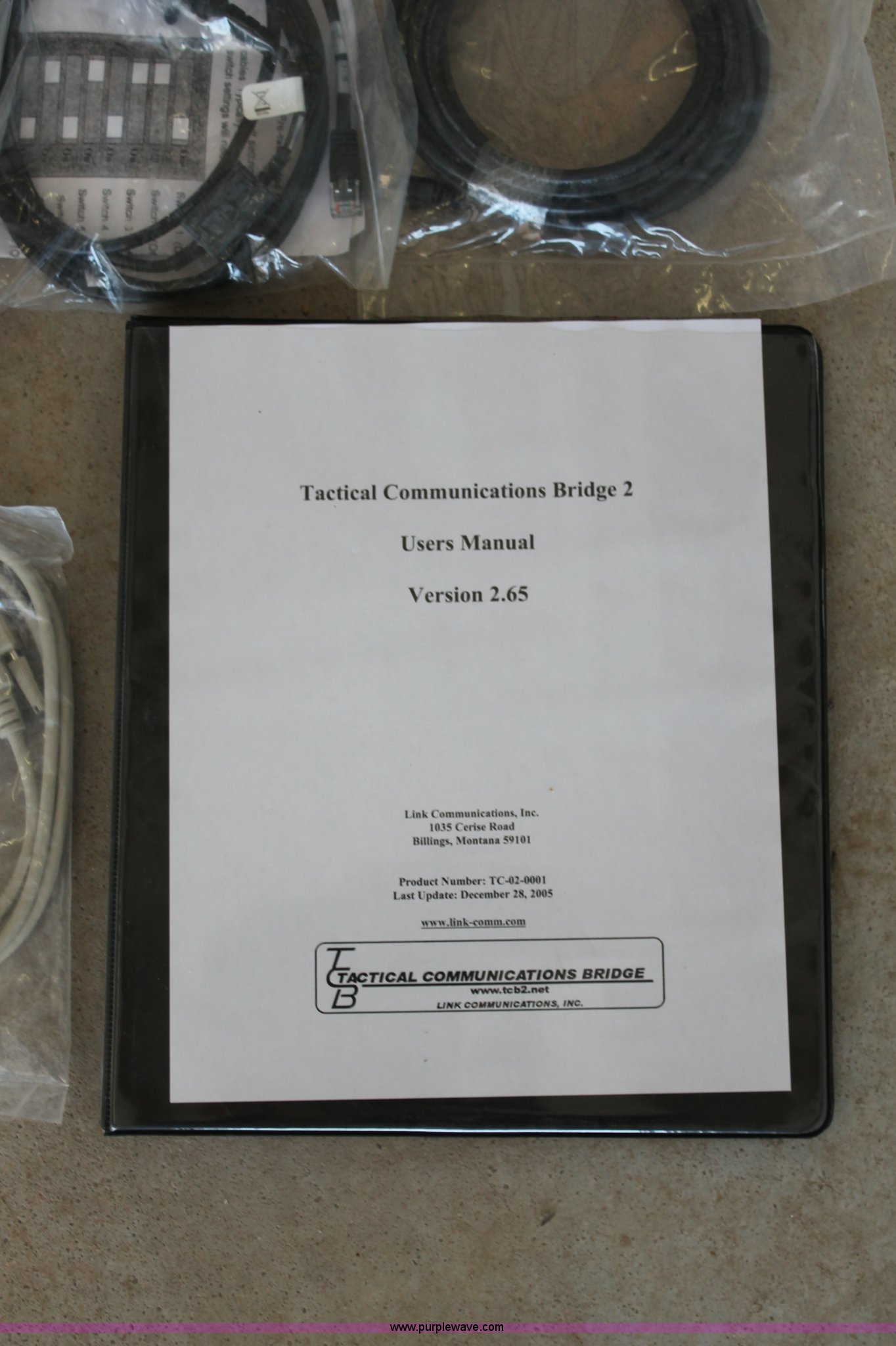 Purple Wave is selling a used Electronics in Kansas. This item is a Tactical Communication Bridge 2 with the following: New, Assorted cables, Operation manual